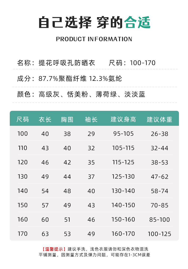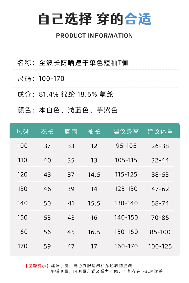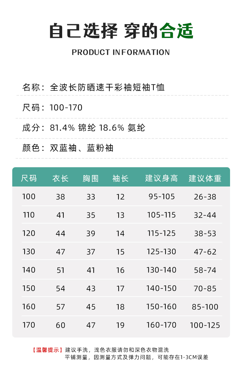 【夏款特价清仓】龙之涵 全波长防晒短袖T恤 速干七分裤 五分裤 防晒衣综合 婴幼儿A类标准