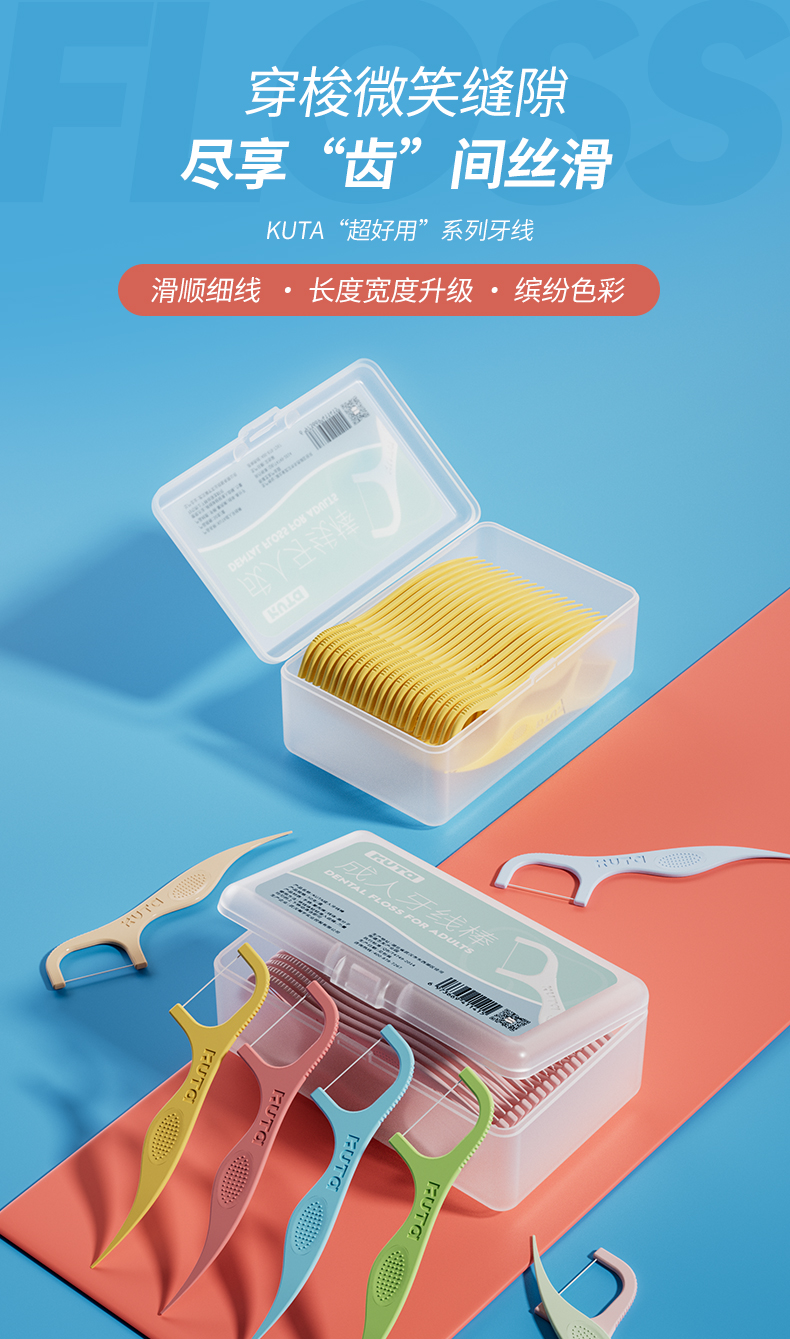 KUTA护理牙线棒KUTA家族卡通牙线护齿3岁以上可用成人牙线家庭囤货装