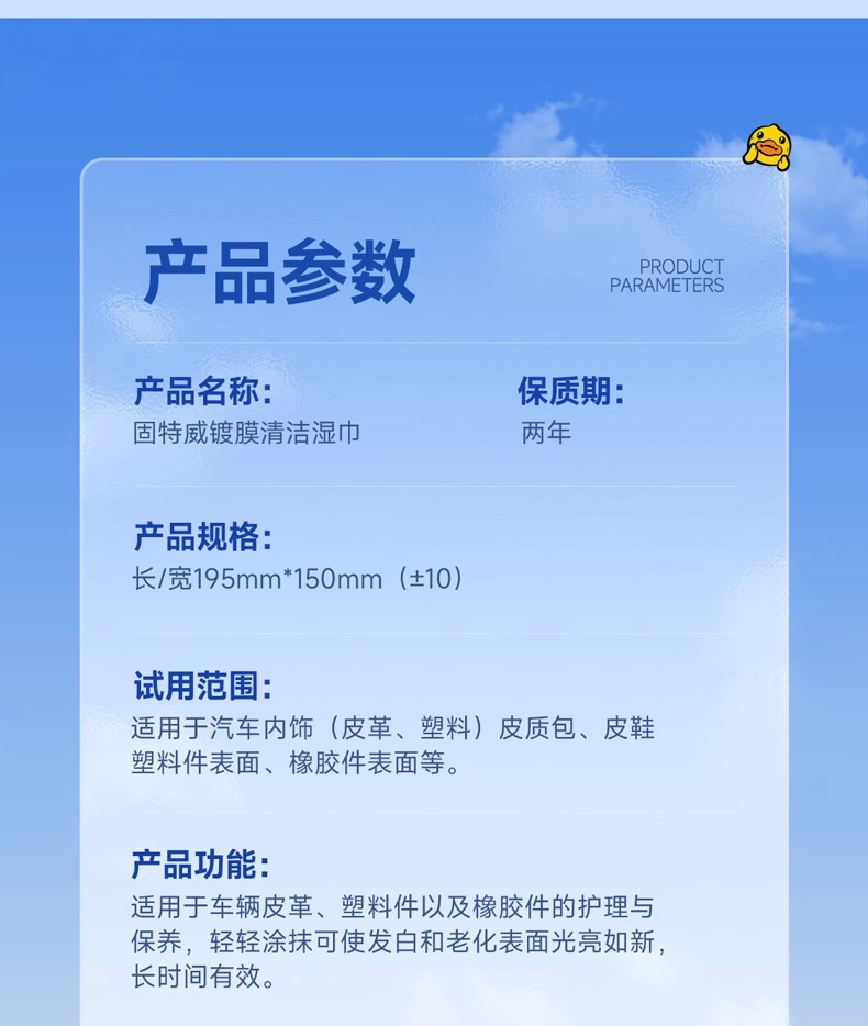 固特威汽车内饰清洁镀膜湿巾车用真皮革座椅清洁养护强力去污车蜡