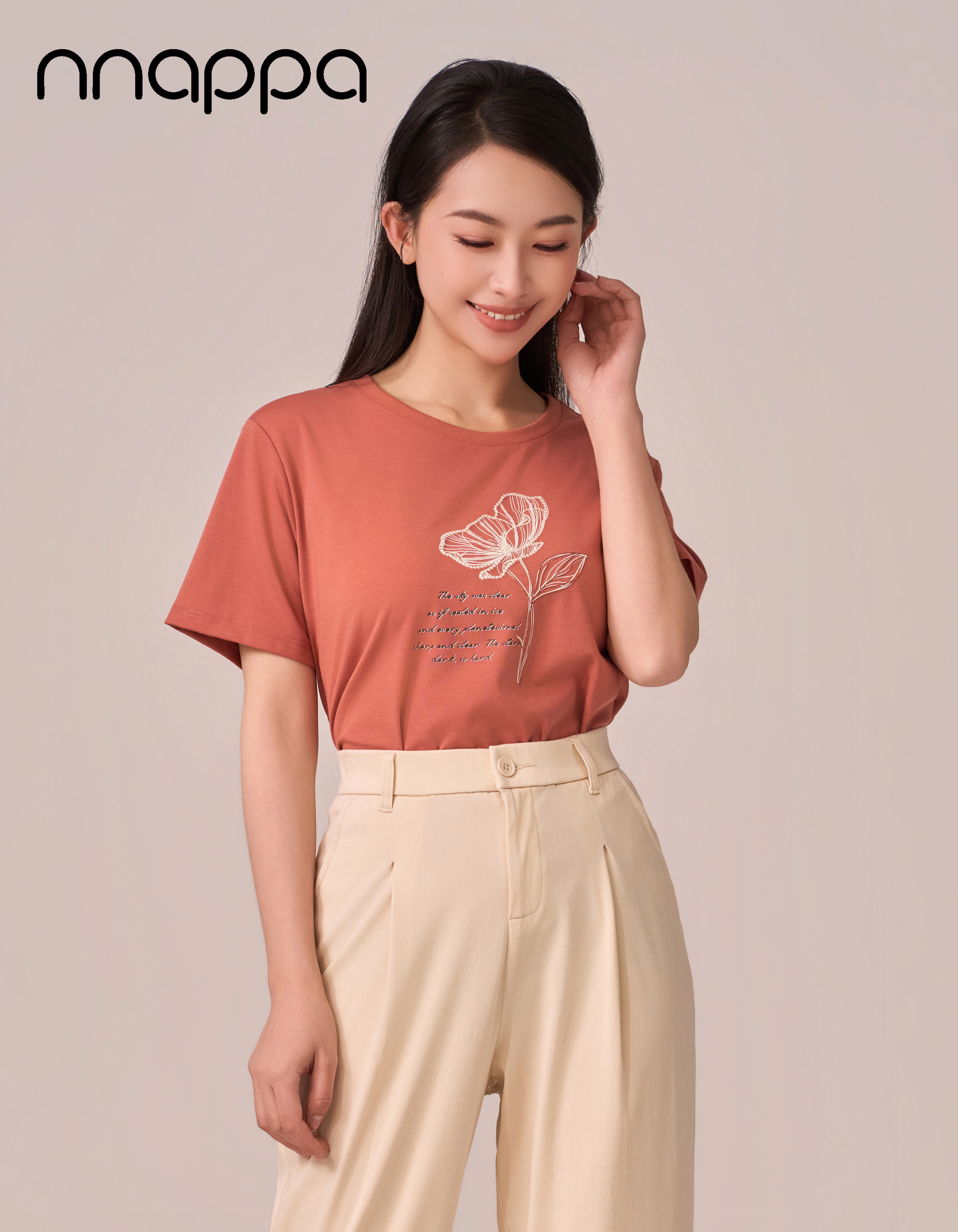 英文花朵圆领女上衣CA7348