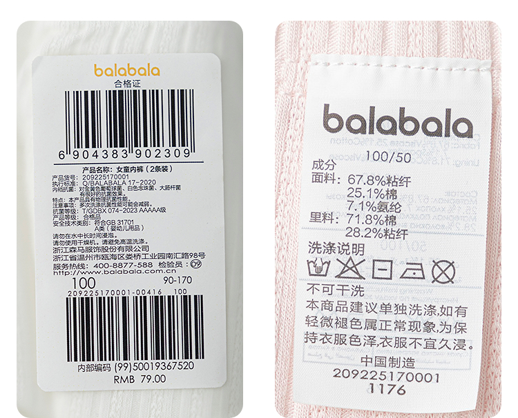 巴拉巴拉女童安全裤平角宝宝内裤防走光儿童短裤四角裤大童两条装