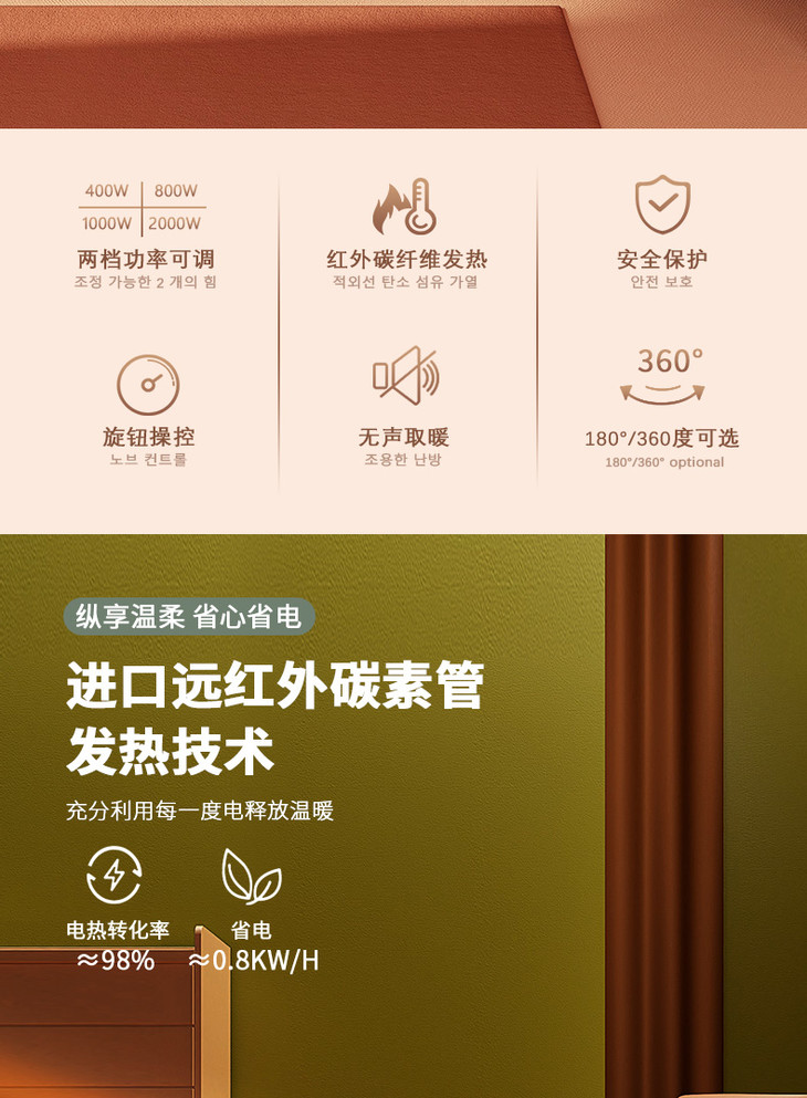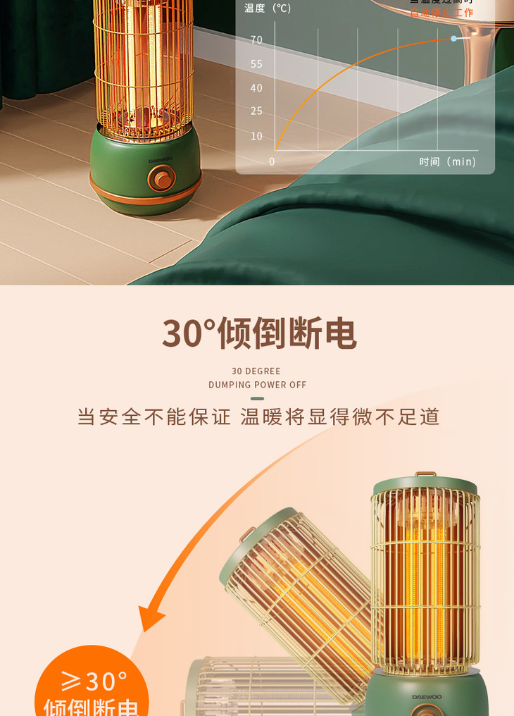 daewoo大宇取暖器家用节能碳纤维电暖器烤火炉速热远红外小太阳