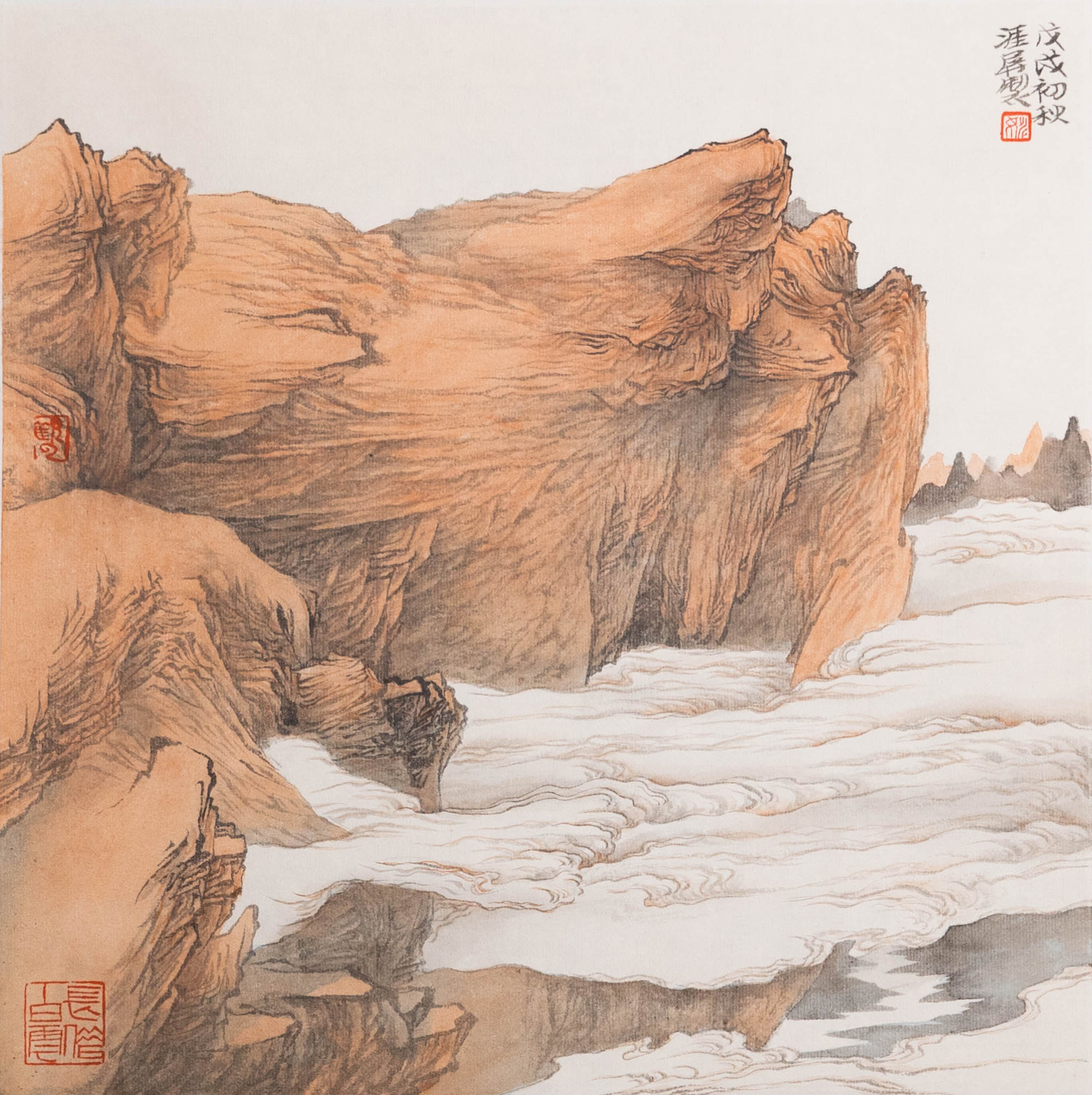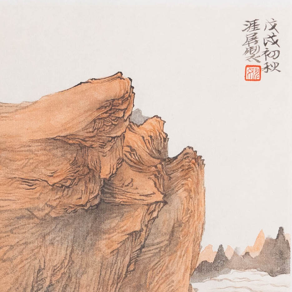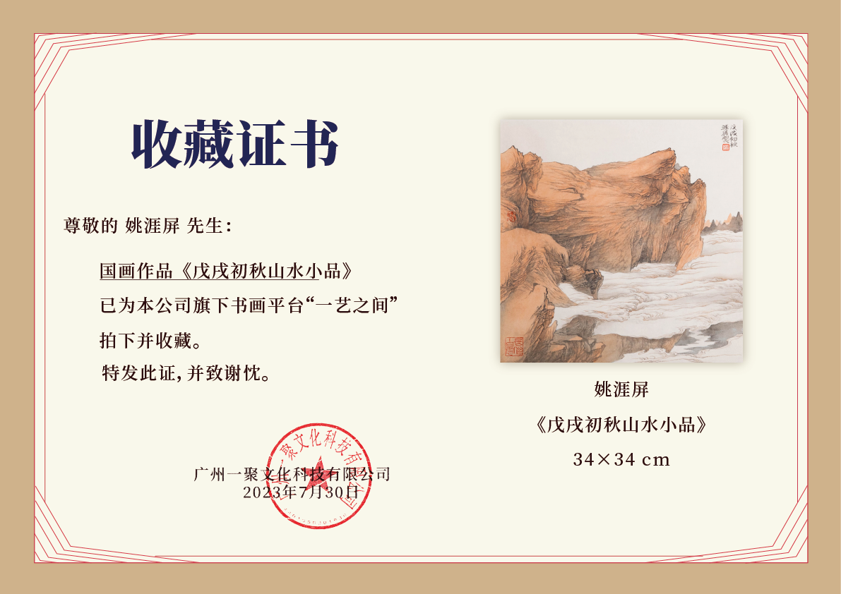 姚涯屏《戊戌初秋山水小品》国画34CM×34CM 约1平尺手绘纸本宣纸作品【原作编号GH0398】