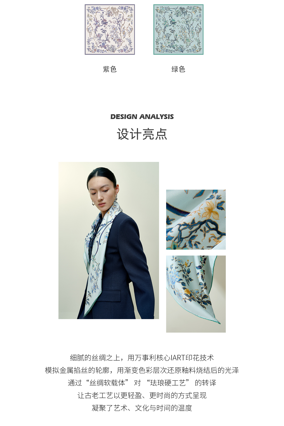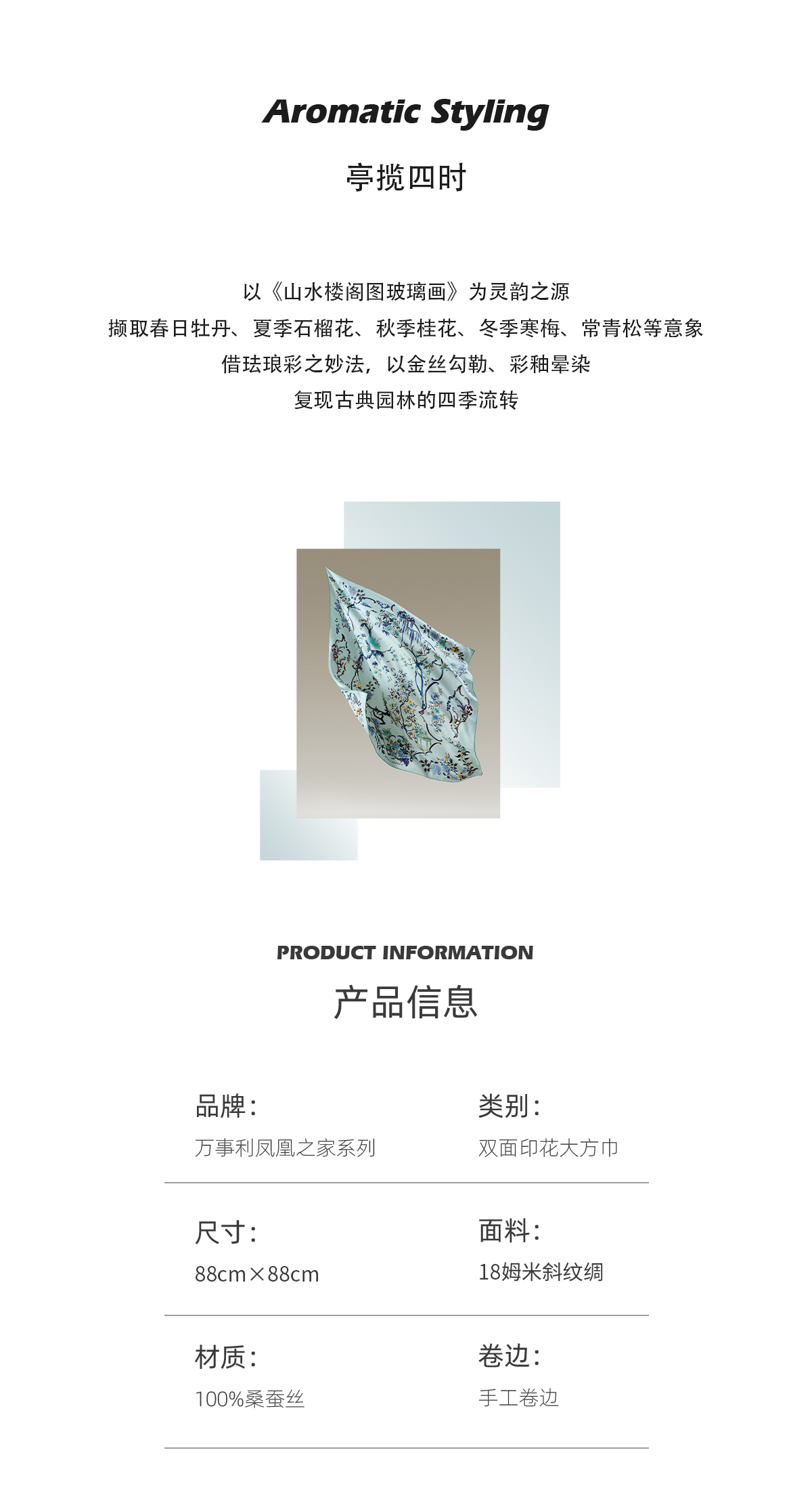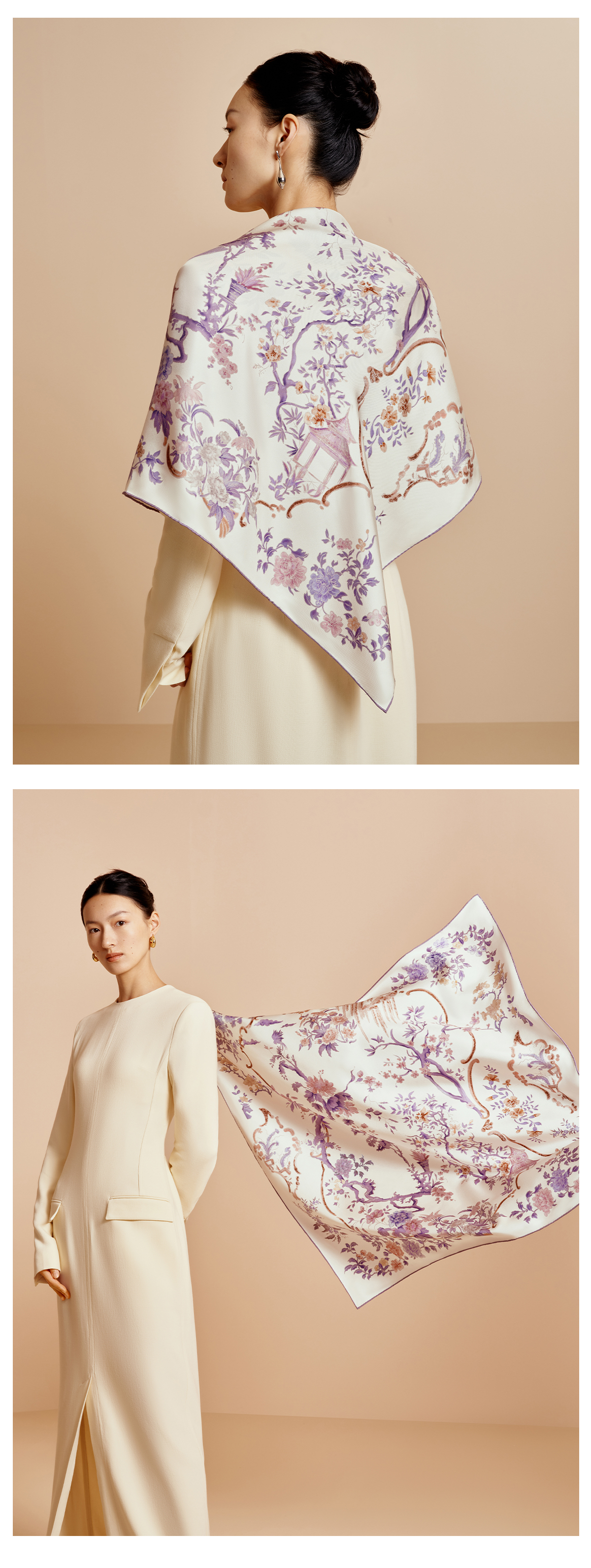 万事利“欢乐颂”51厘米双面印花真丝小方巾