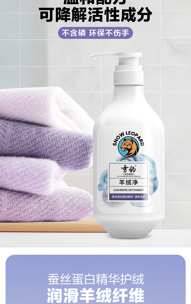 雪豹生态家清 羊绒净 羊毛羊绒衫专用洗涤液300g 清新花香X3010C