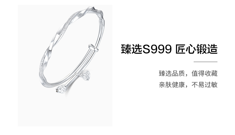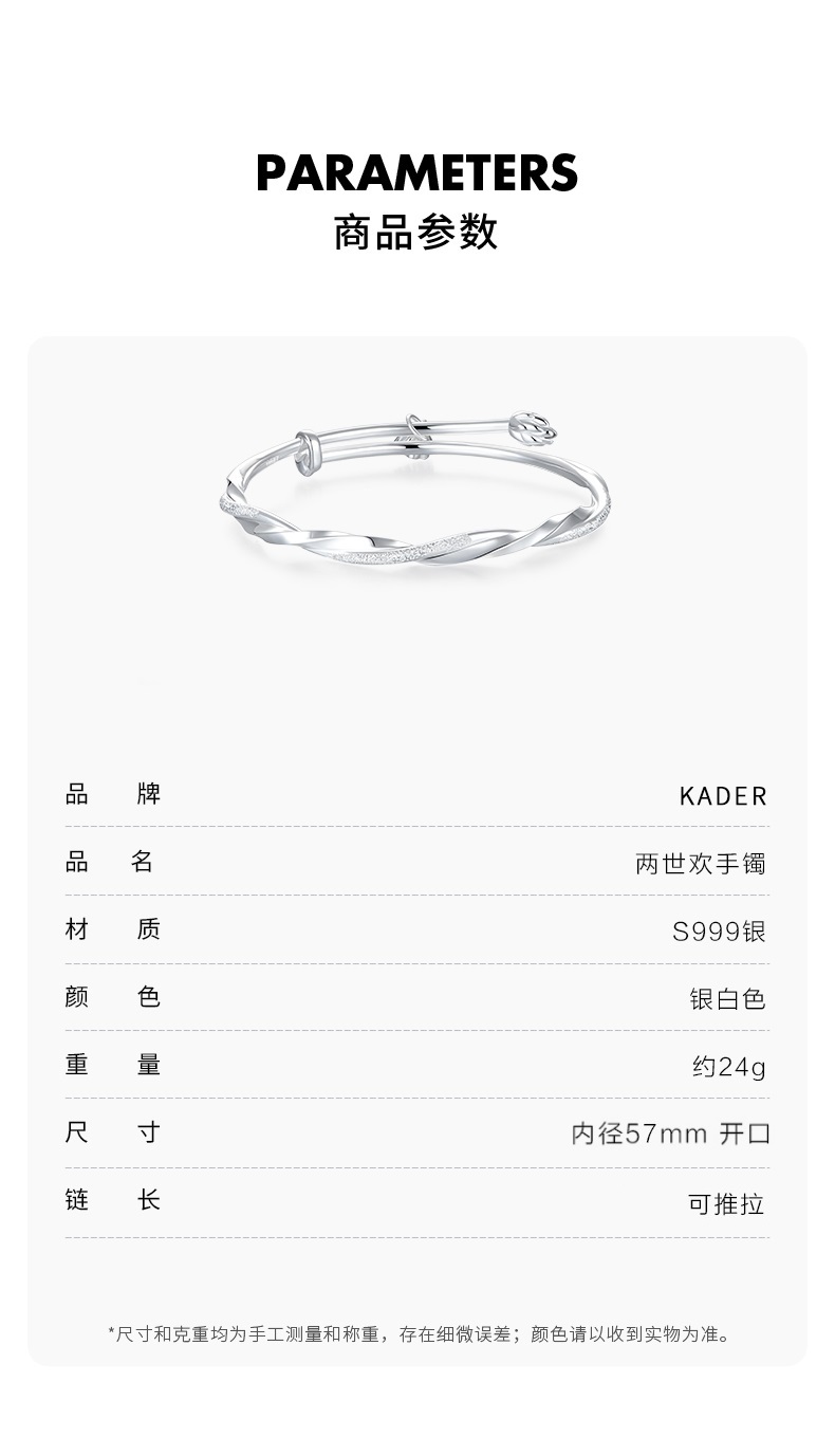 KADER卡蒂罗 莫比乌斯系列 两世欢 S999纯银 手镯 女款 清新莲蓬造型设计 开口可推拉首饰 中式浪漫好运配饰