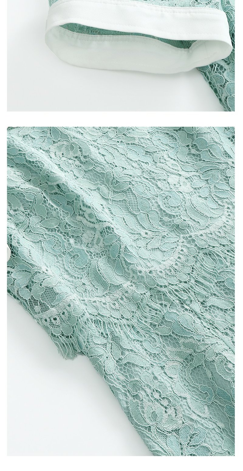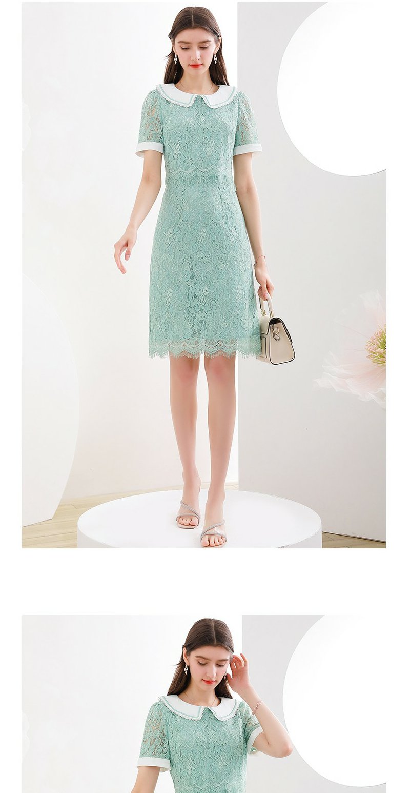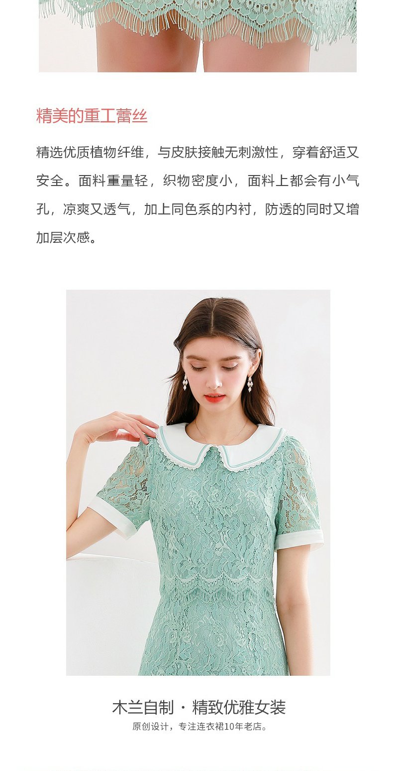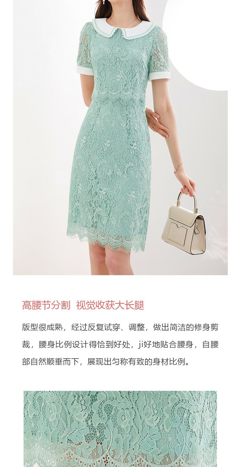 未风绿色蕾丝连衣裙女夏2024夏季新款娃娃领气质优雅减龄短袖裙子