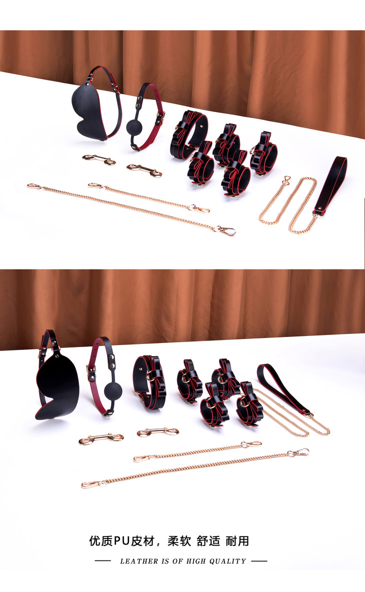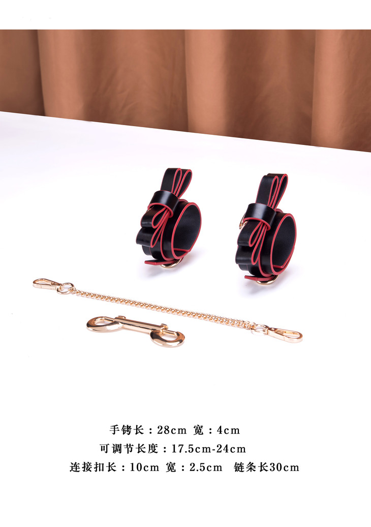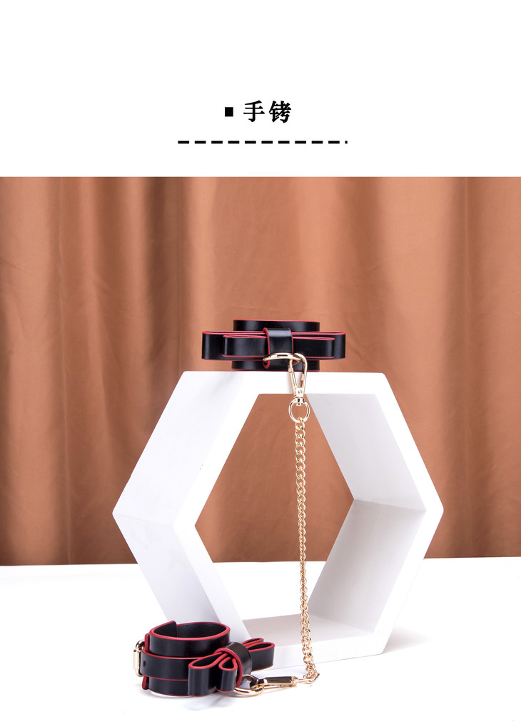 SM 情趣束缚 蝴蝶结套装 项圈+眼罩+口球+手铐+脚铐