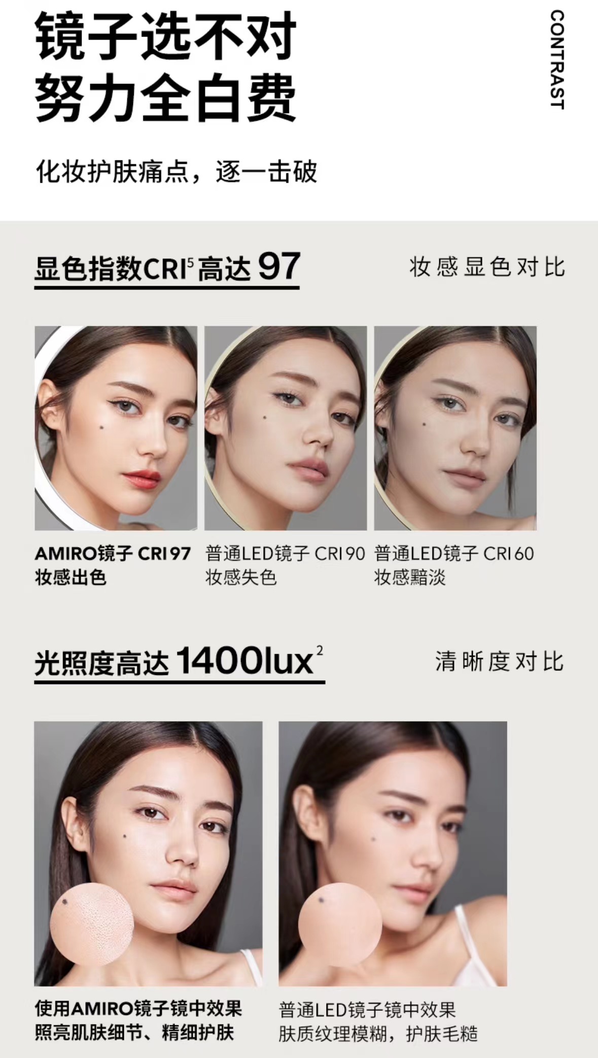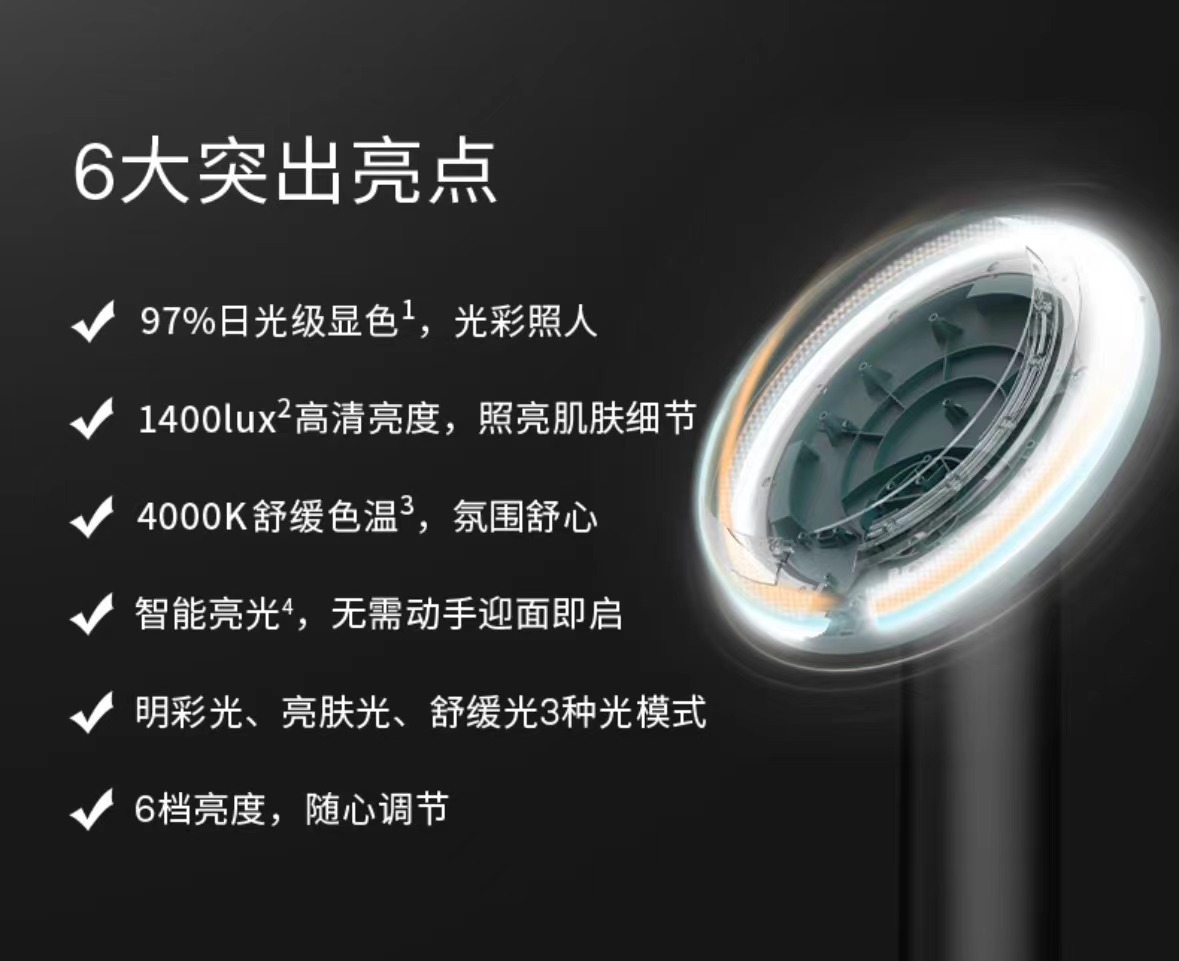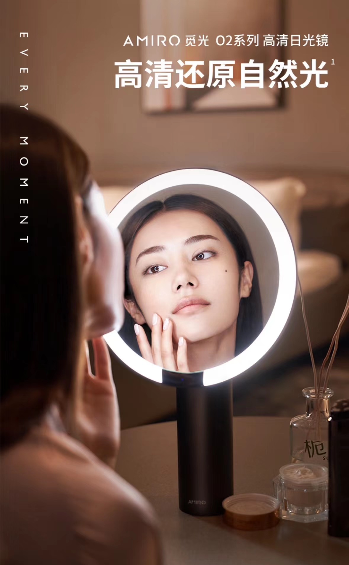 觅光AMIRO美妆镜带灯led日光智能高清化妆镜