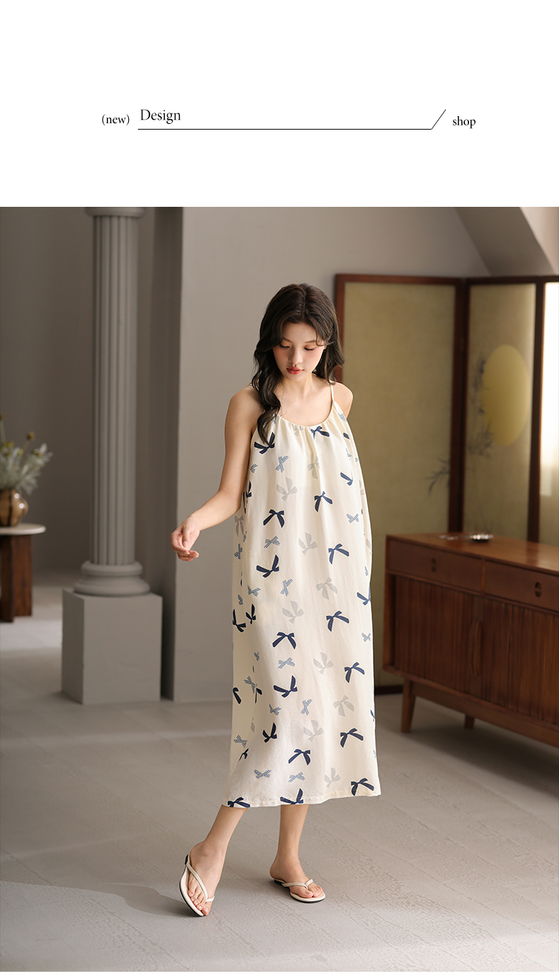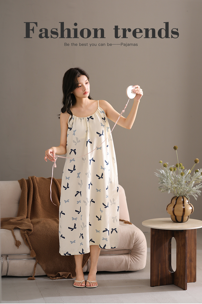 可人儿带bra小众设计新款泡泡绵女士睡衣夏季少女睡裙可外穿家居
