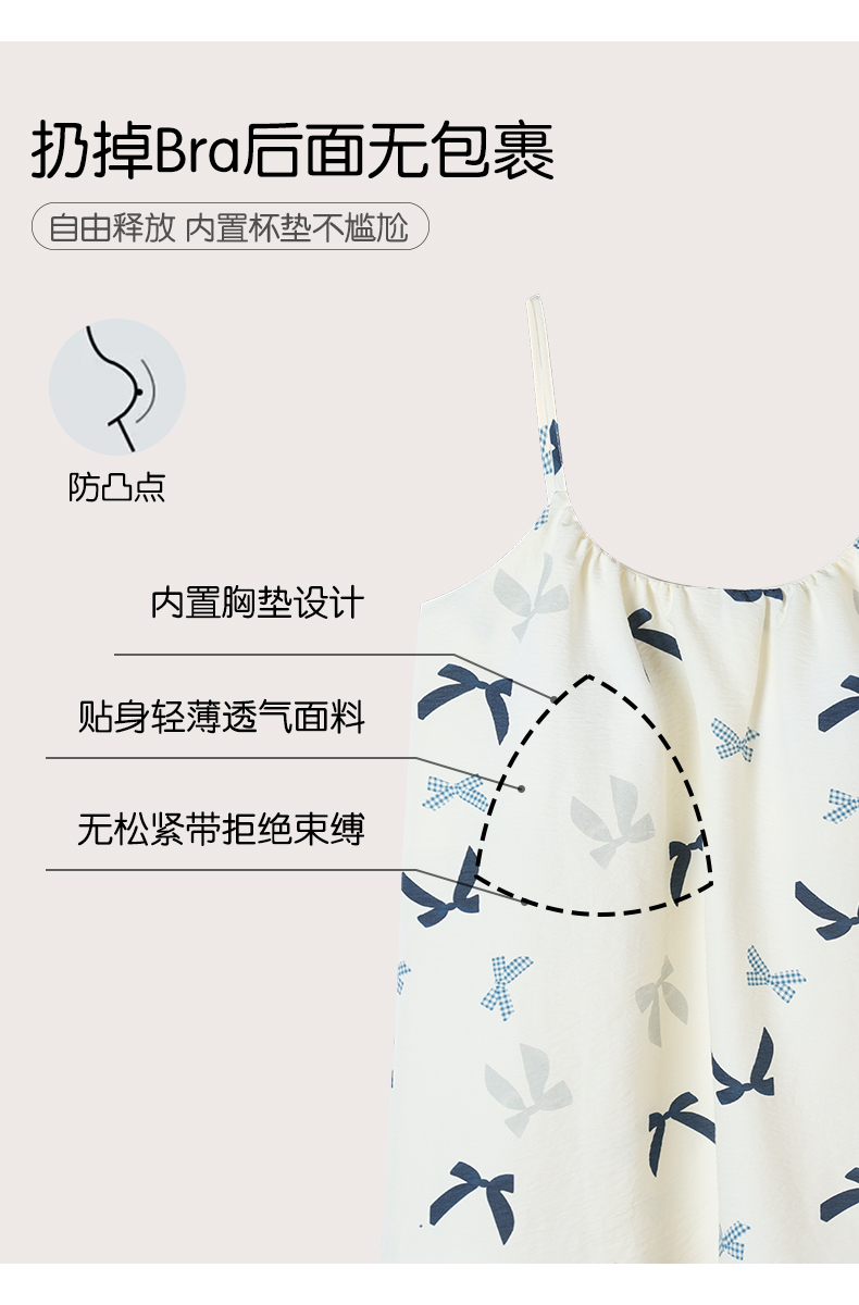 可人儿带bra小众设计新款泡泡绵女士睡衣夏季少女睡裙可外穿居家