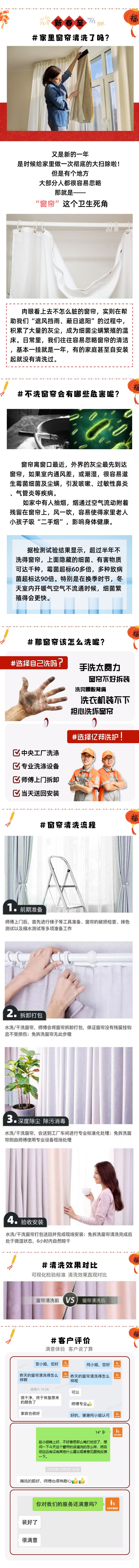4、窗帘清洗消毒后,会进行烘干处理,并打包安装;如验收安装时,遇个别“未干透”窗帘,只需挂晾后,正常风干即可。