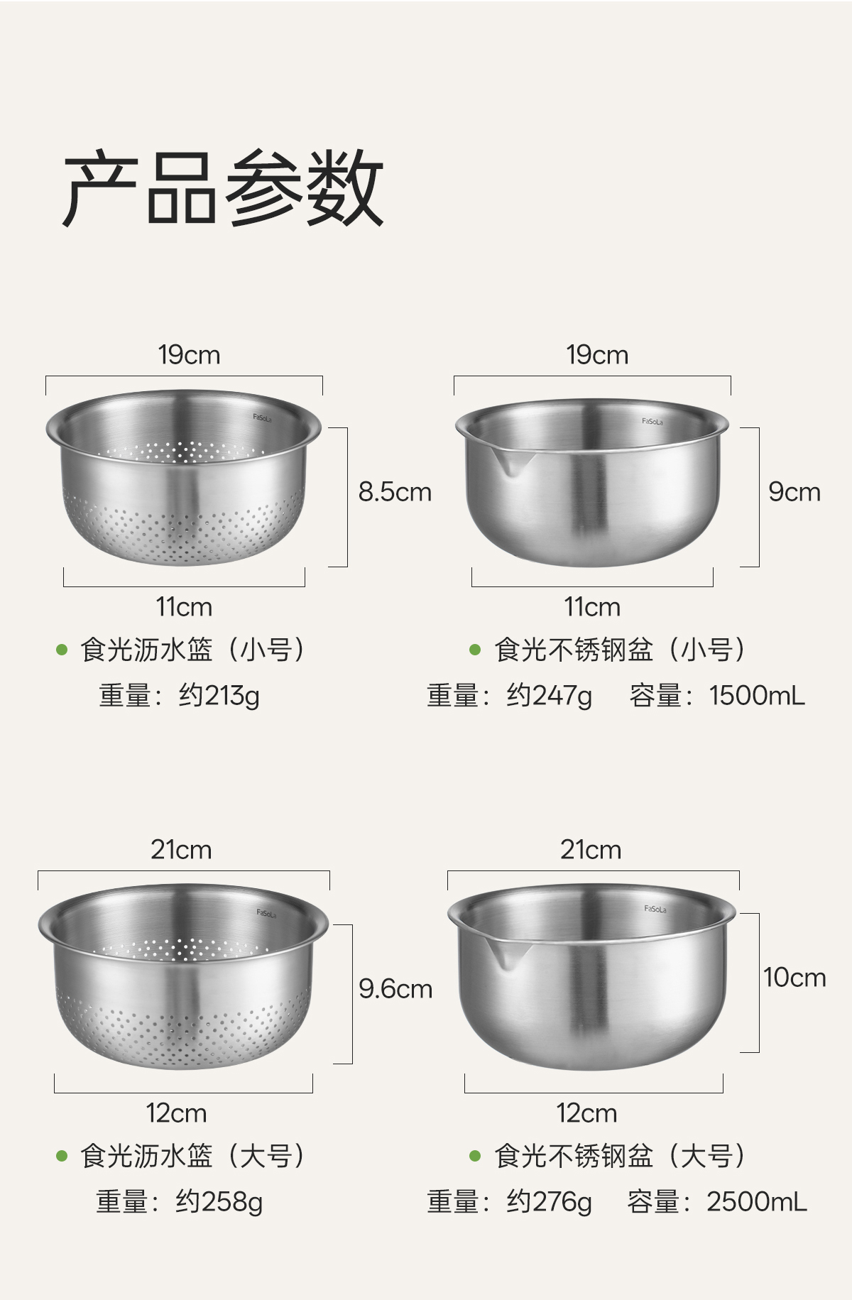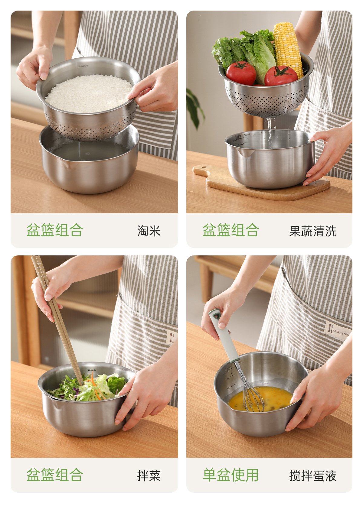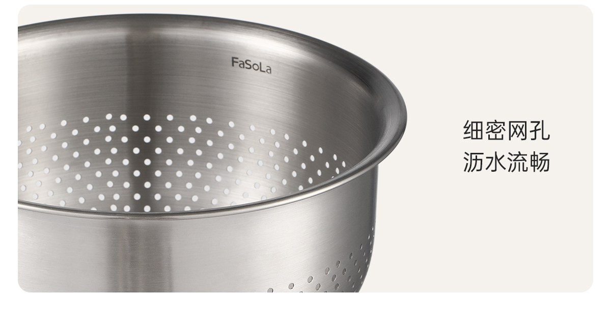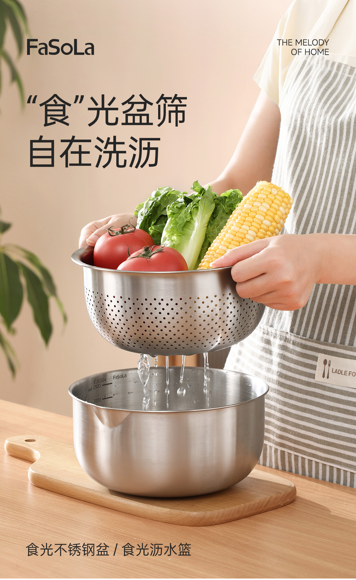 FaSoLa不锈钢漏盆厨房洗菜盆家用洗水果滤水防滑淘米盆食光不锈钢盆