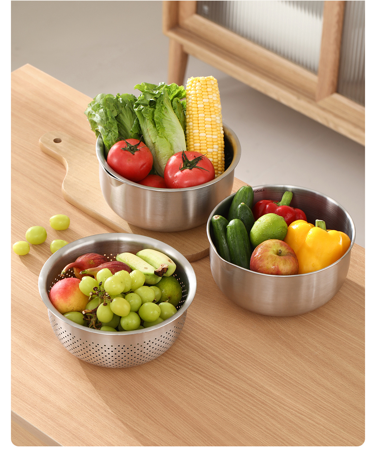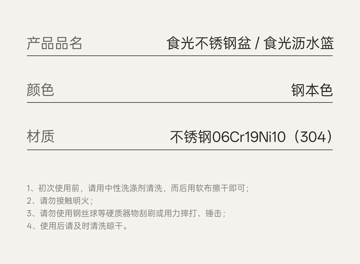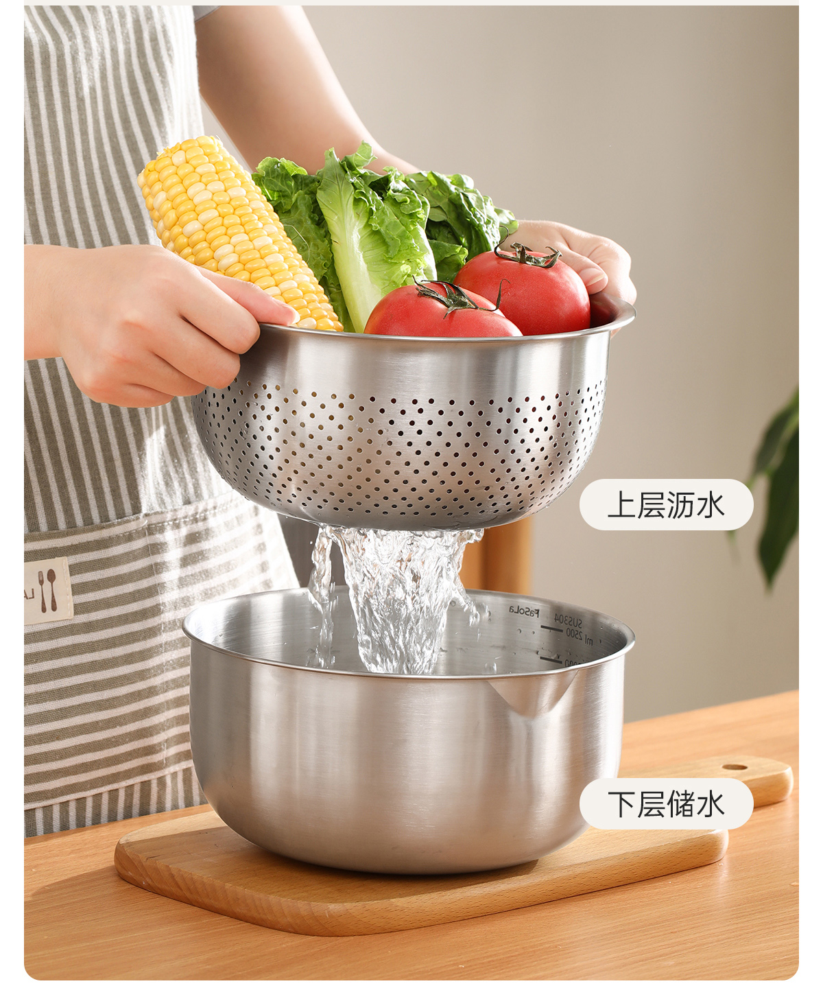 FaSoLa不锈钢漏盆厨房洗菜盆家用洗水果滤水防滑淘米盆食光不锈钢盆