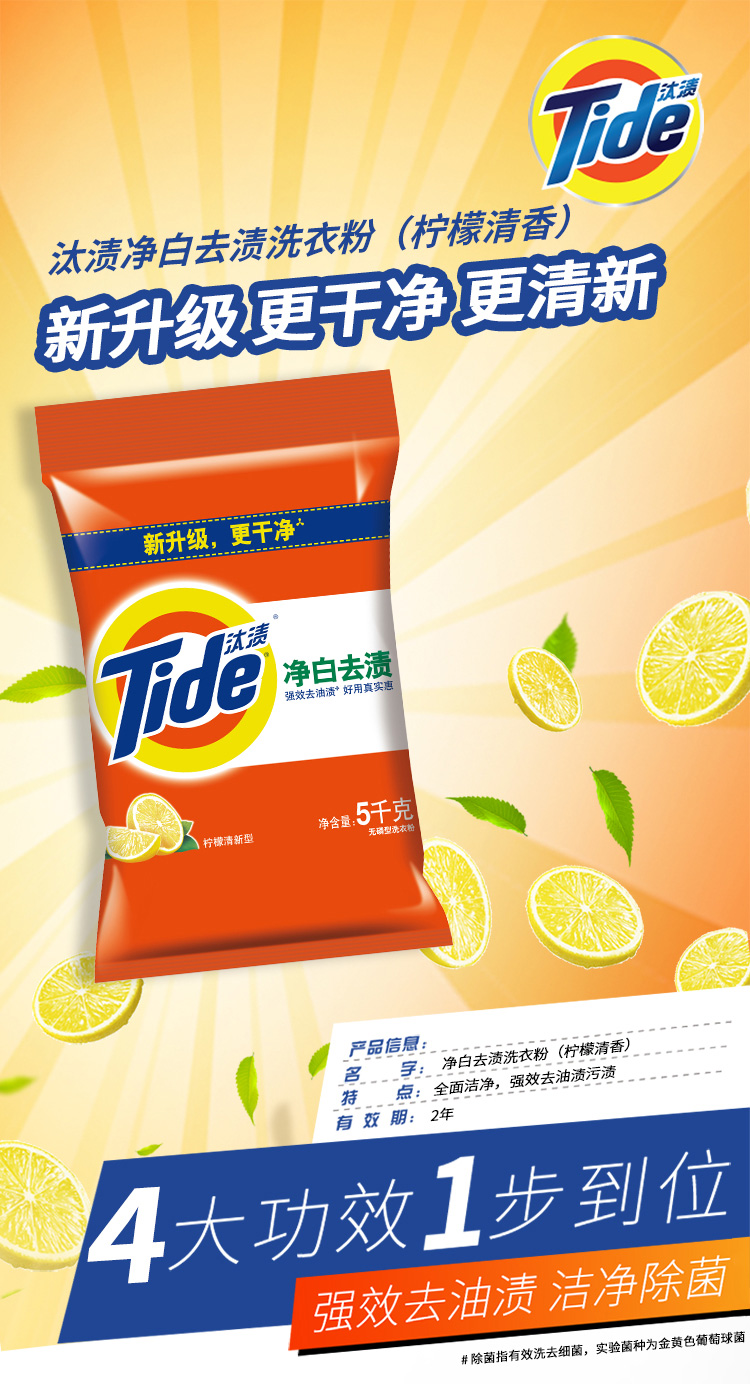 汰渍净白去渍强效去油污除菌香味持久柠檬清香洗衣粉10斤家庭装