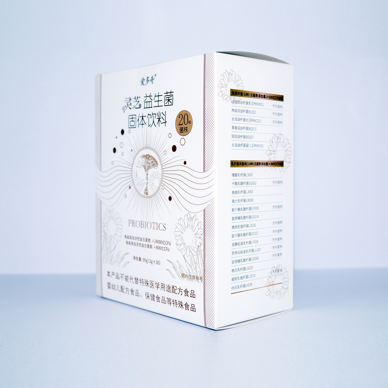 爱多奇灵芝益生菌(固体饮料) 3g*30条/盒 (效期至2027年10月)