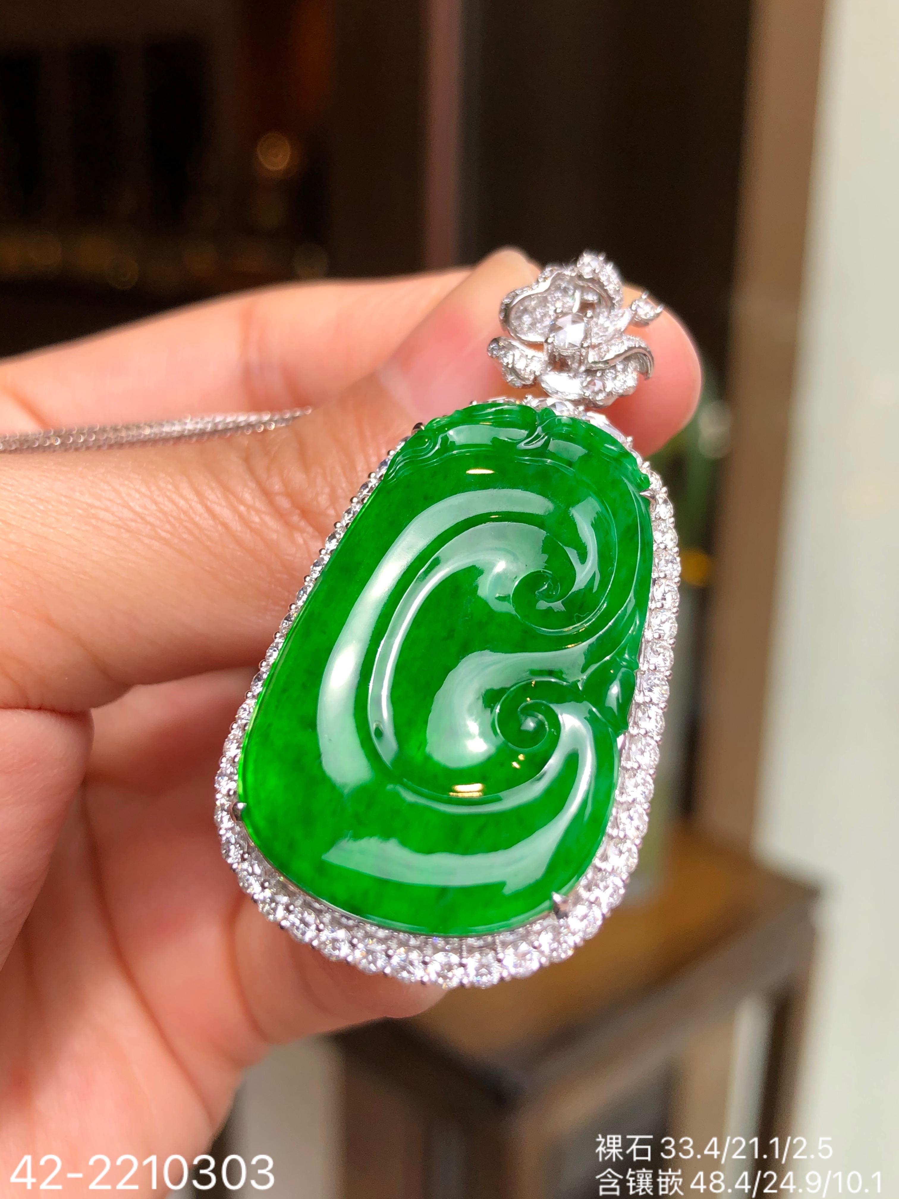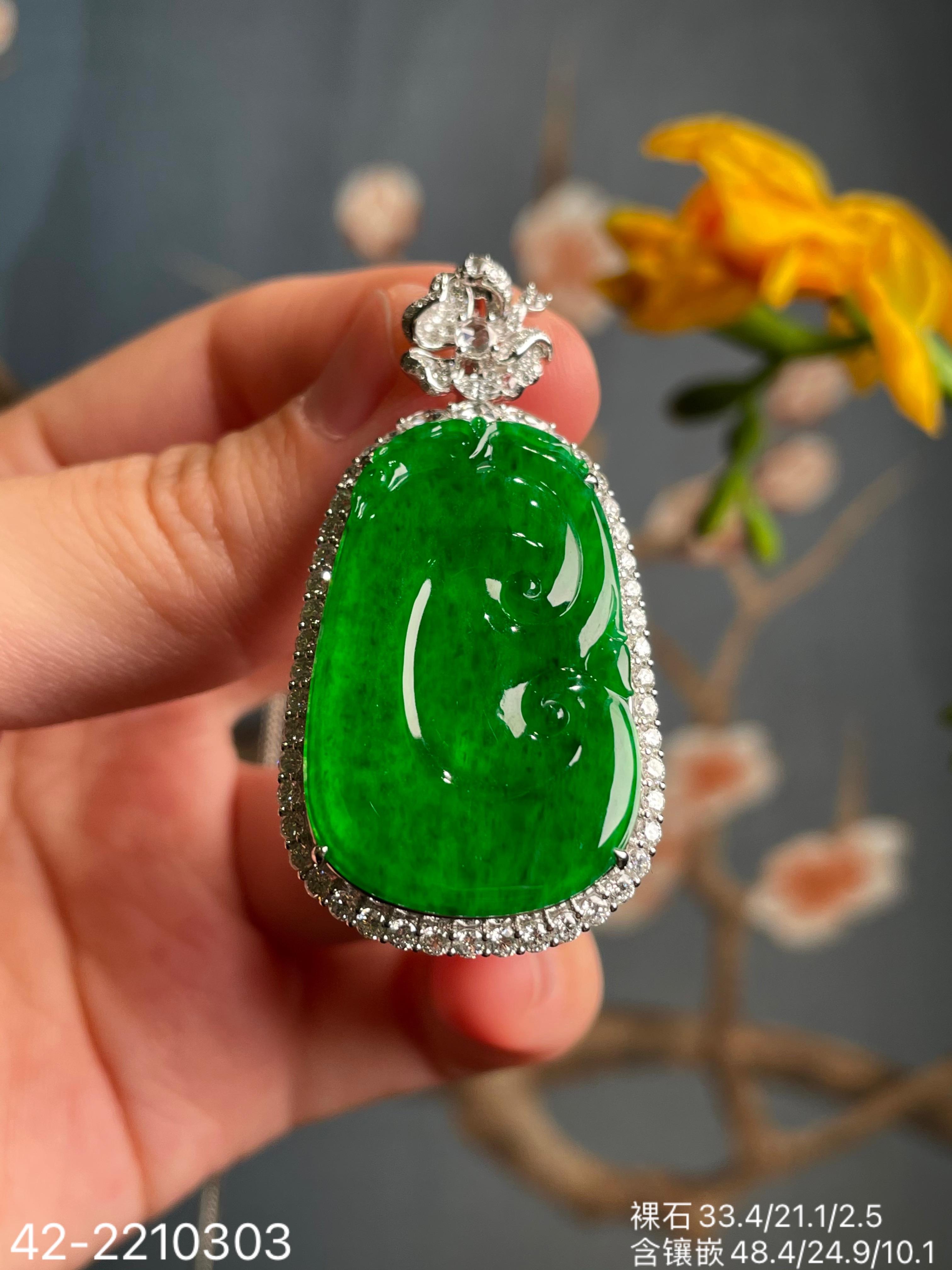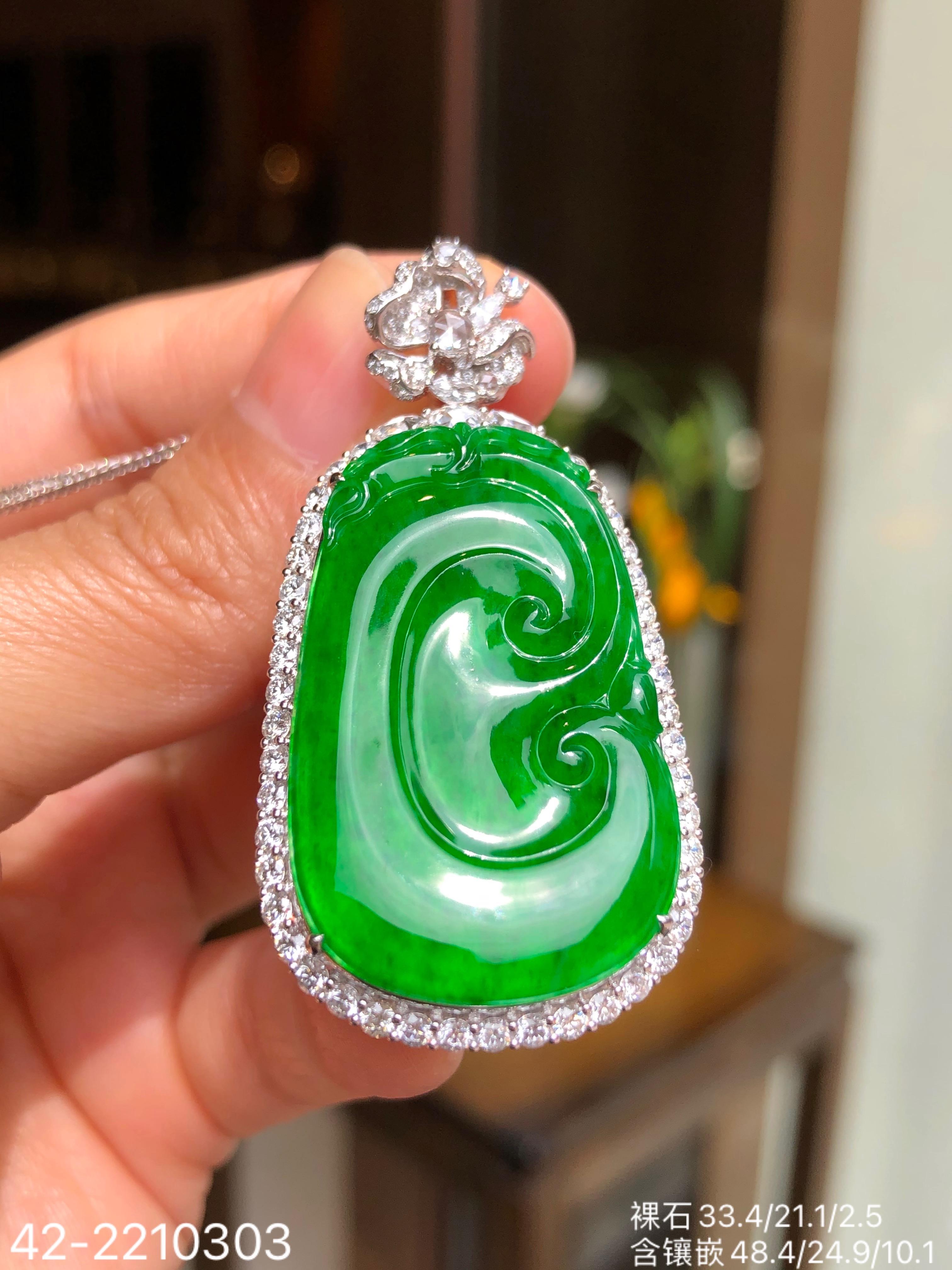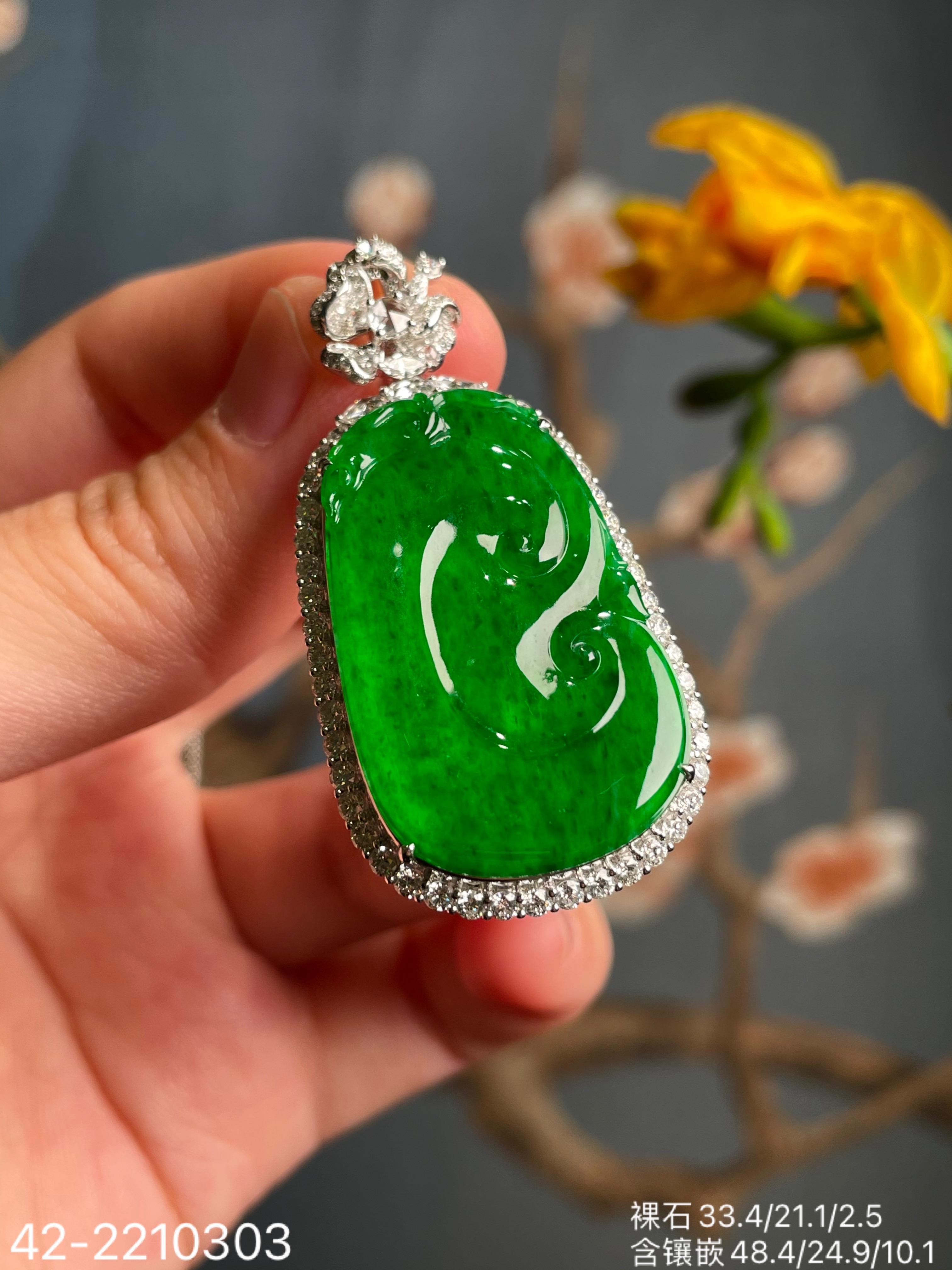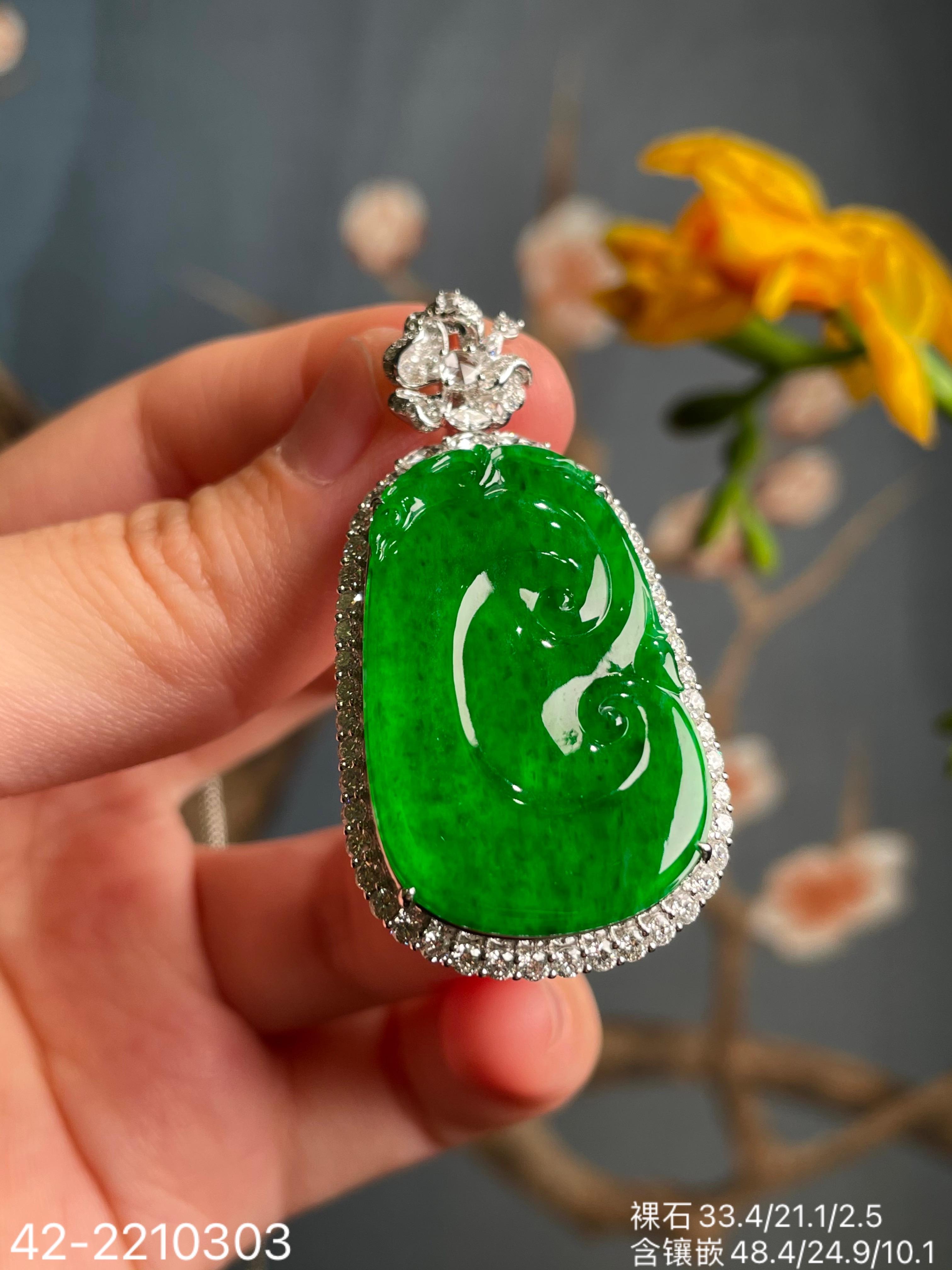 高冰艳绿如意吊坠【42-2210303】具体价格微信咨询