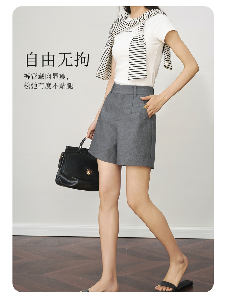 OLrain欧芮儿灰色西装短裤女夏季2025新款高腰韩版小个子热风裤子