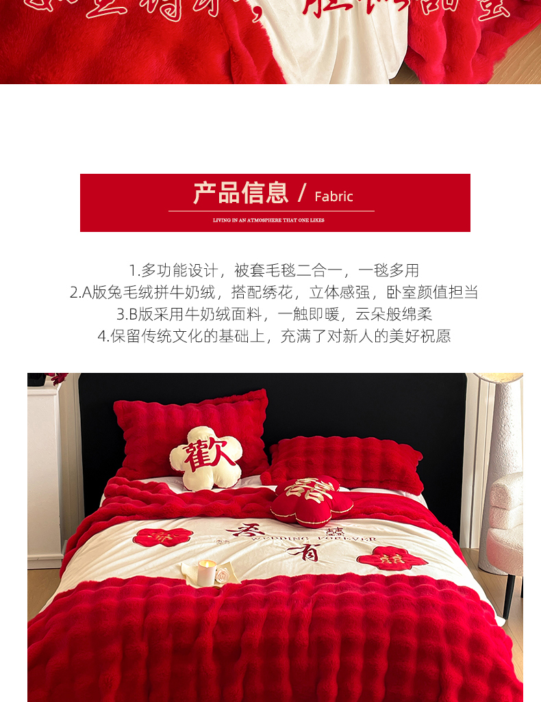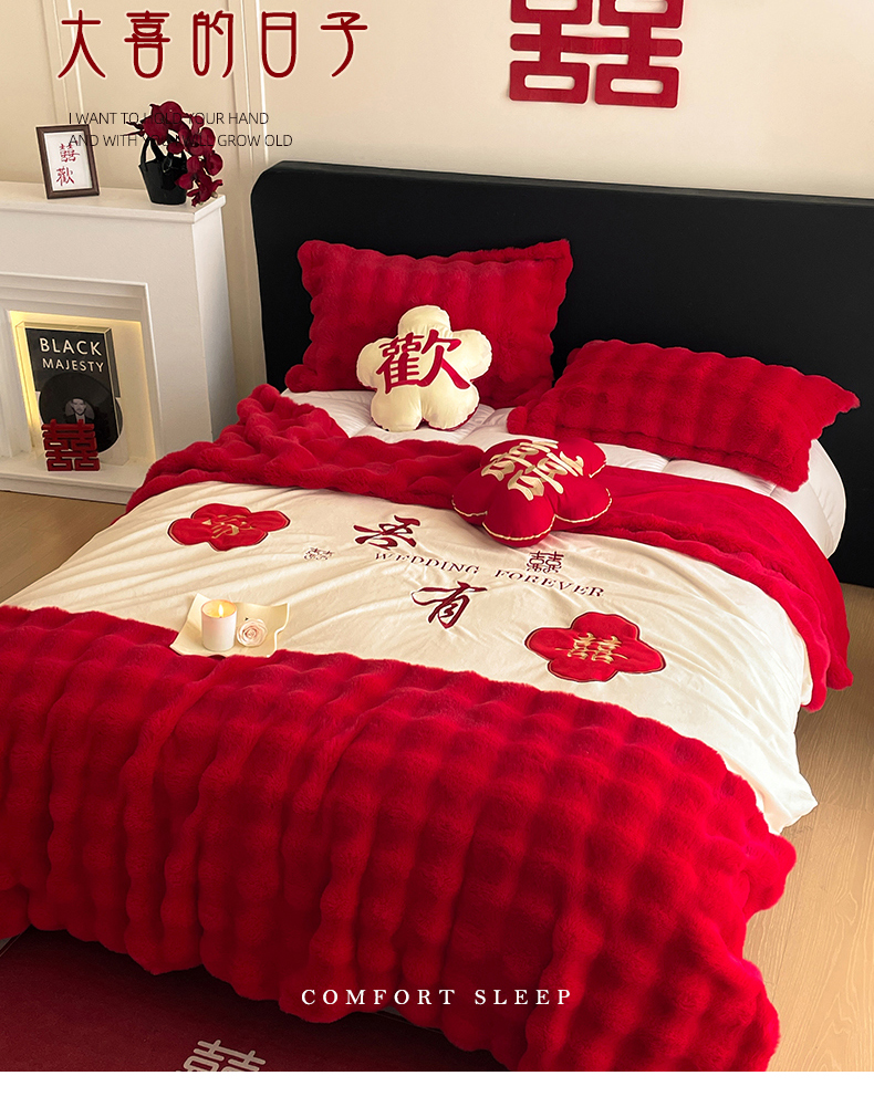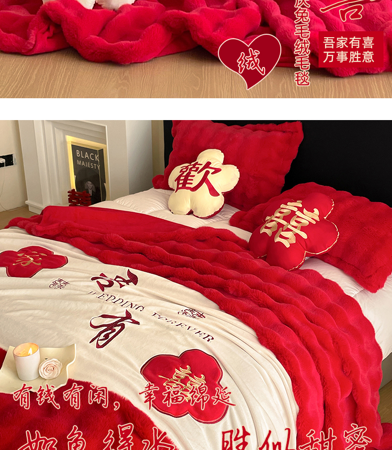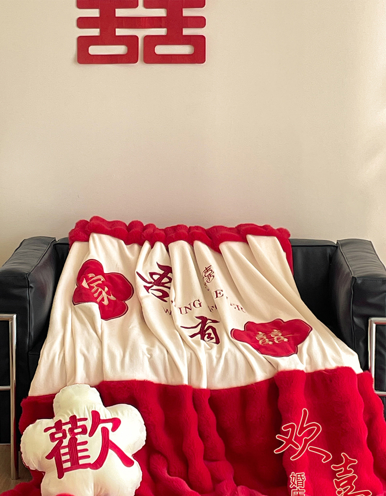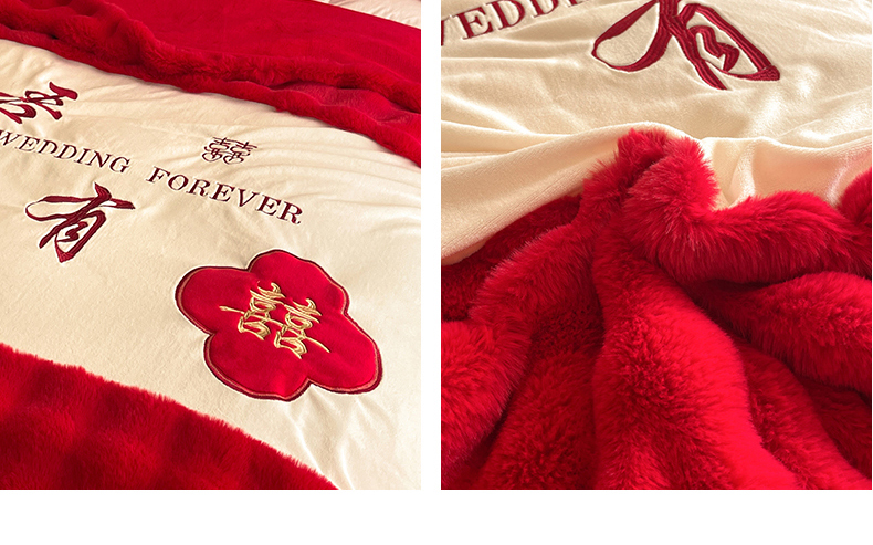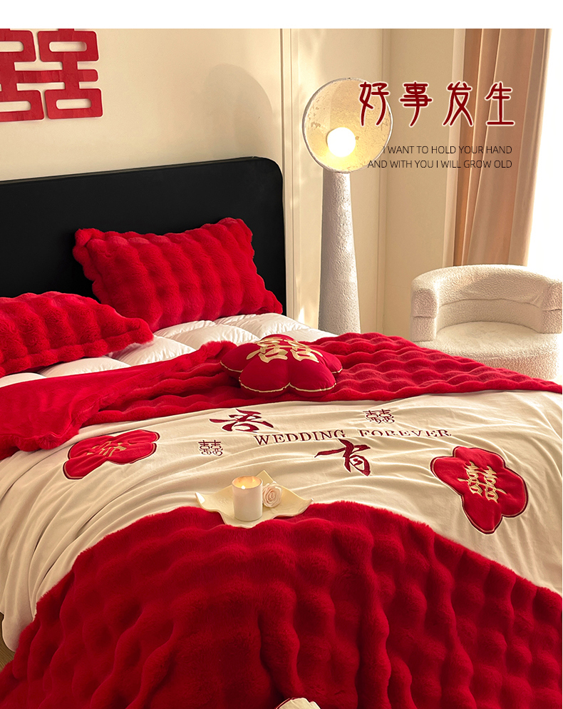 【品牌直发】加倍生活 兔毛绒多功能婚庆毛毯 被套两用婚庆毯 豆豆被被子被芯