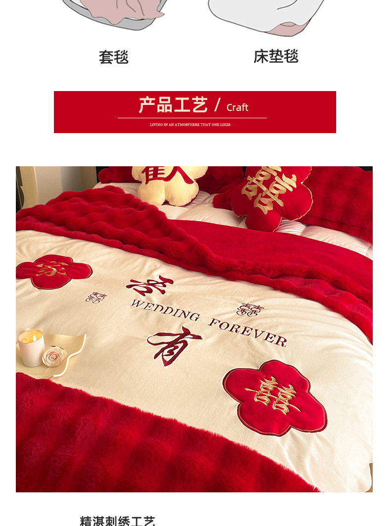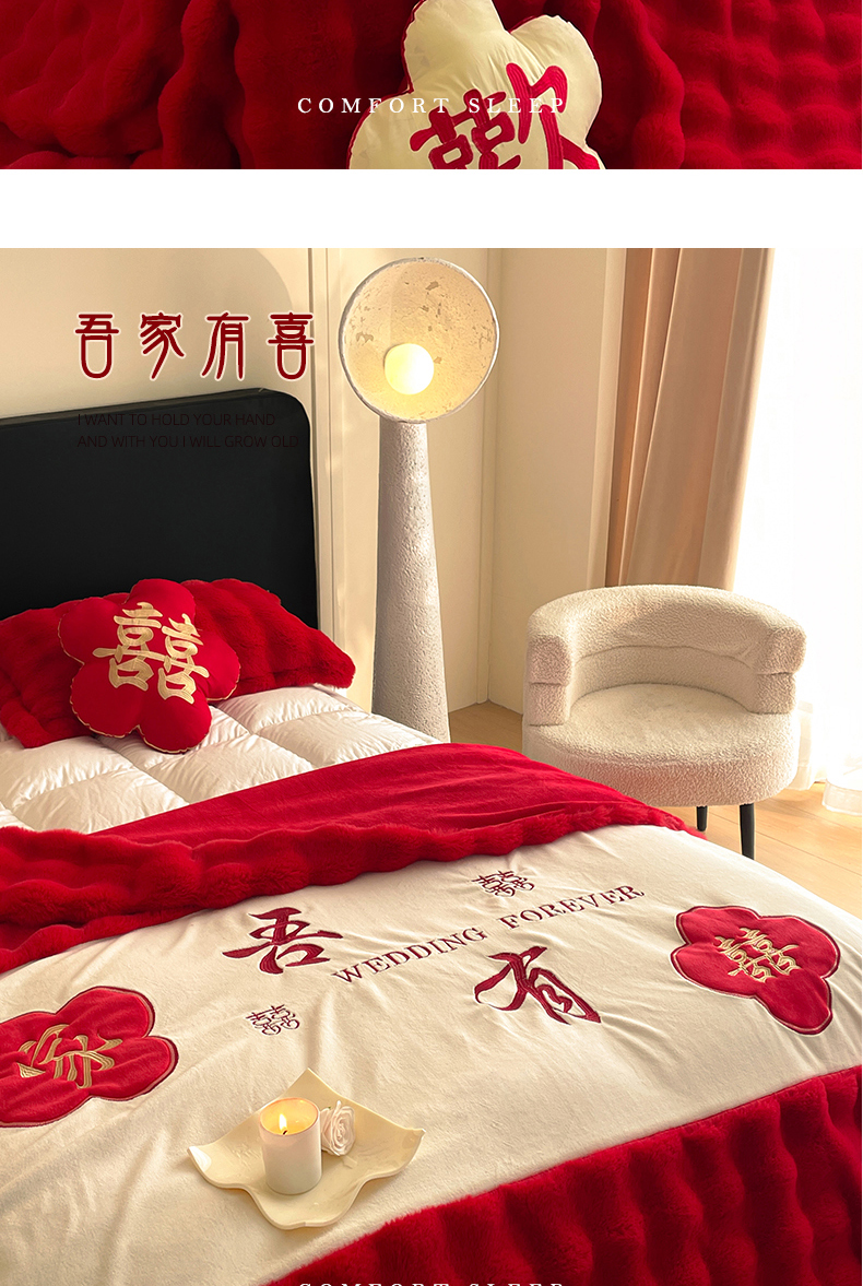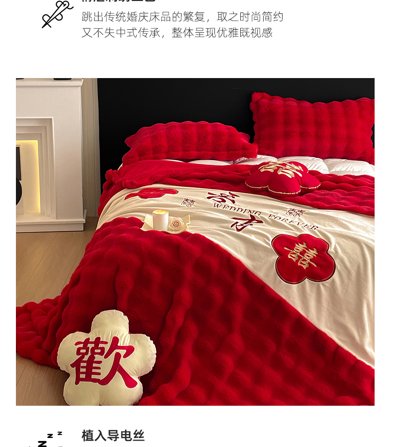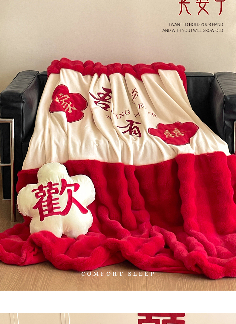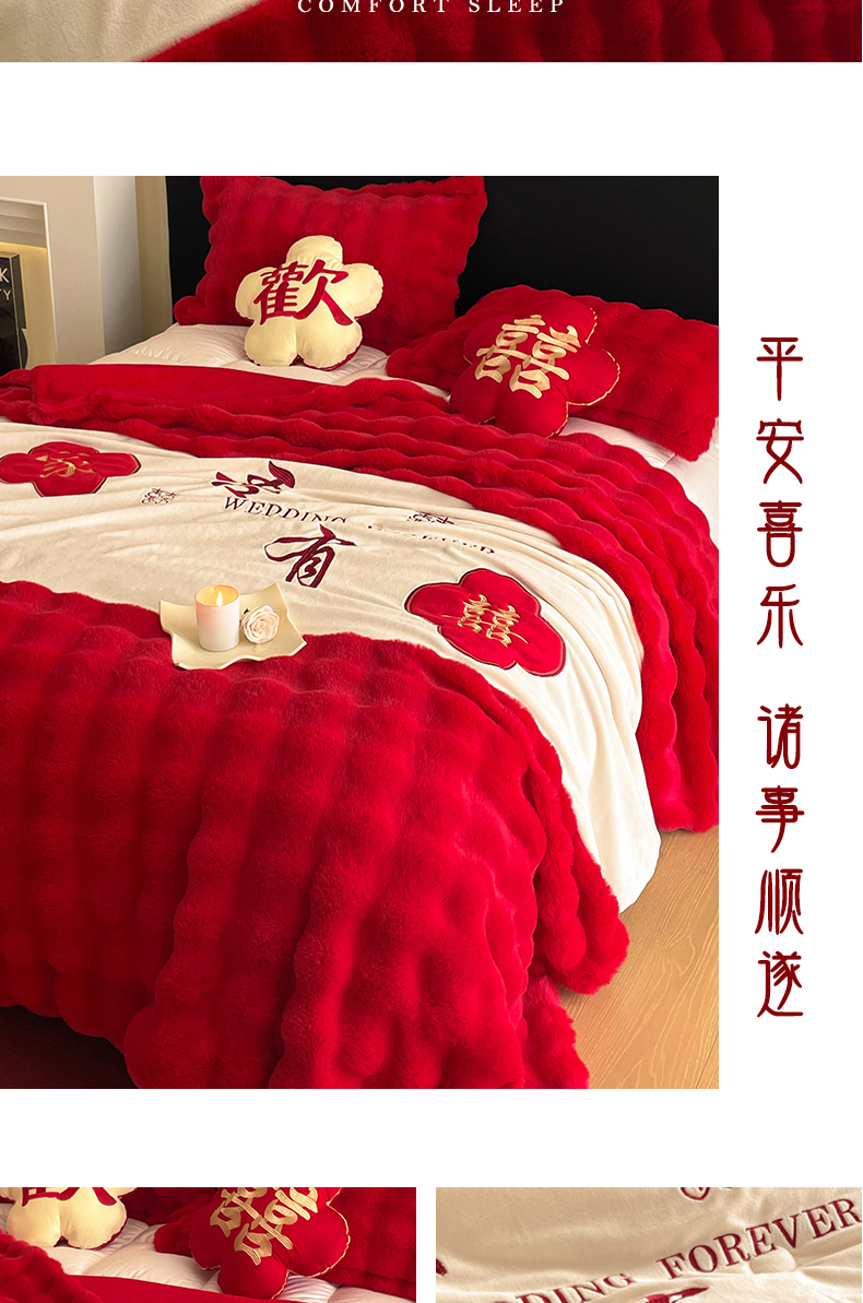 【品牌直发】加倍生活 兔毛绒多功能婚庆毛毯 被套两用婚庆毯 豆豆被被子被芯