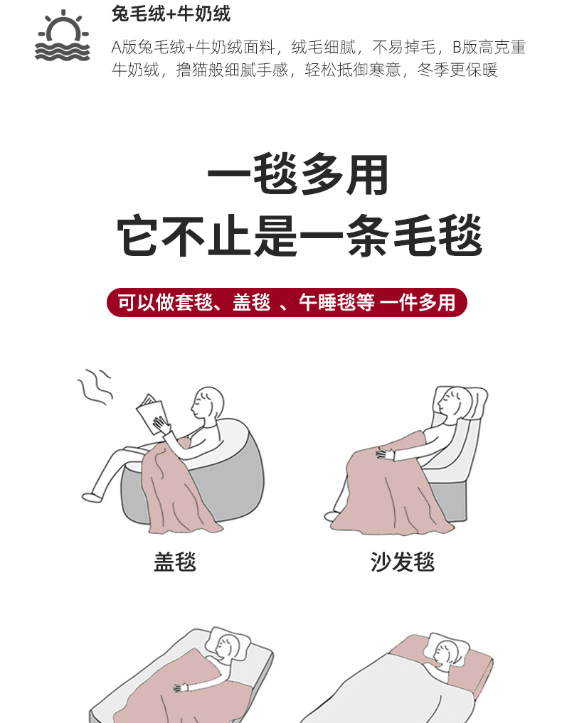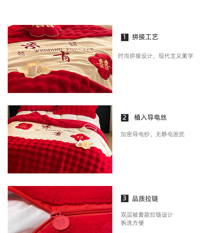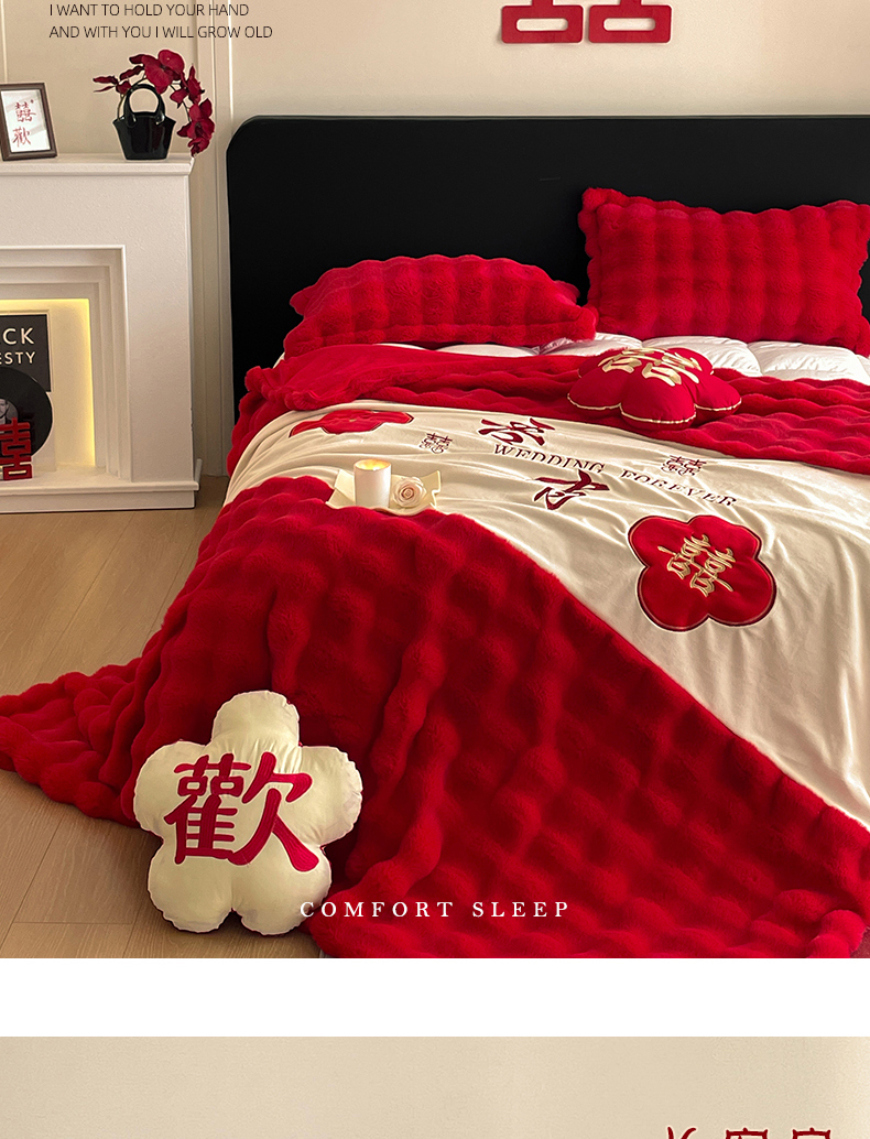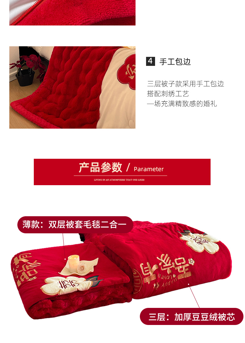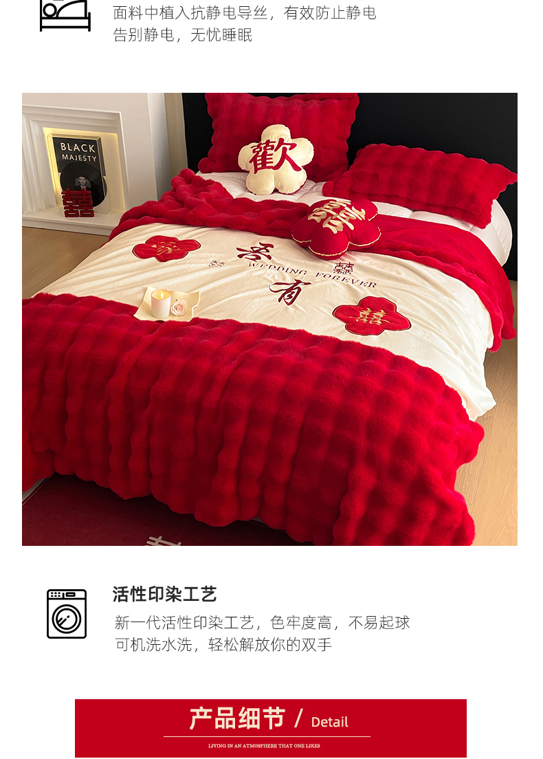 【品牌直发】加倍生活 兔毛绒多功能婚庆毛毯 被套两用婚庆毯 豆豆被被子被芯