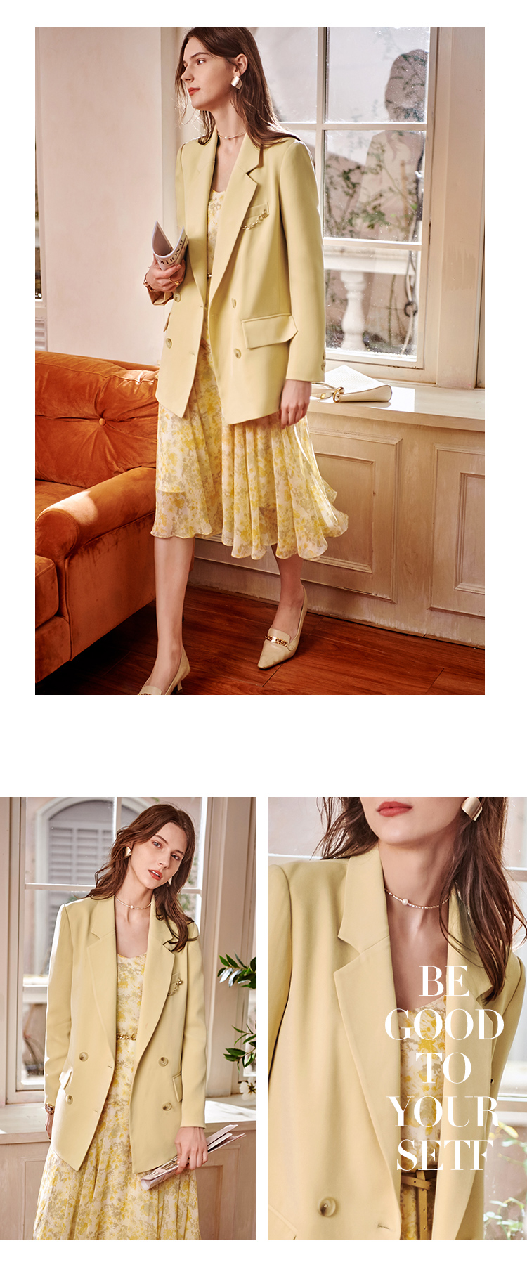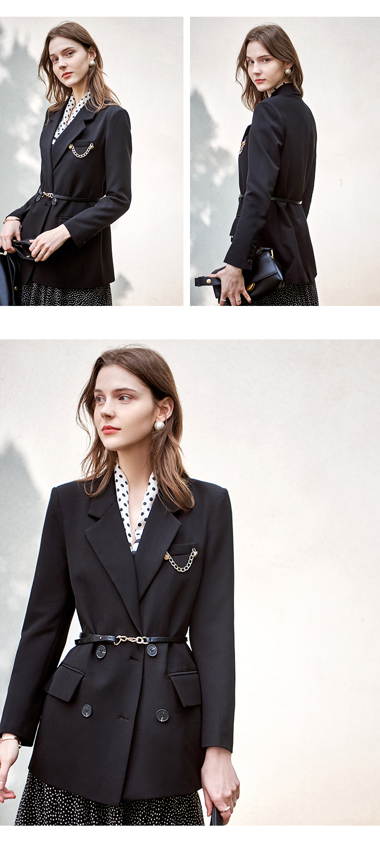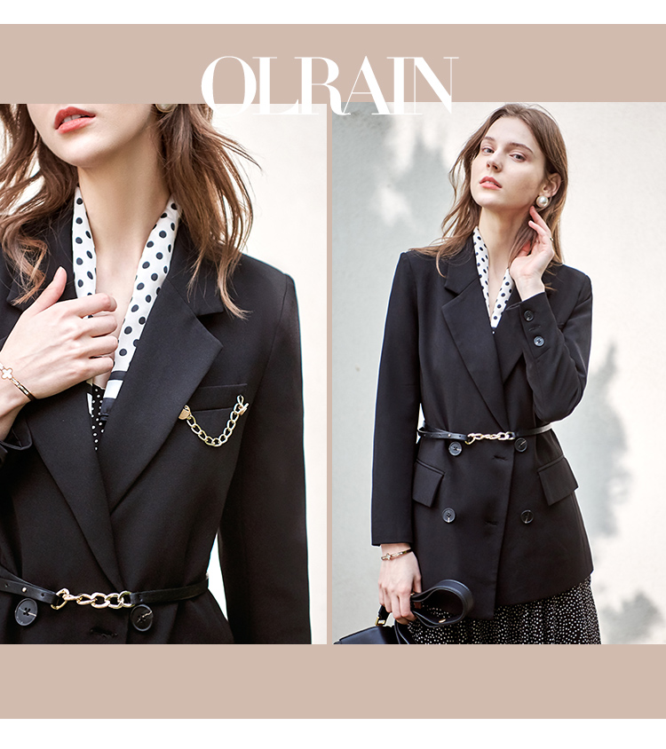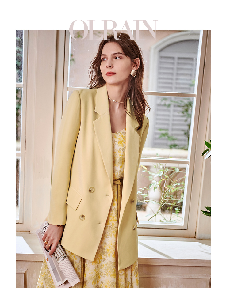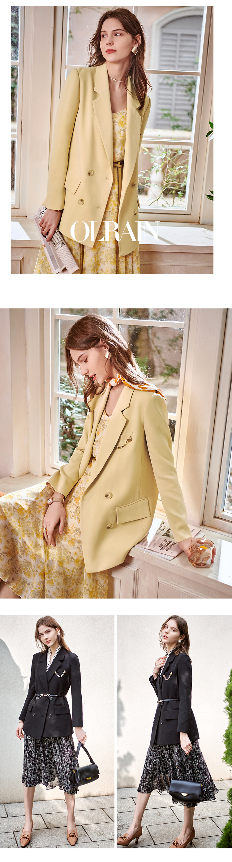 欧芮儿休闲西装短外套女春季新款双排扣气质年轻俏皮时尚经典百搭