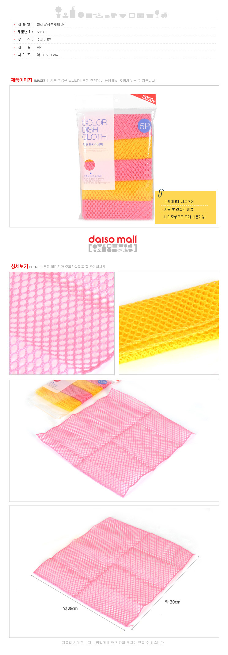 彩色网状洗涤塔5P-53371 大创清洁巾 Daiso Cleaning towelJPY带授权招加盟代理