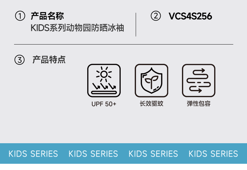 VVC KIDS系列动物园防晒冰袖活力鳄(绿/粉/灰/蓝)VCS4S256