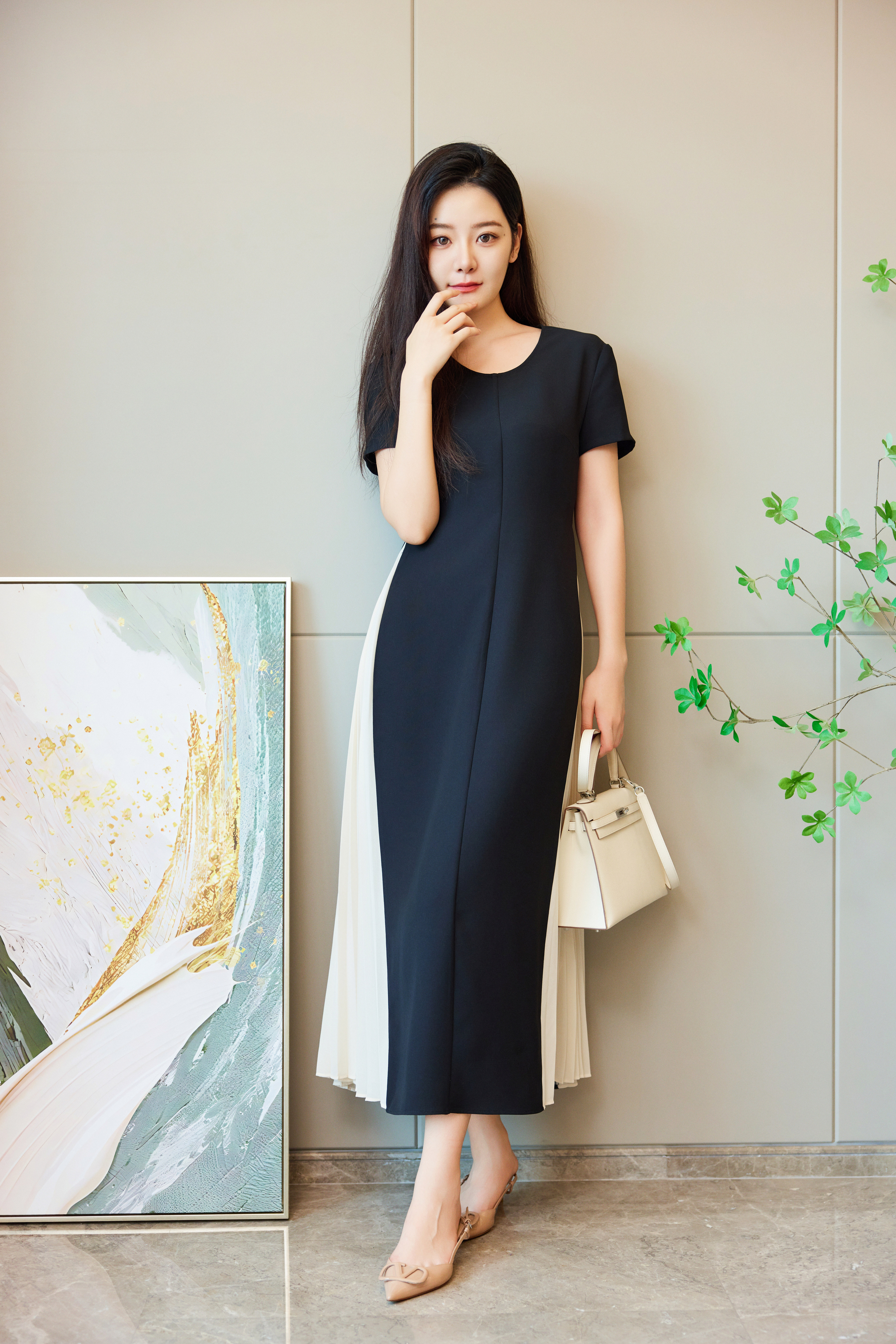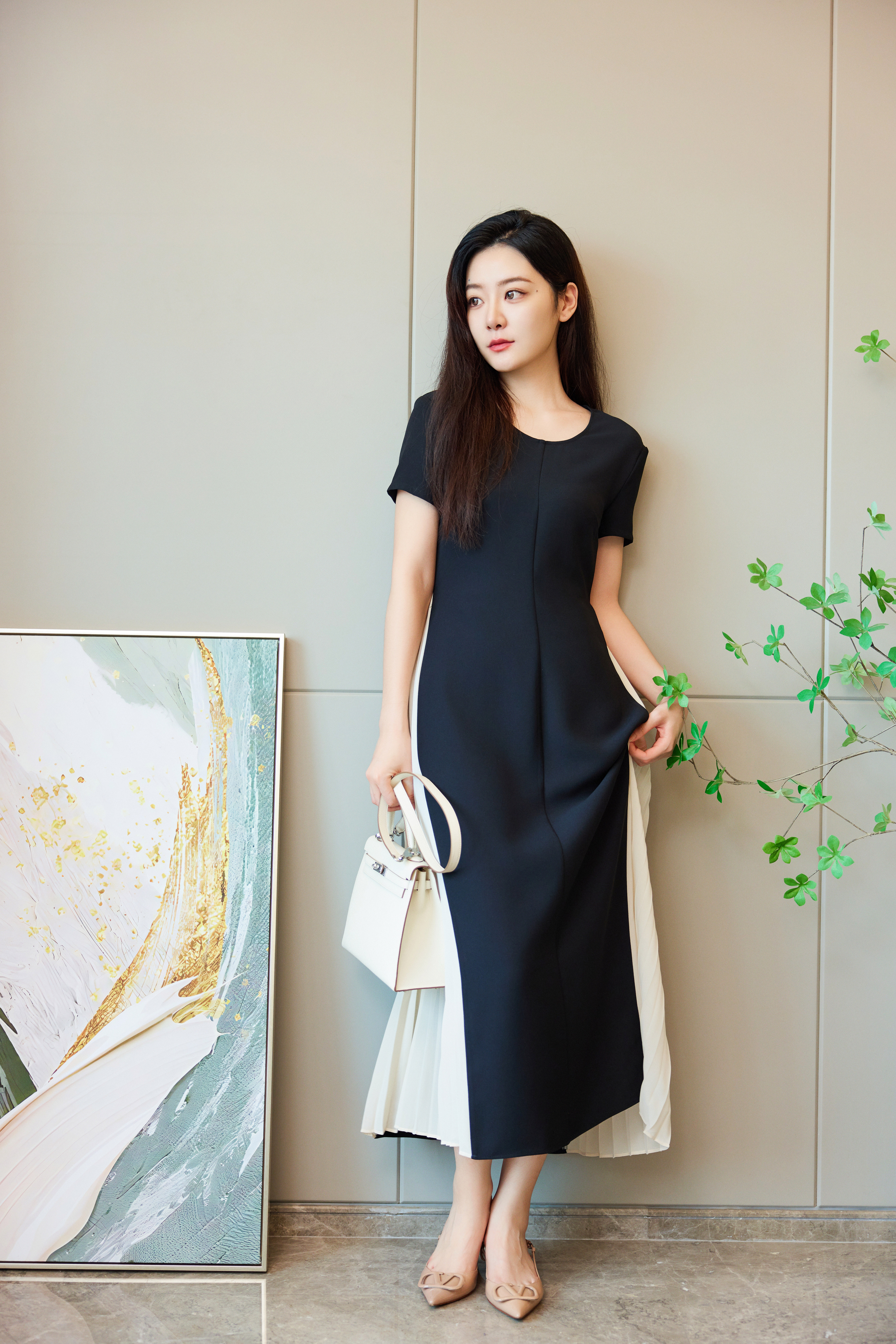 轻歌曼舞|侧百褶醋酸连衣裙