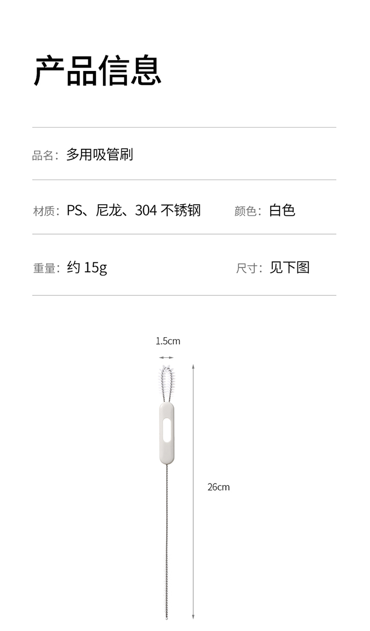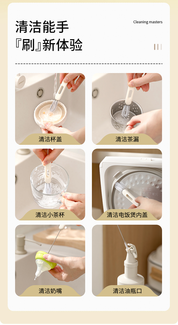 FaSoLa 吸管刷子奶瓶儿童水杯清洁刷细加长厨房杯盖茶壶缝隙刷神器