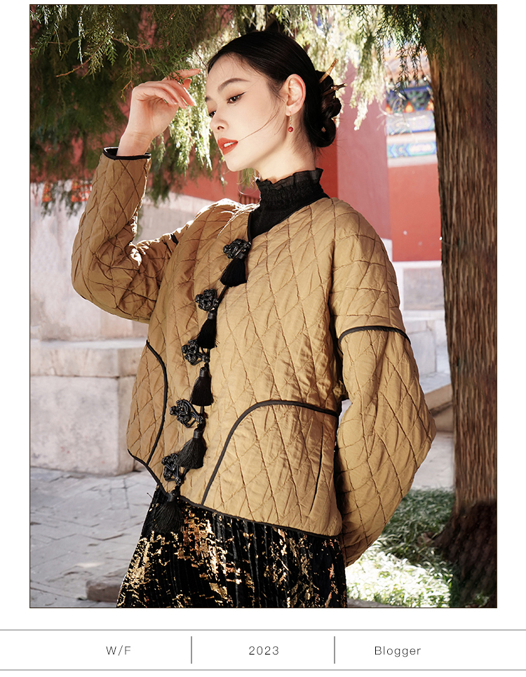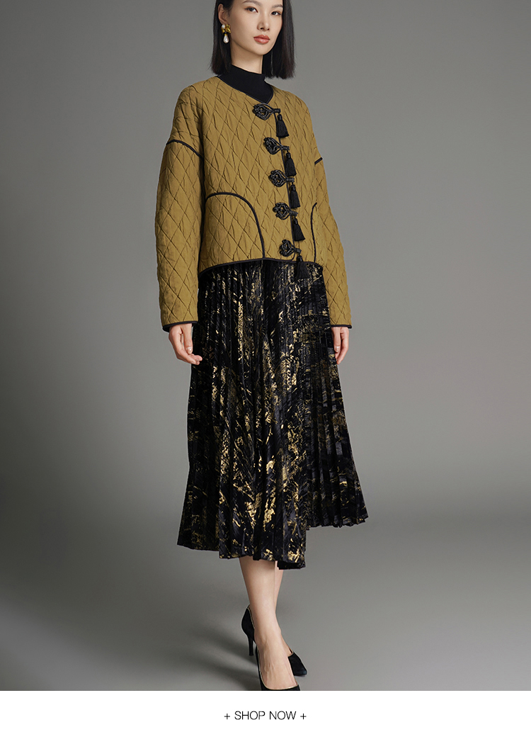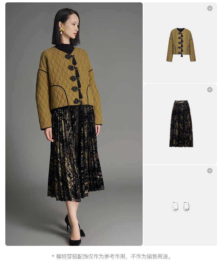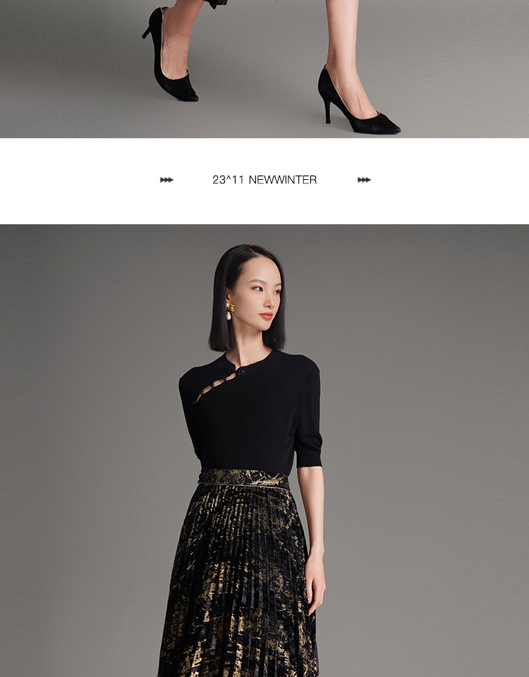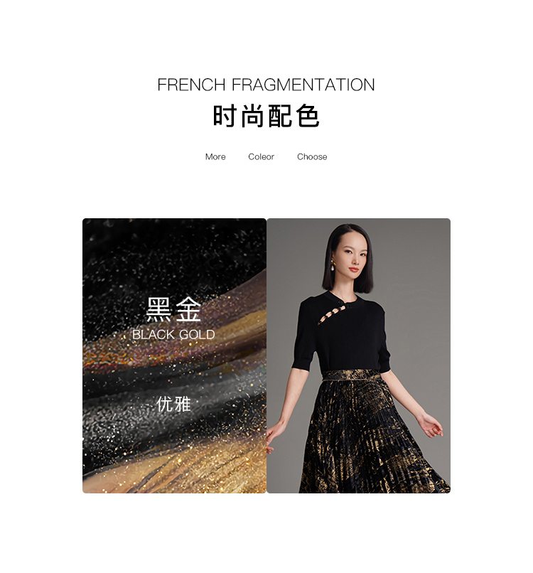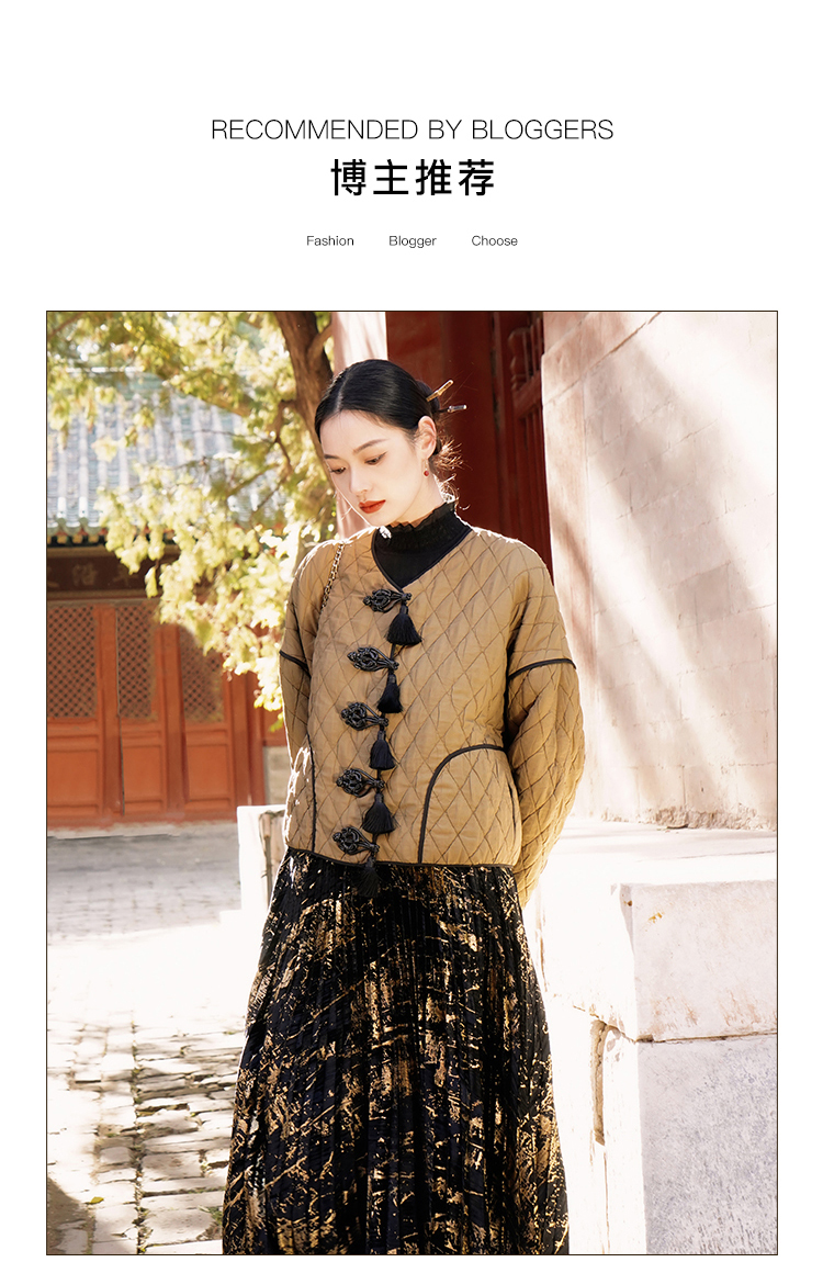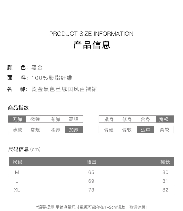 郭培成衣品牌烫金黑色丝绒国风百褶裙