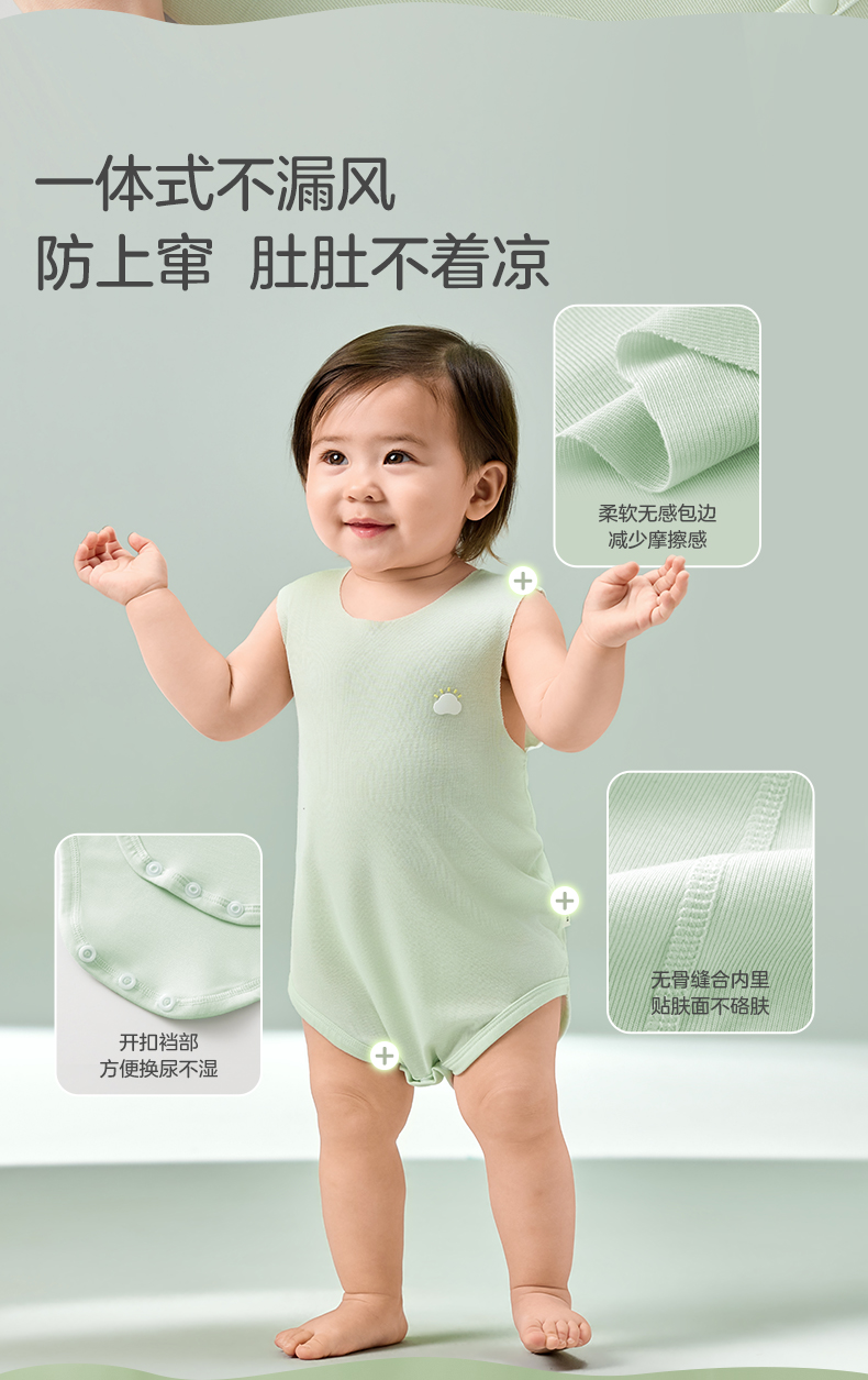 粒粒阳光新款背心包屁衣夏季薄款随心裁凉感无袖哈衣爬服