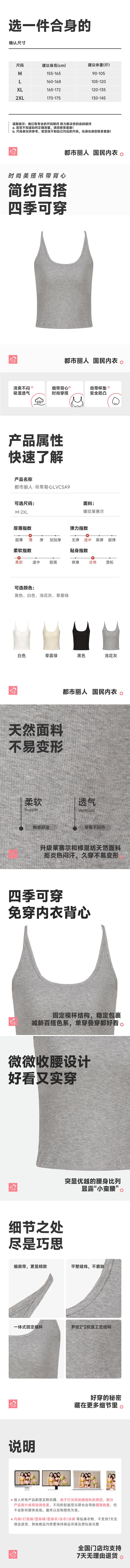 都市丽人背心无罩杯薄螺纹莱赛尔背心棉质吊带背心有杯垫时尚美搭LVC5A9