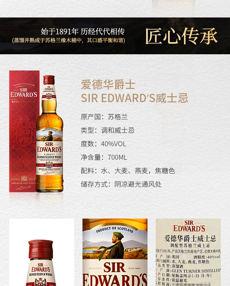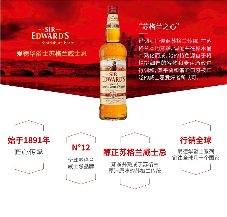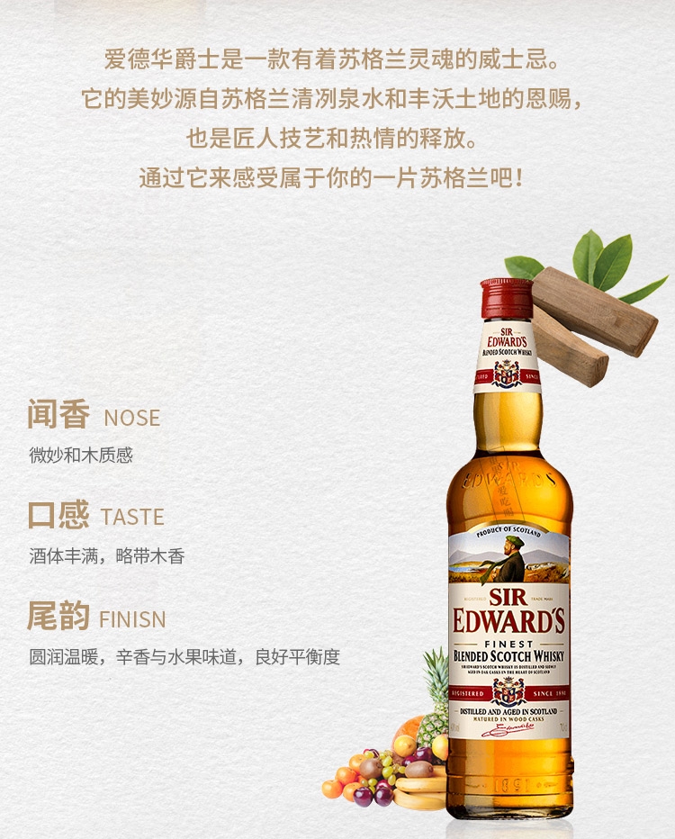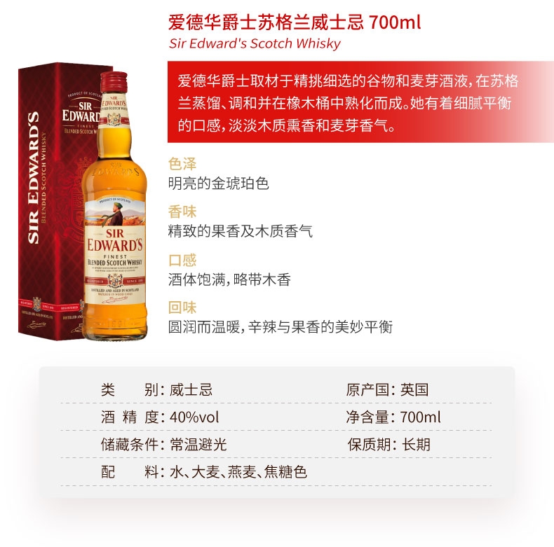 【有税版】【第二件0元】爱德华爵士调配型苏格兰威士忌 700ml带酒盒