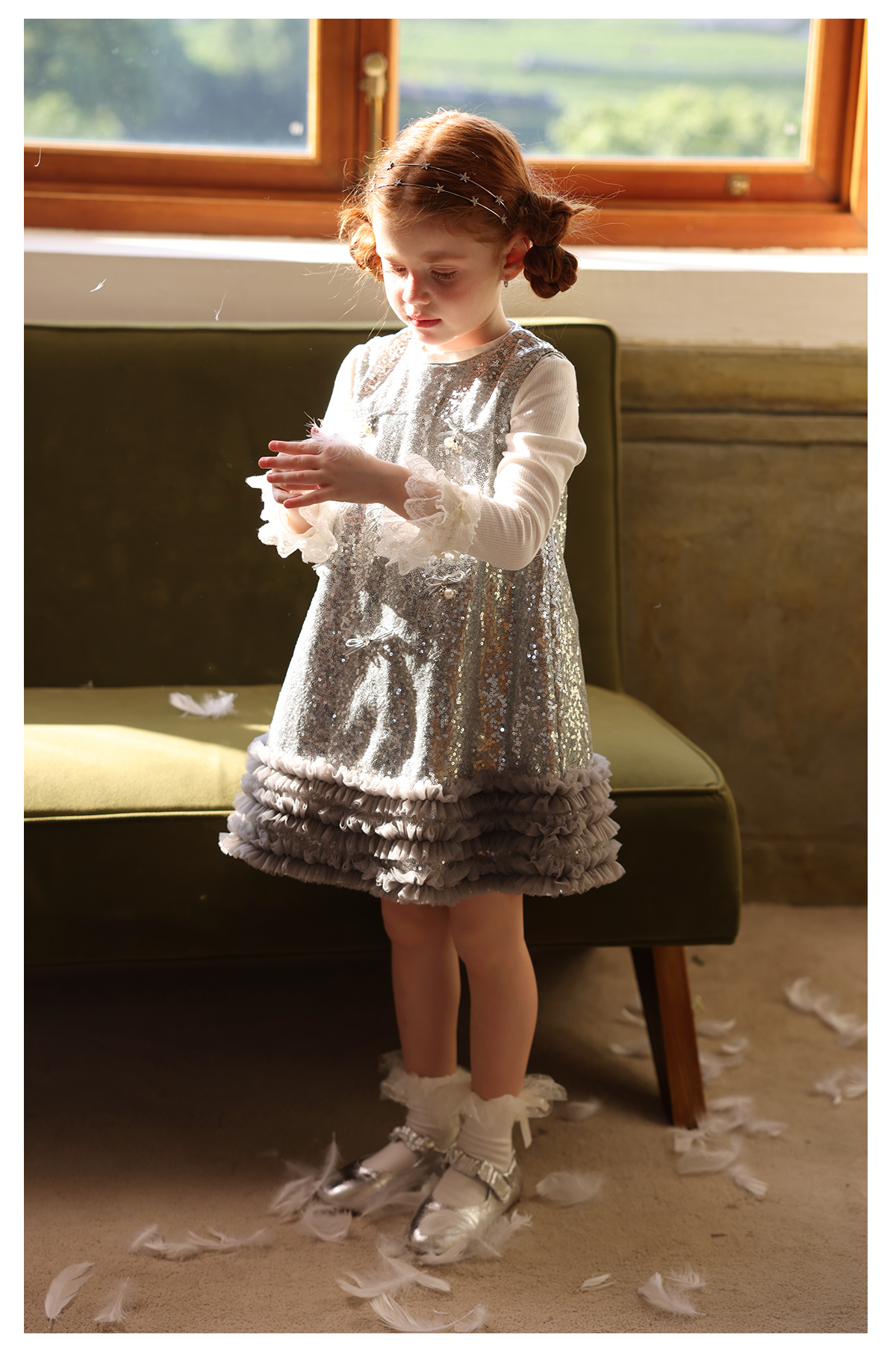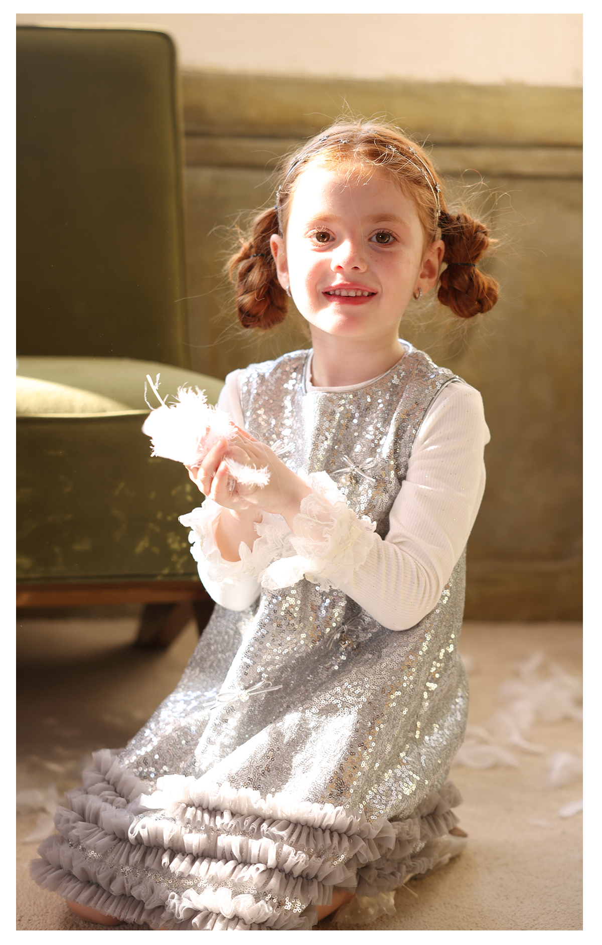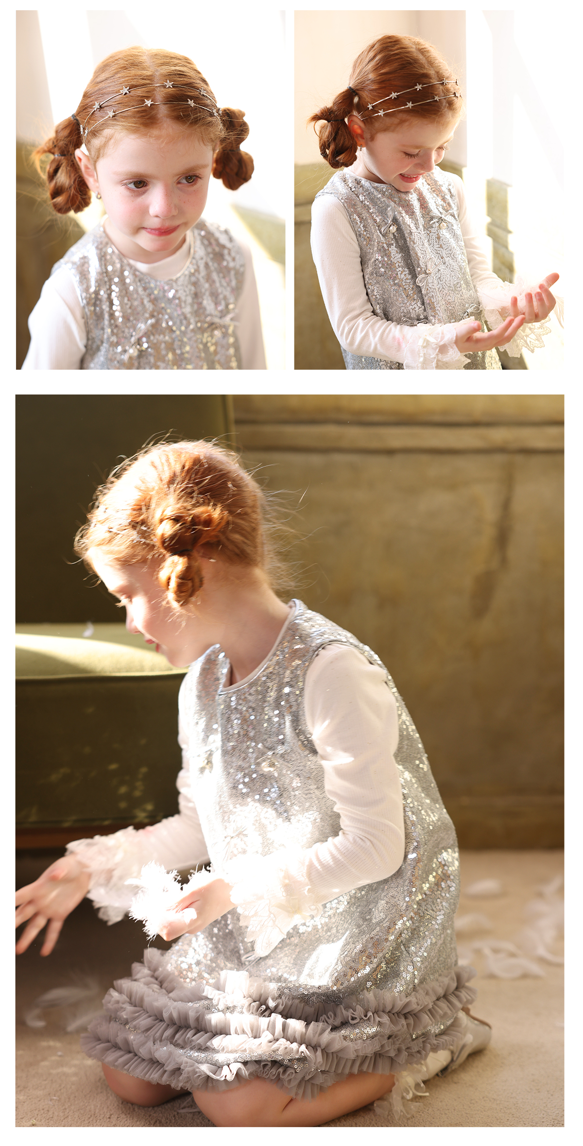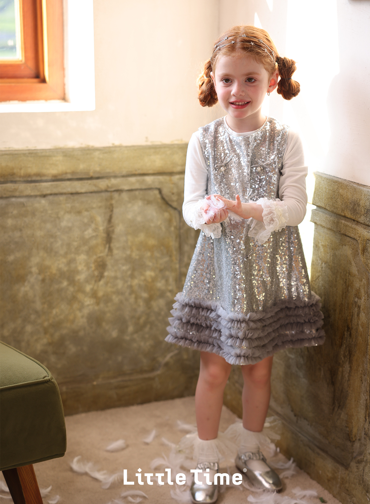littletime女童连衣裙2025秋冬新款儿童韩版亮片蝴蝶结公主裙