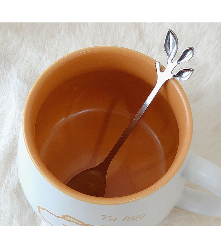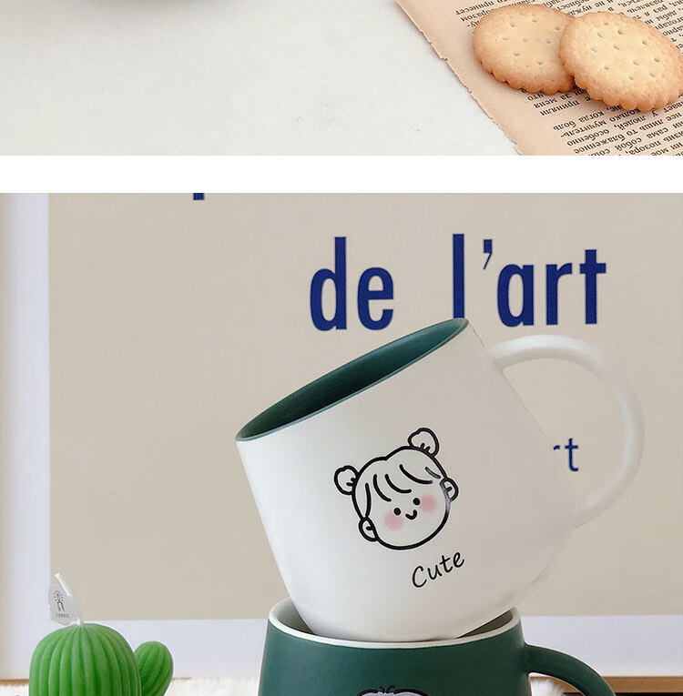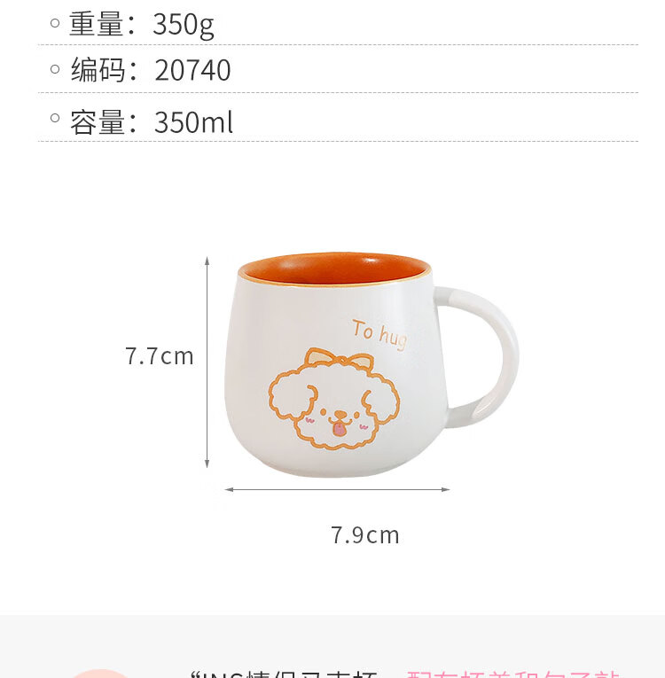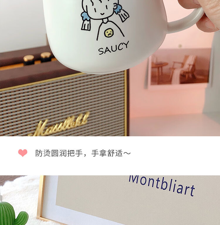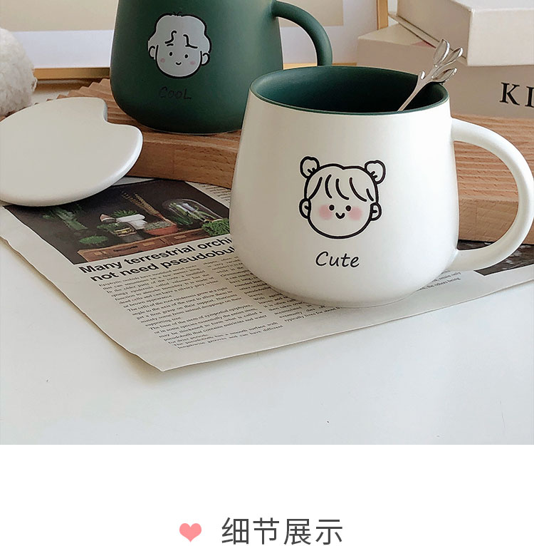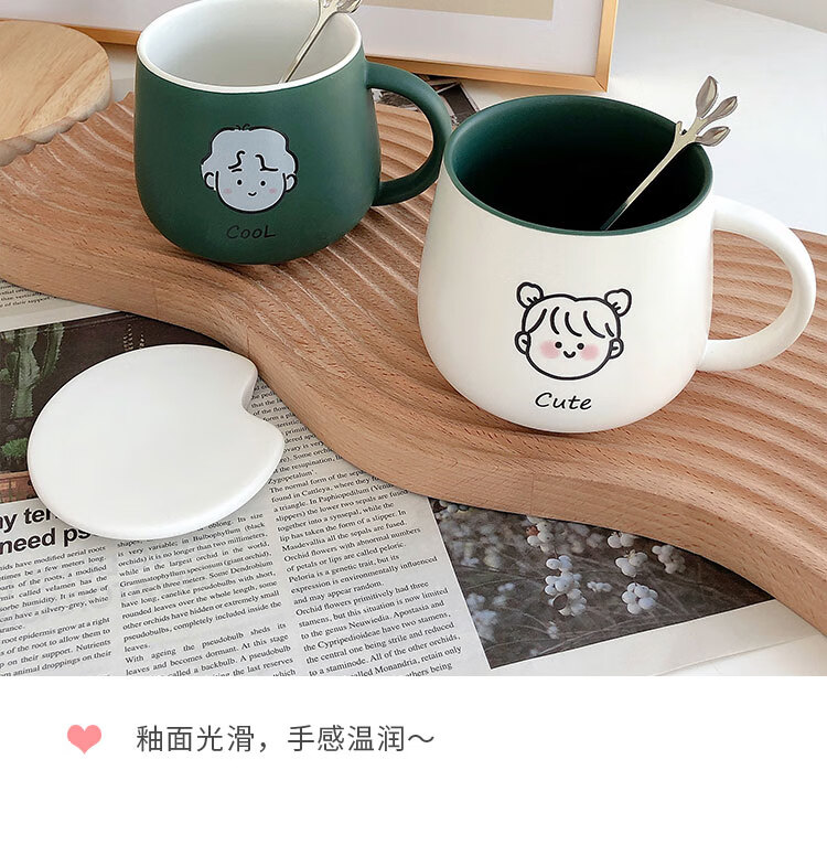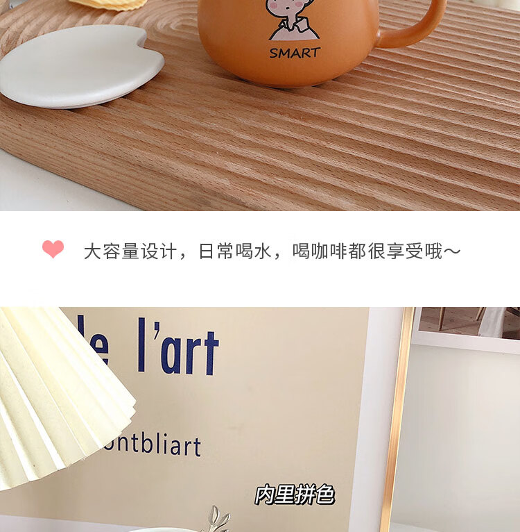 情侣杯子一对杯女生带盖勺水杯陶瓷高颜值可爱咖啡杯家用早餐 白savcy+黄smart(勺子)