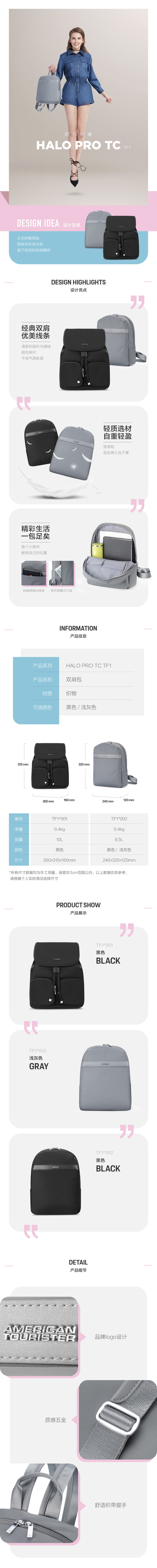 【美旅】小巧轻便时尚 双肩 进口尼龙 通勤 优质五金 便捷 安全防盗 TF1*001&002