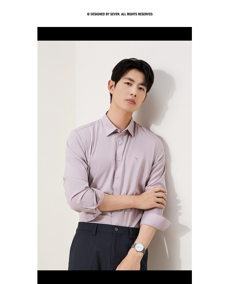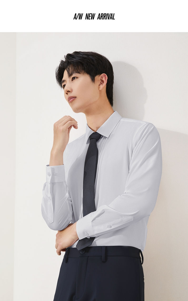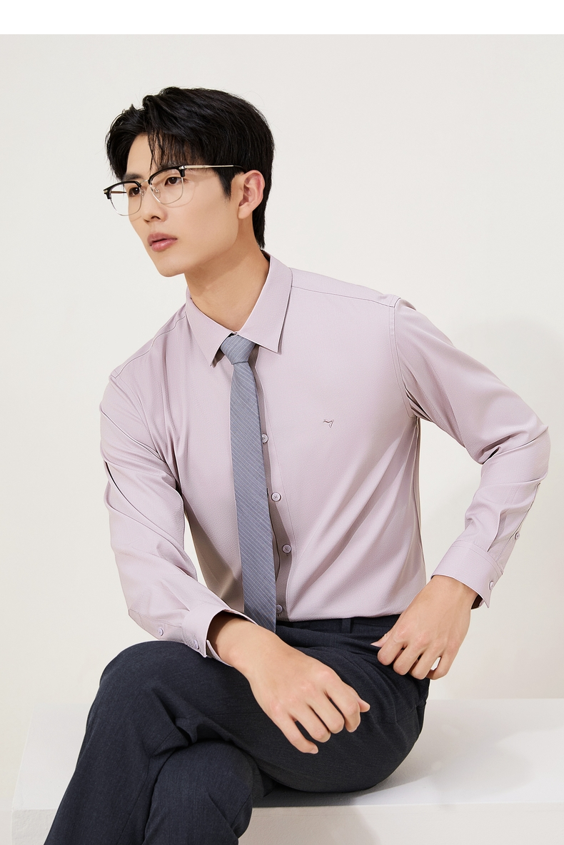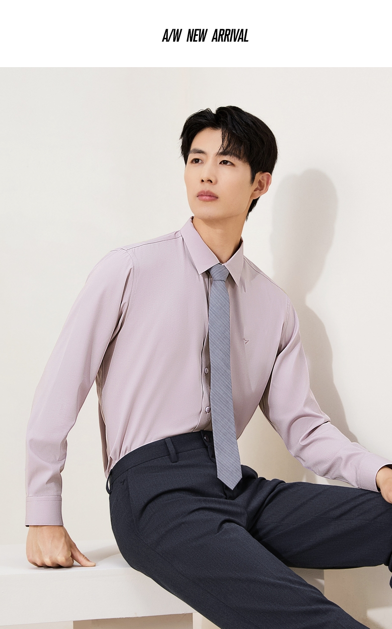 【莫代尔提花衬衫】柒牌长袖衬衫男秋季新款商务质感通勤翻领衬衣129A70650