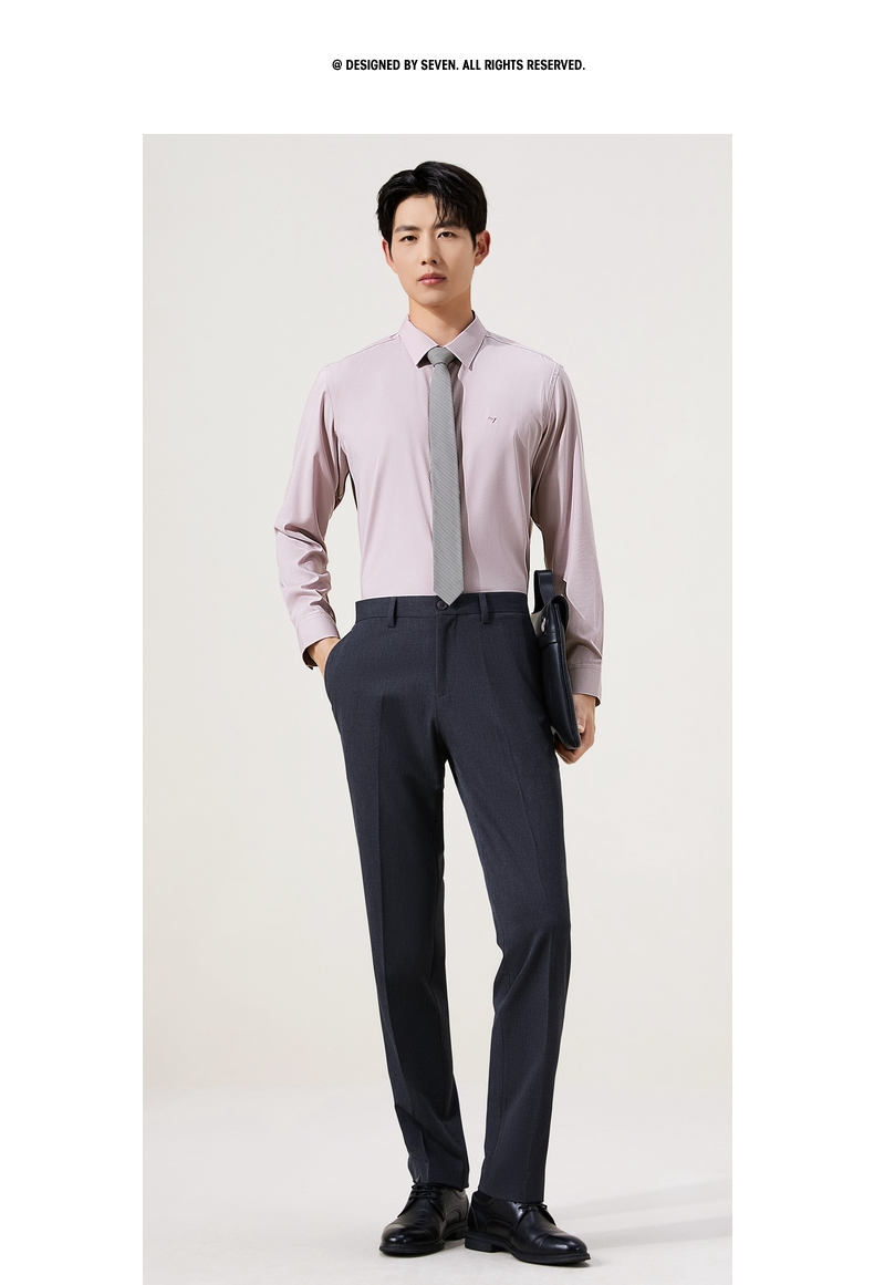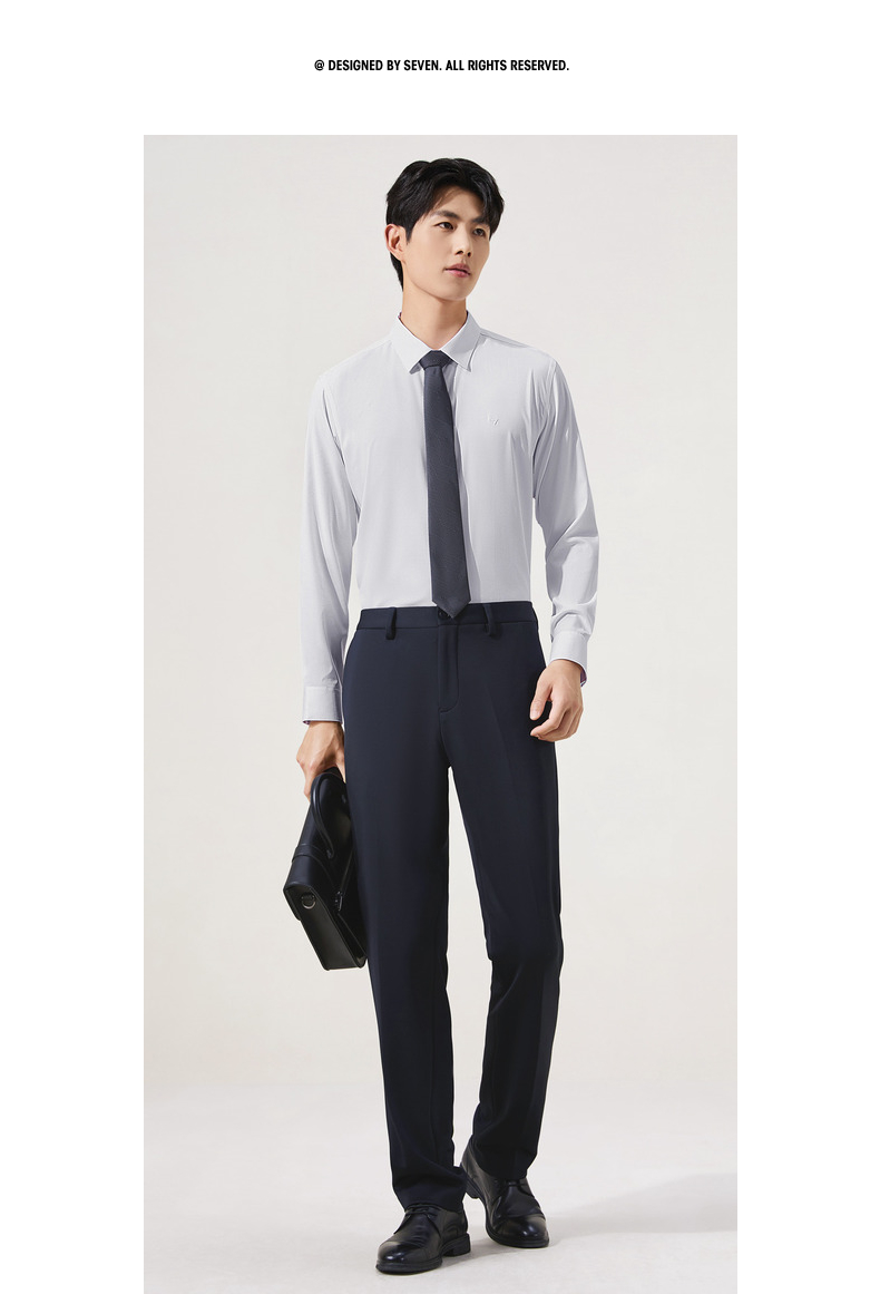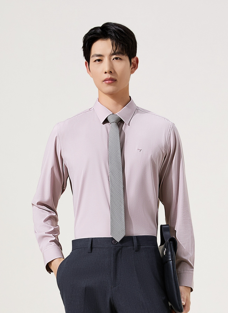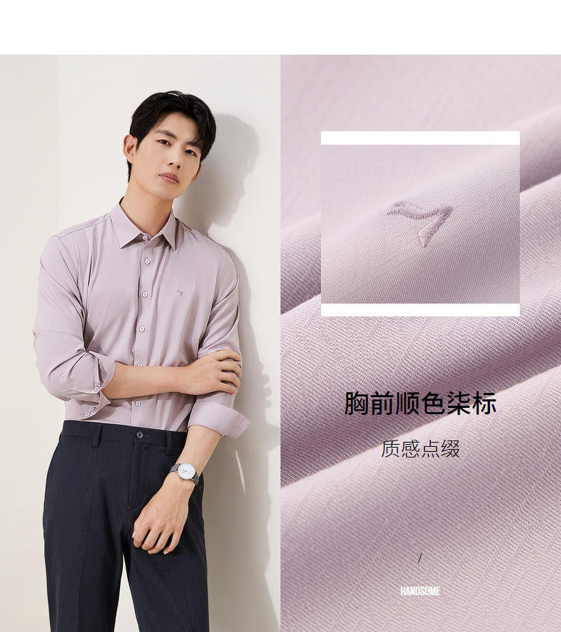 【莫代尔提花衬衫】柒牌长袖衬衫男秋季新款商务质感通勤翻领衬衣129A70650