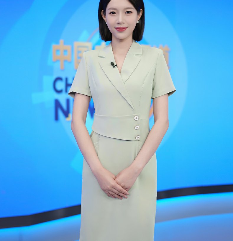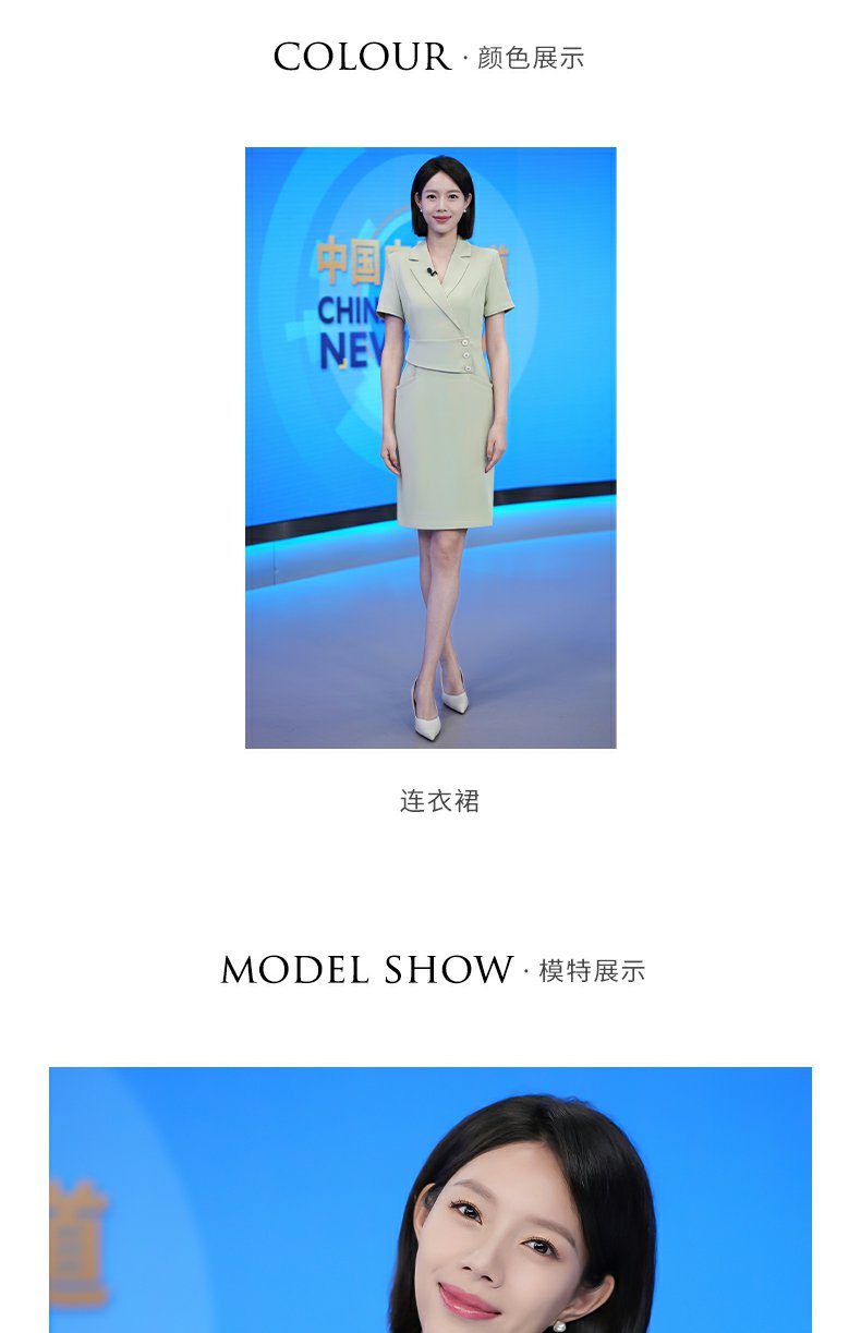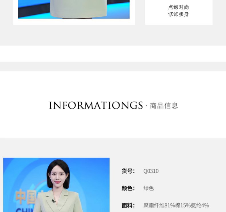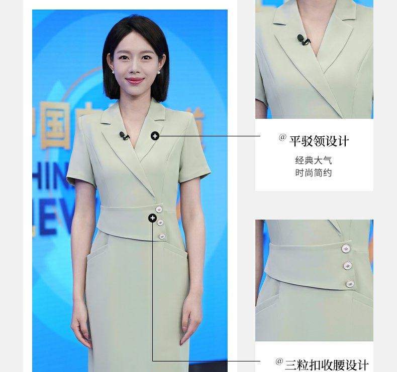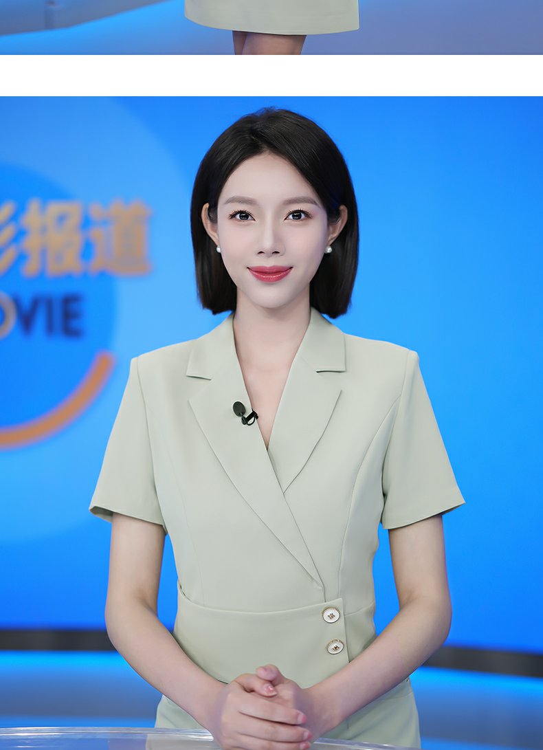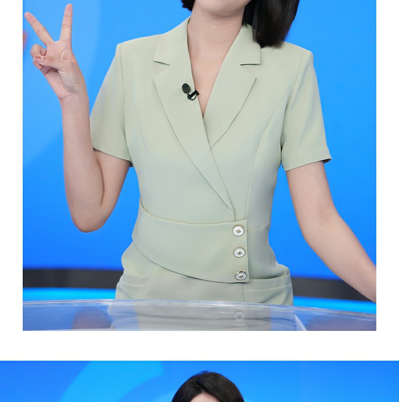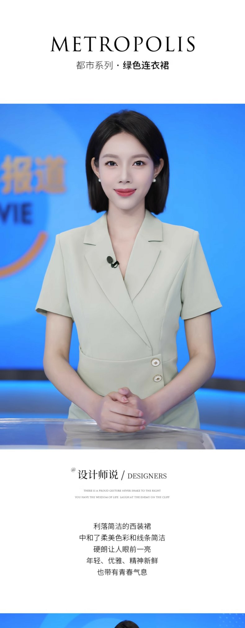IWY/绿色播音艺考服装女显瘦职业装气质端庄主持人西装连Q0310