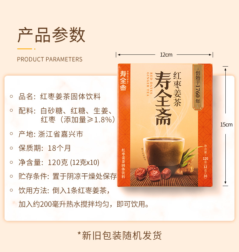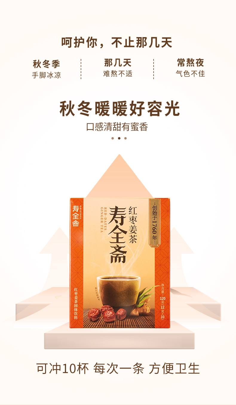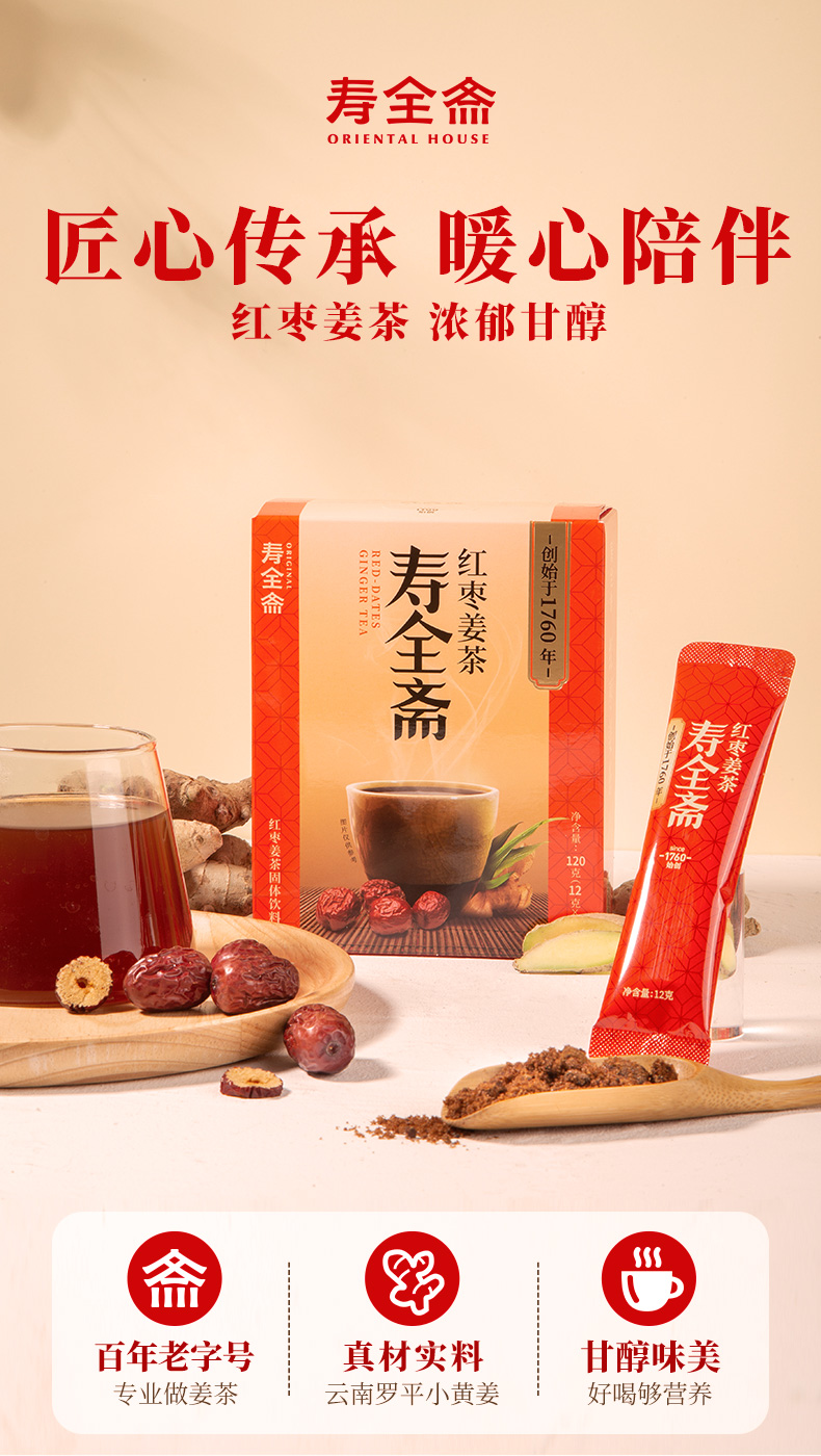 【女神节】【中华老字号】寿全斋 红枣姜茶 2盒装 120g*2