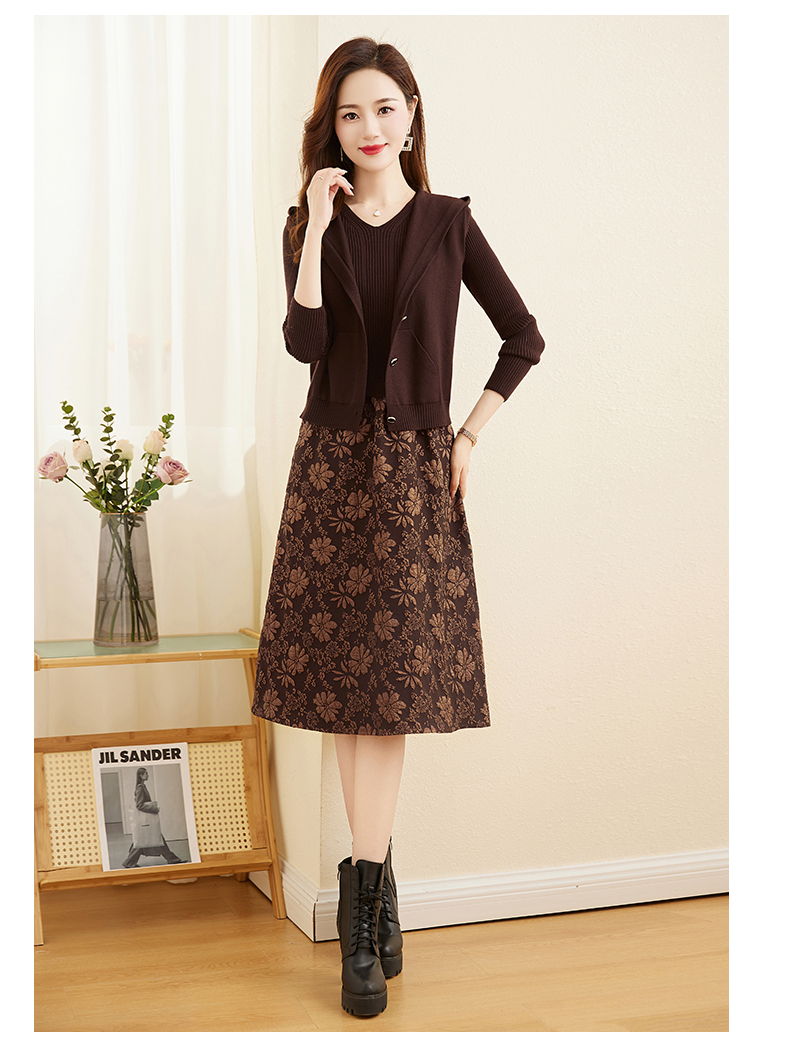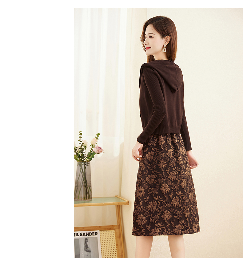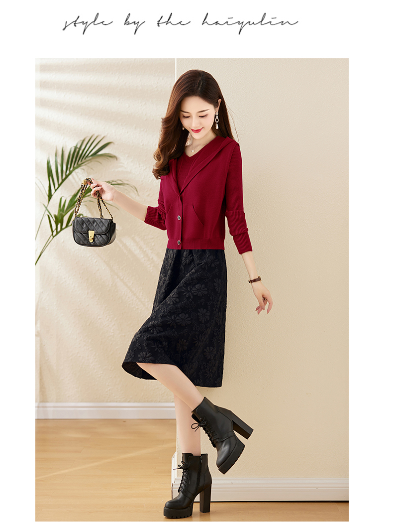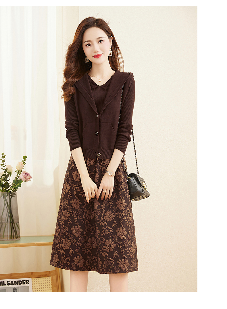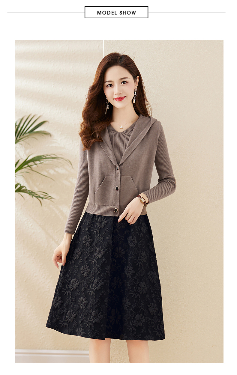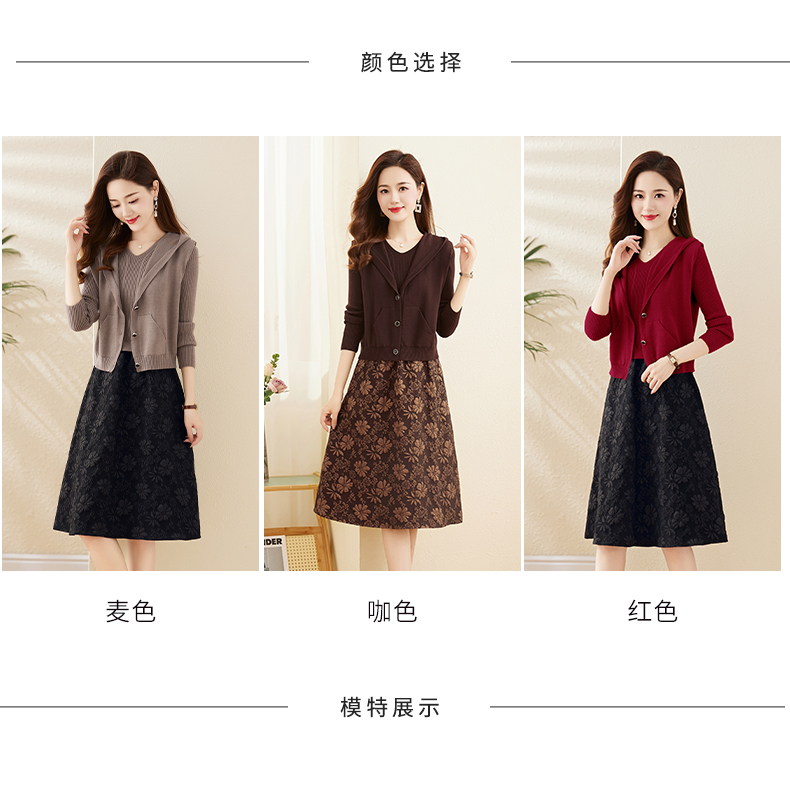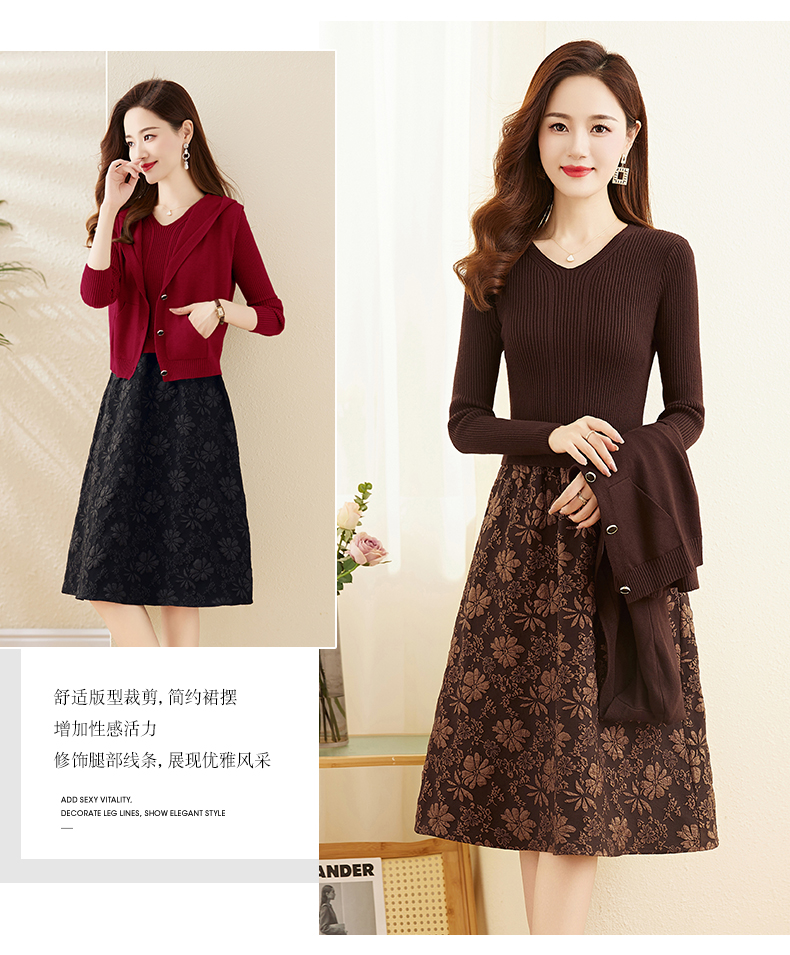 时尚显瘦立体提花,拼接针织两件套连衣裙HR-YBER336