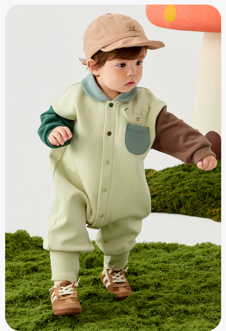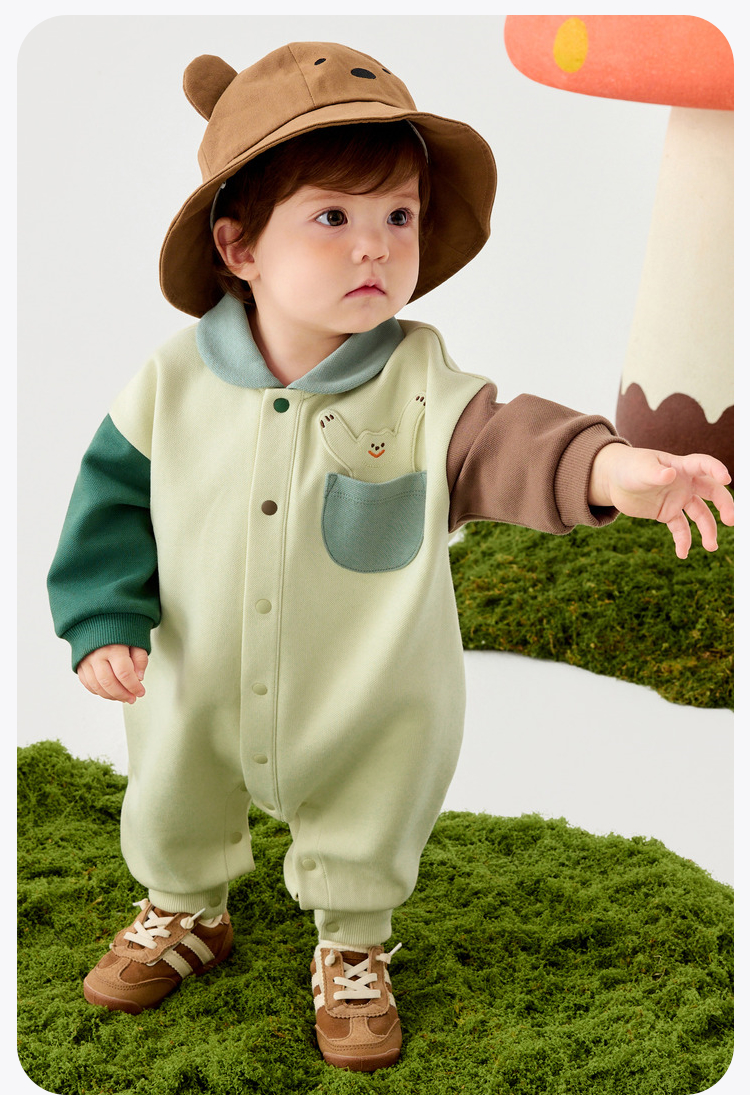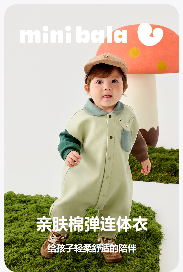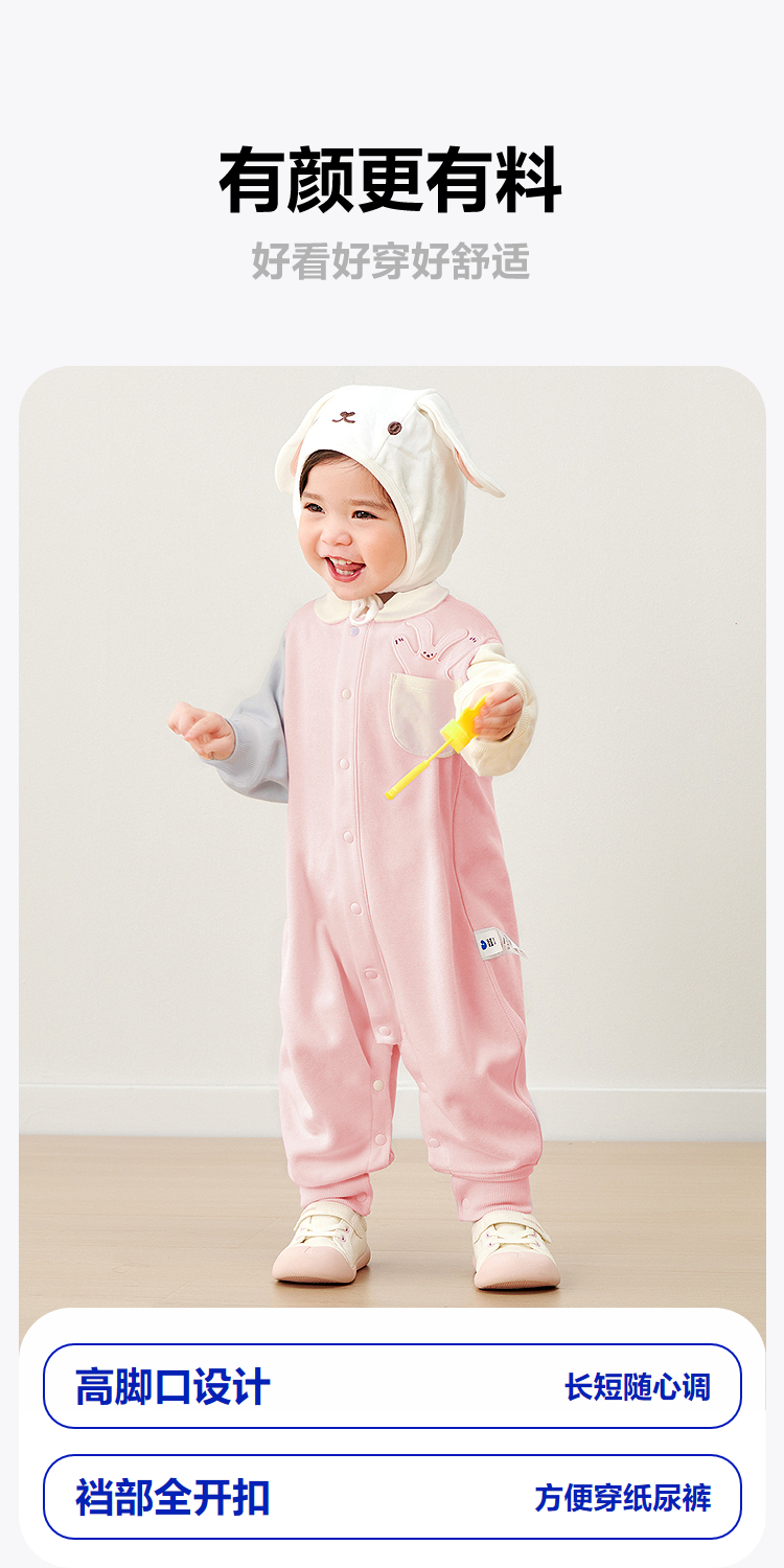 迷你巴拉外出连体衣长袖男女童萌趣针织爬服哈衣2025新款