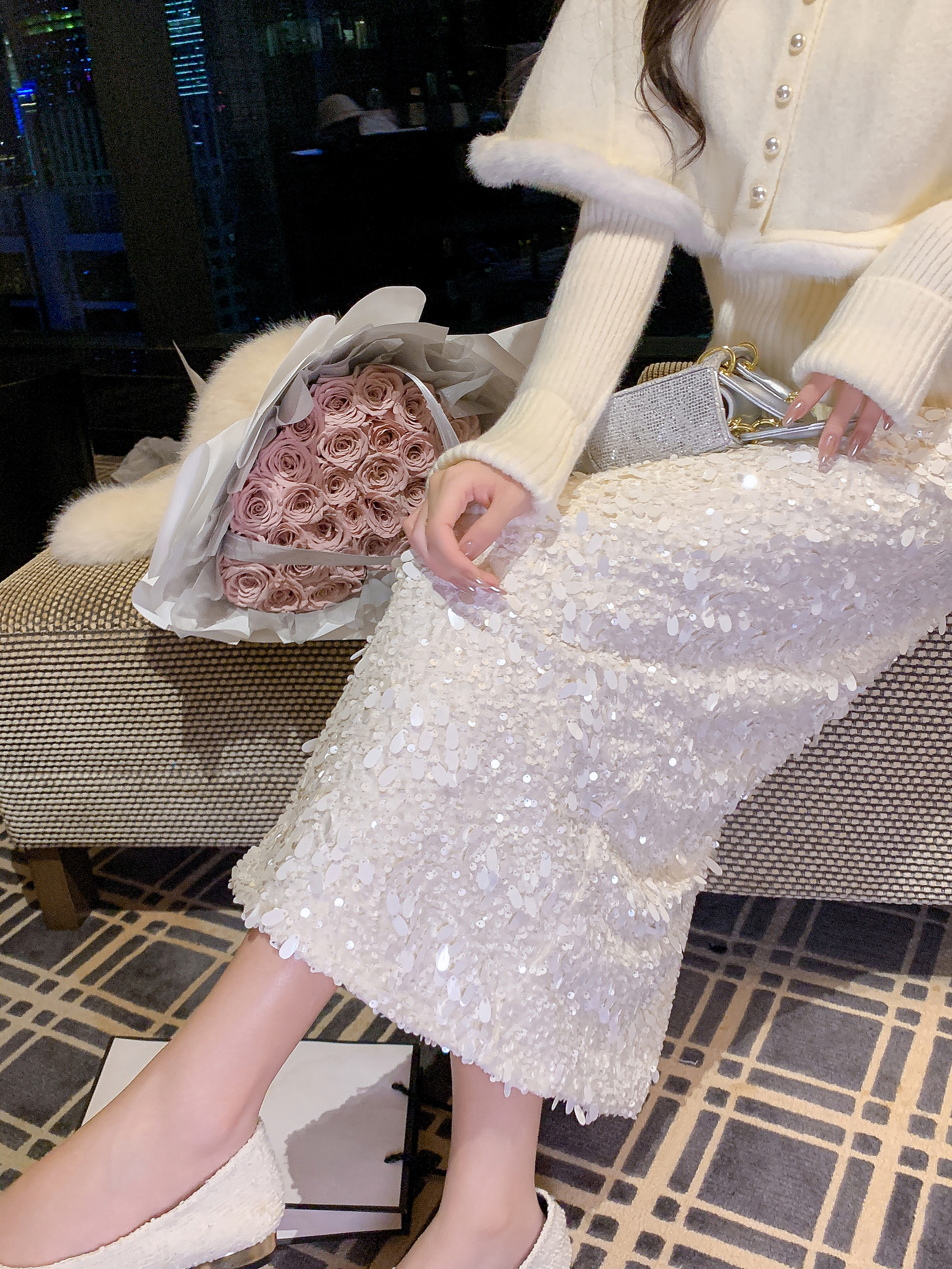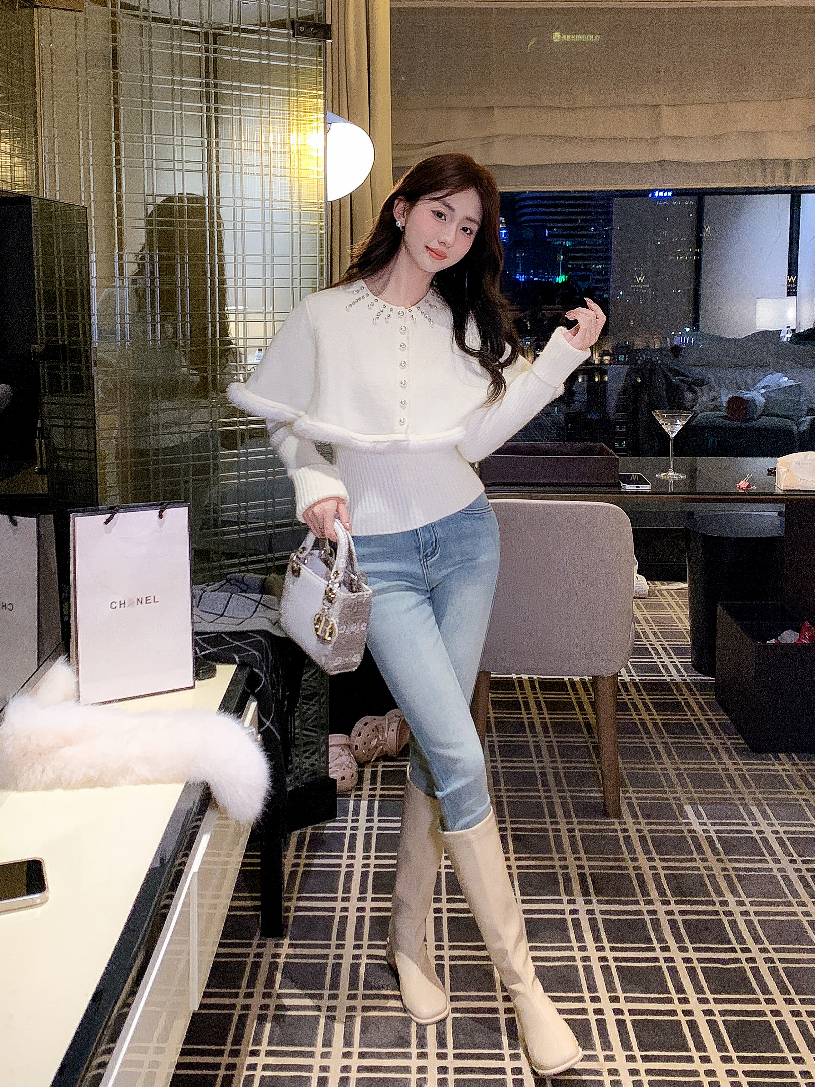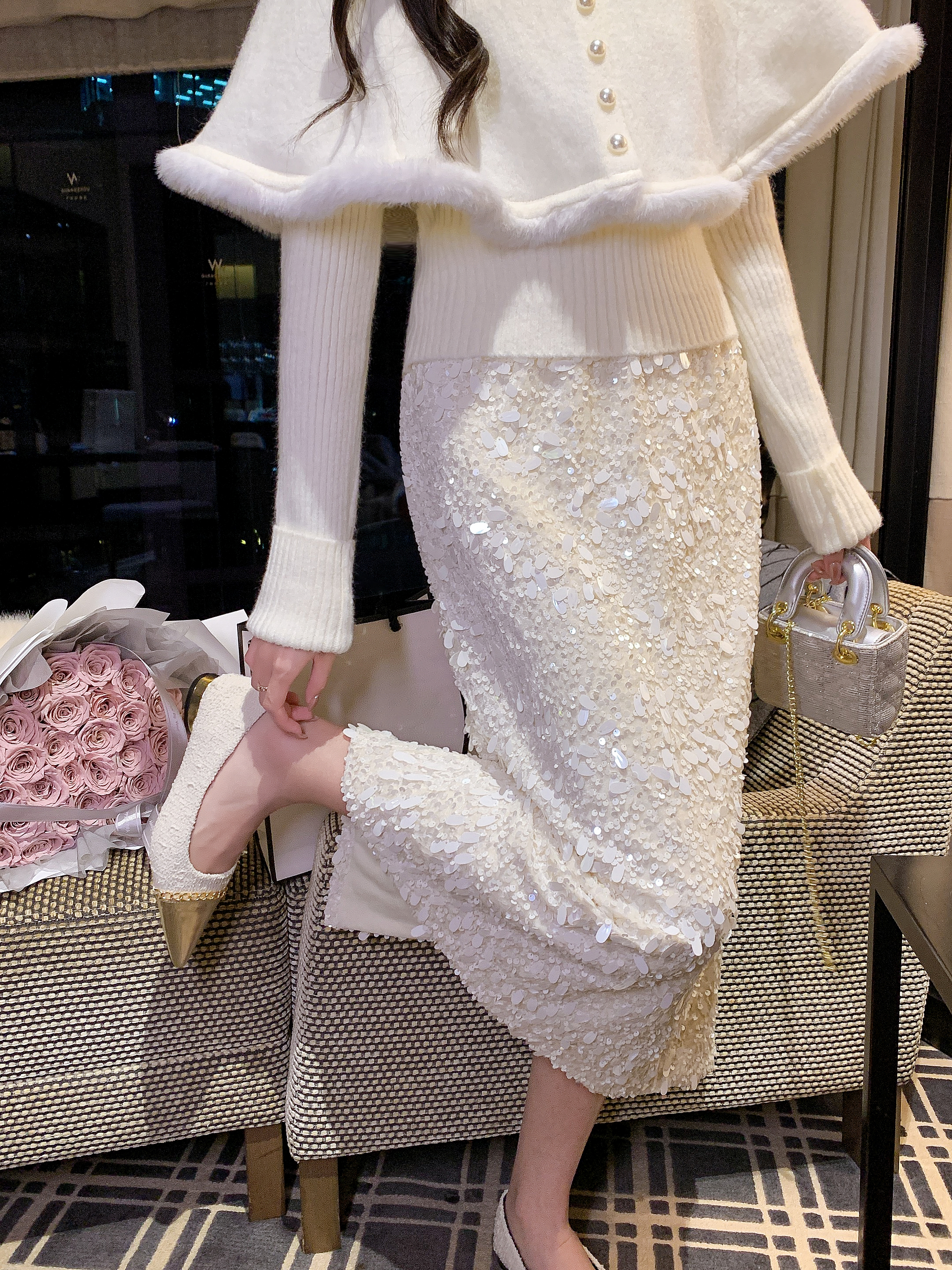 张心子【富士山下】秋冬珍珠镶钻斗篷针织衫两件套套装 U2511069