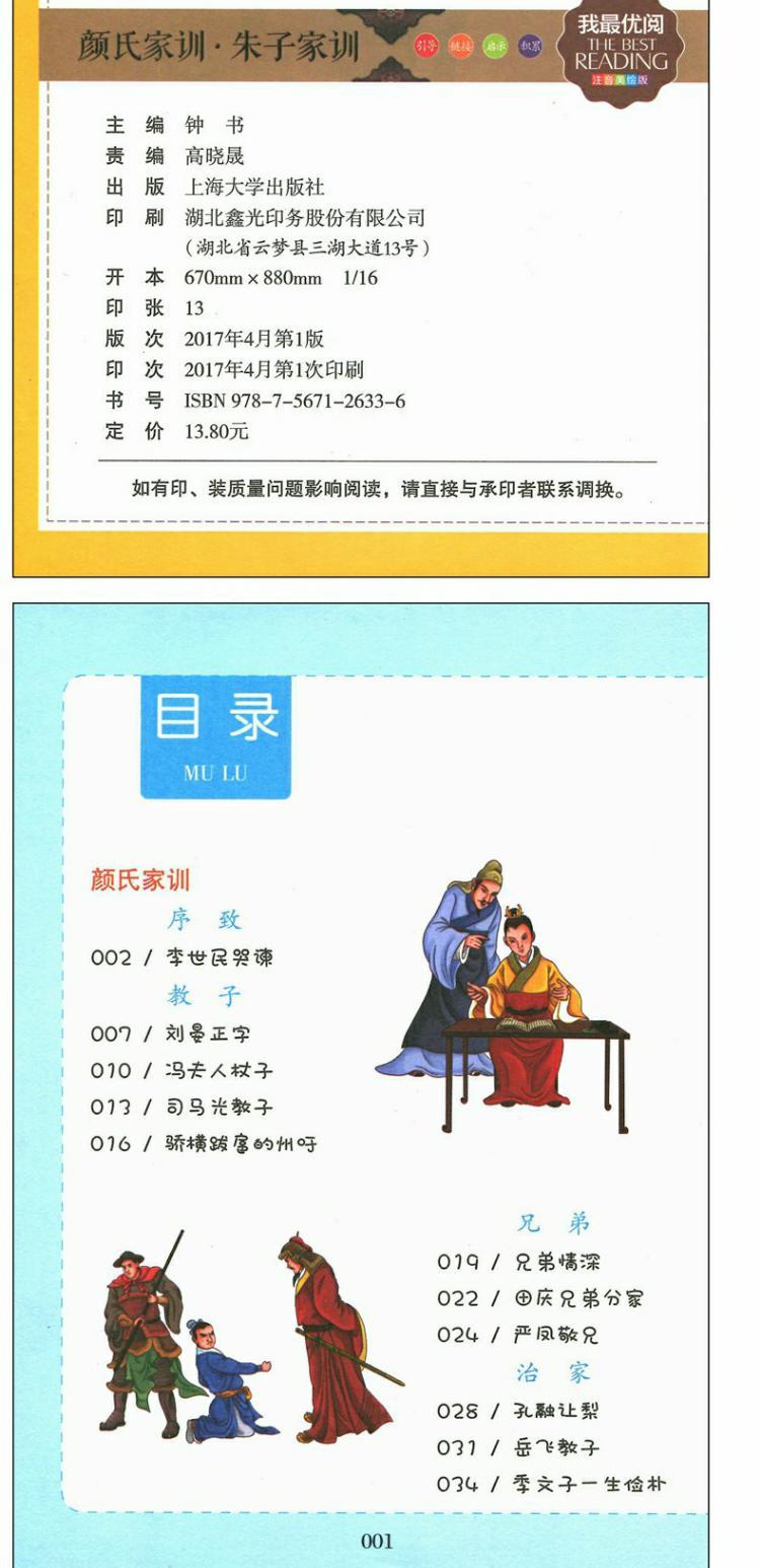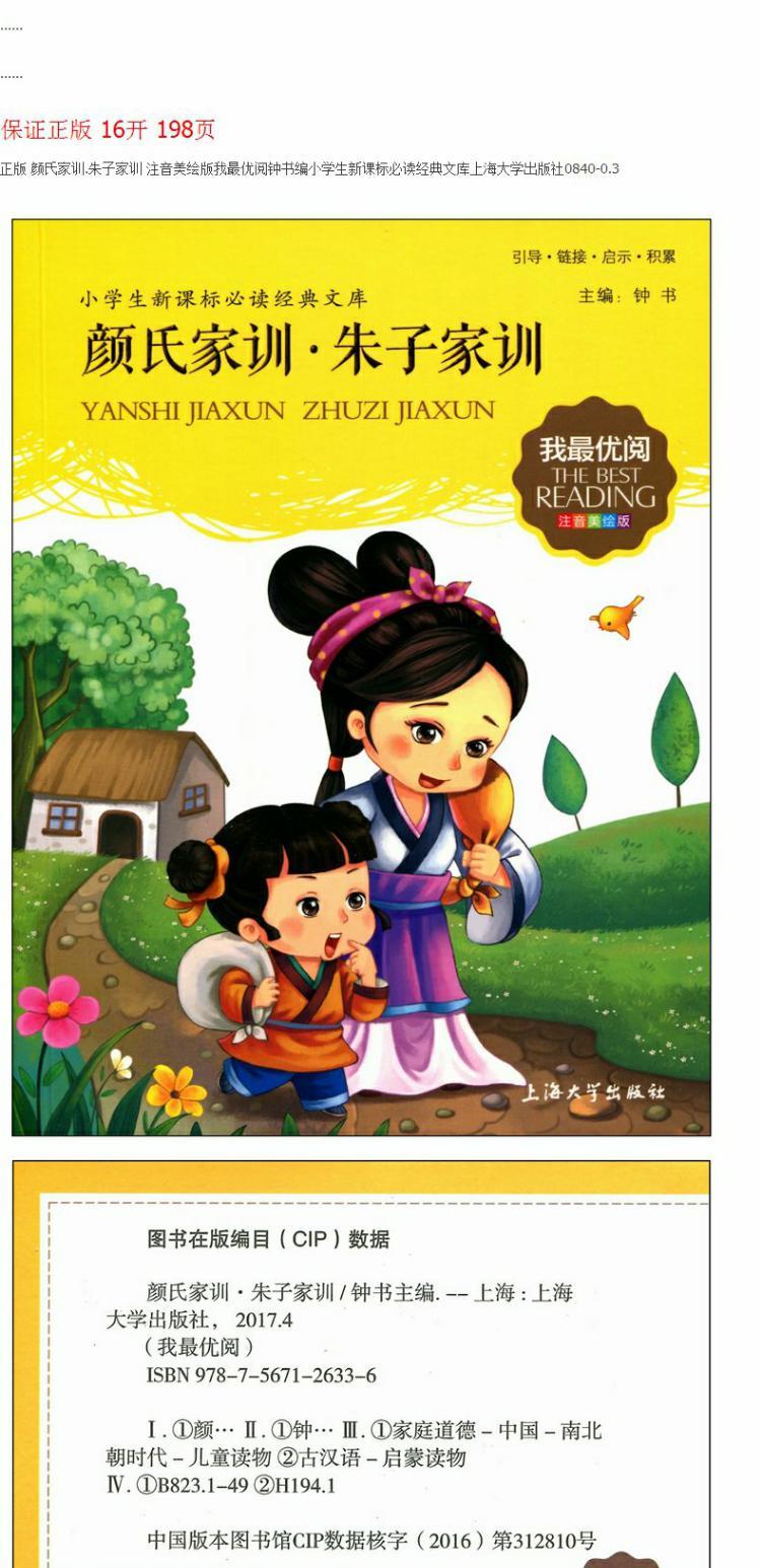 1-3年级适用 注音美绘版-颜氏家训.朱子家训 钟书正版少儿读物我优阅系列拼音彩图版颜氏家训.朱子家训 儿童文学课外读物