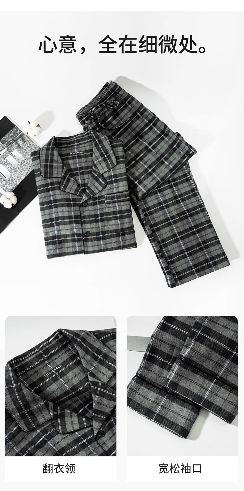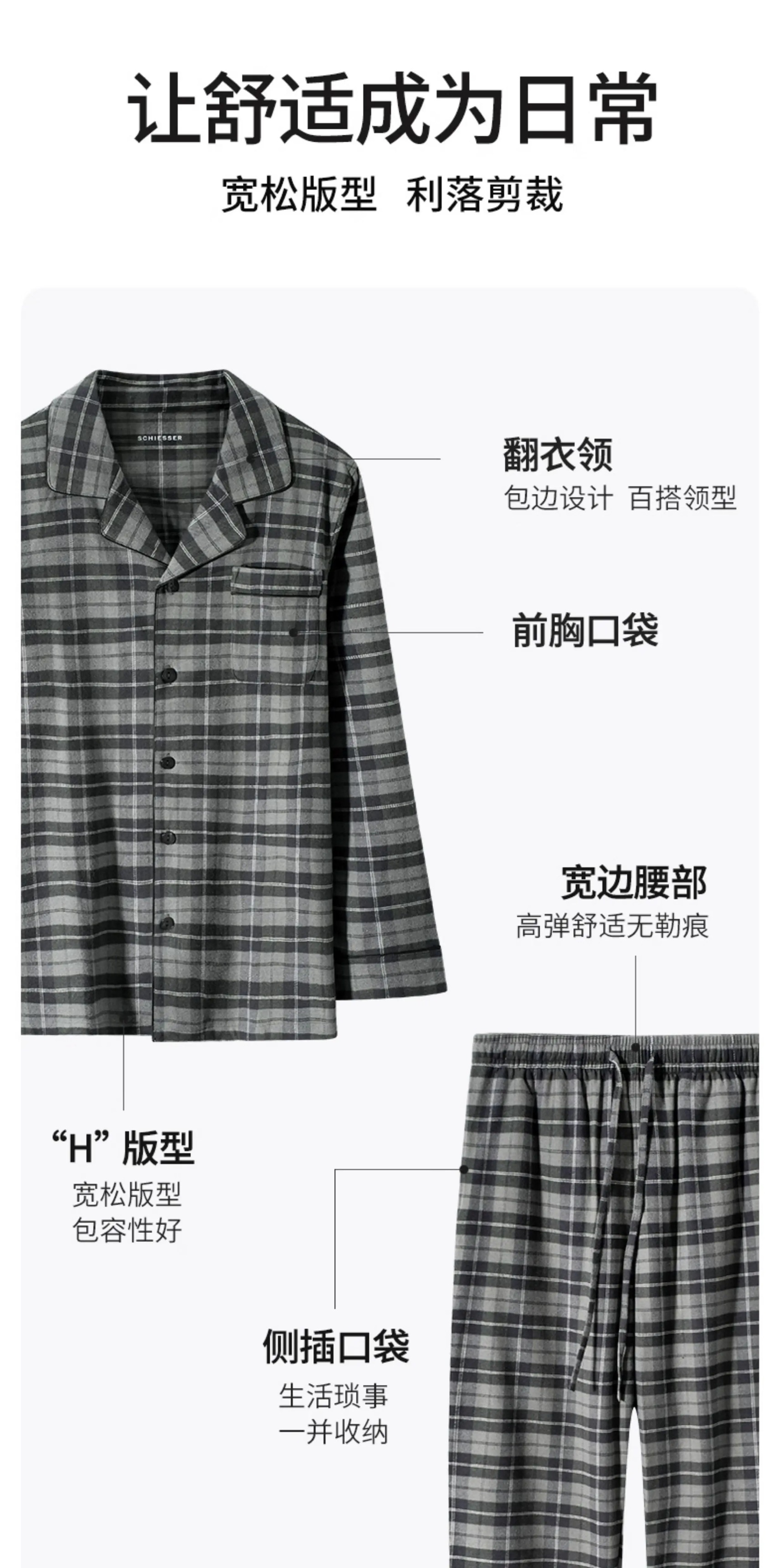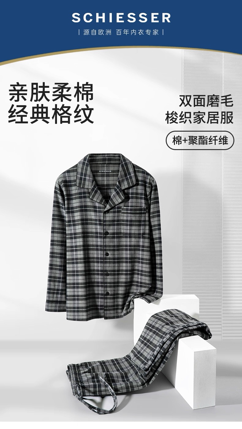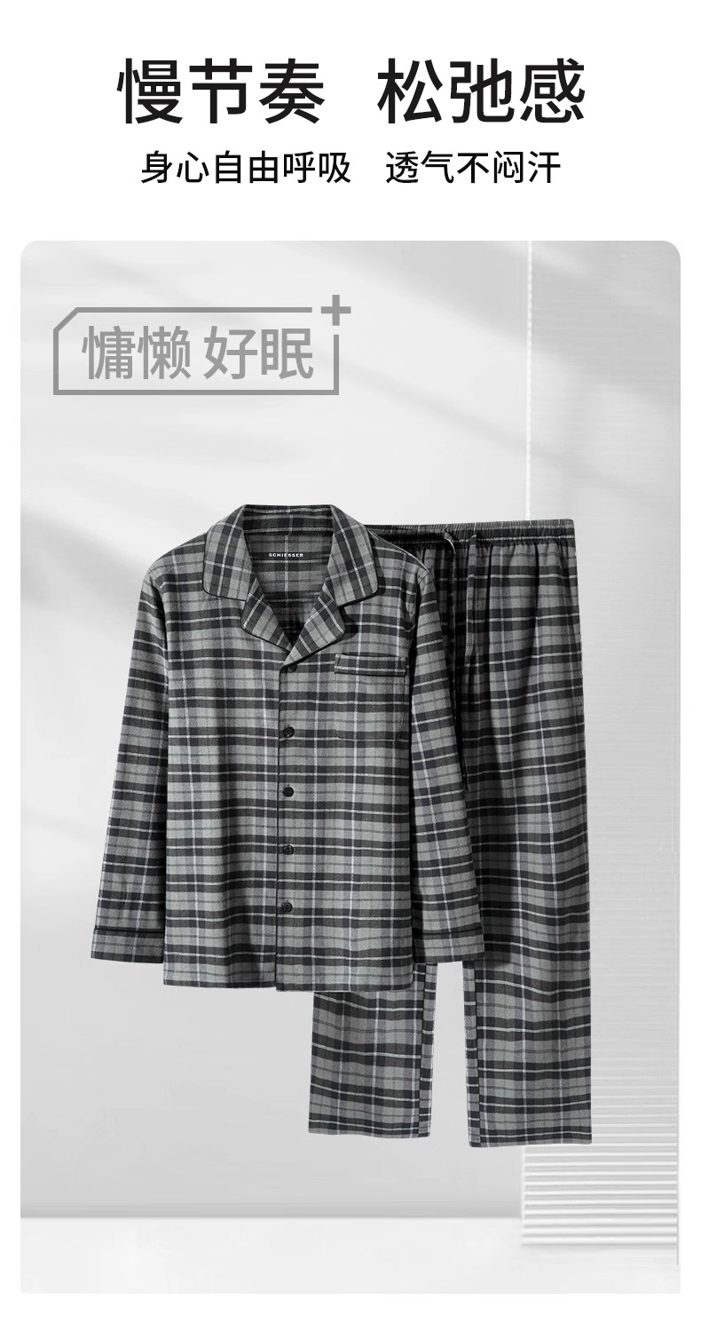 【索罗娜梭织磨毛秋初冬款】SCHIESSER德国舒雅男士棉索罗那梭织磨毛格纹睡衣套装190g 39/25398H
