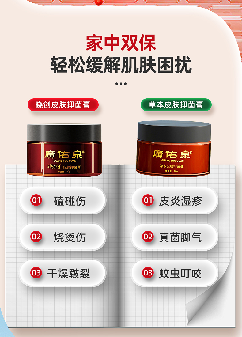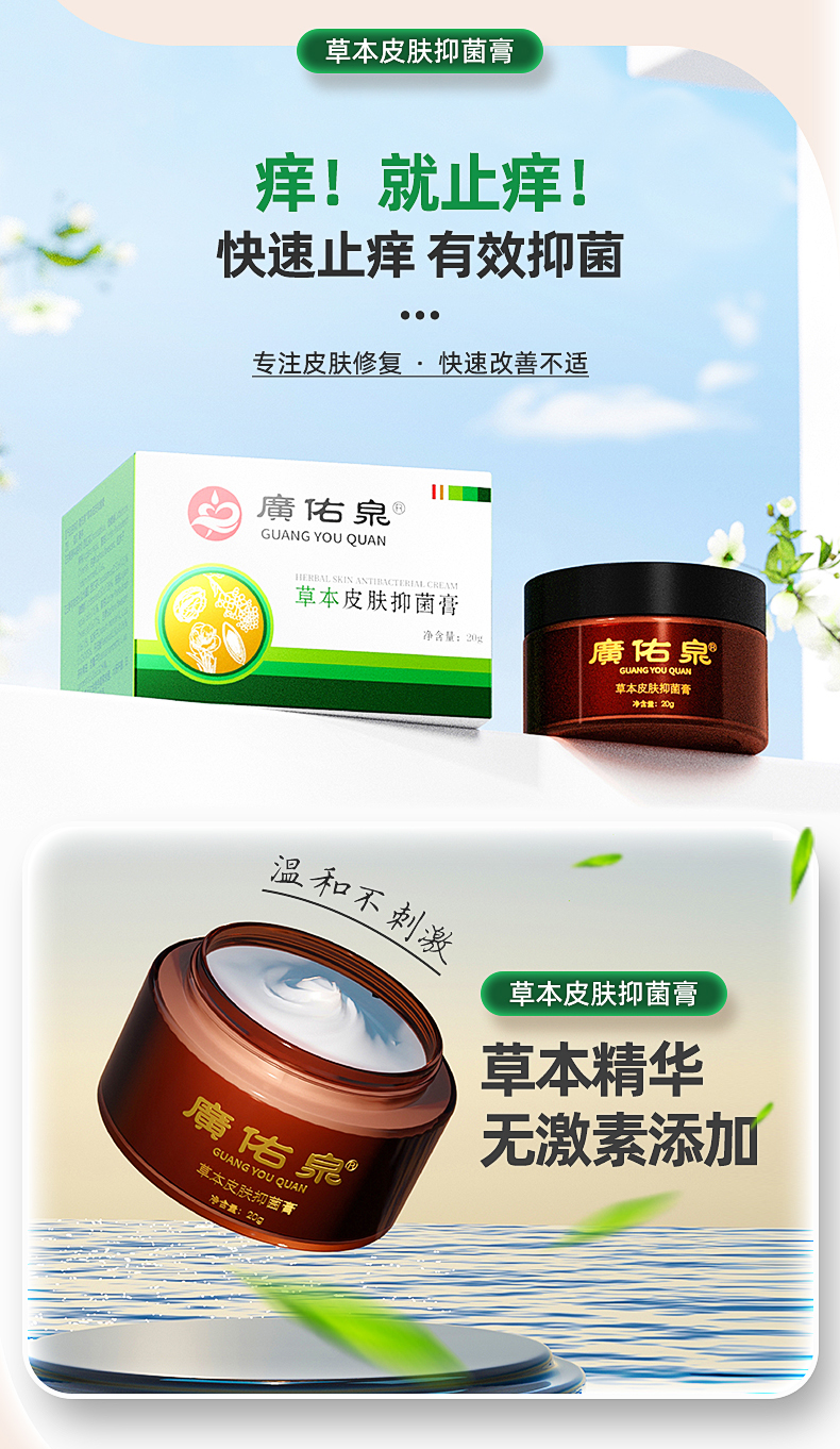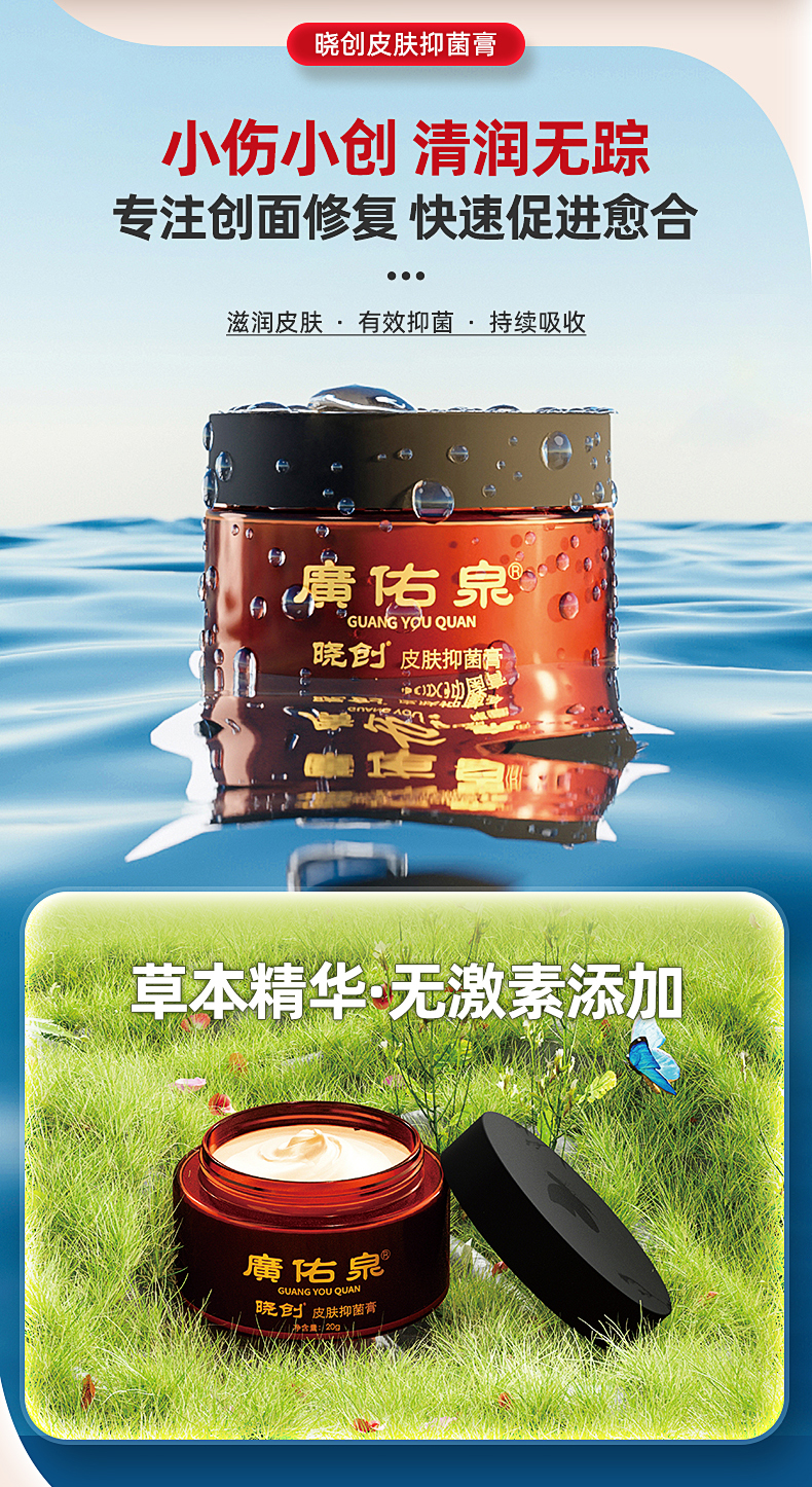 广佑泉/晓创 皮肤抑菌膏 草本精华 温和滋养 无激素成分 老少均可使用 家庭常年必备 20g/罐