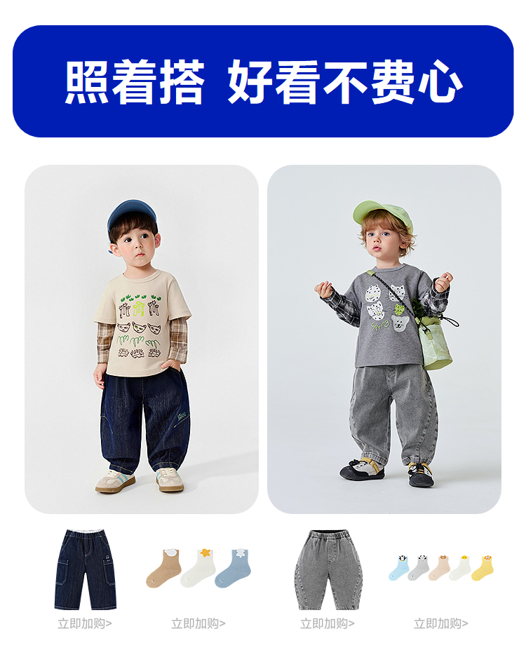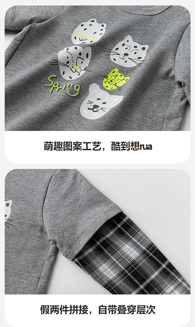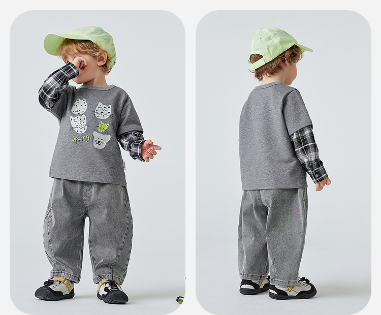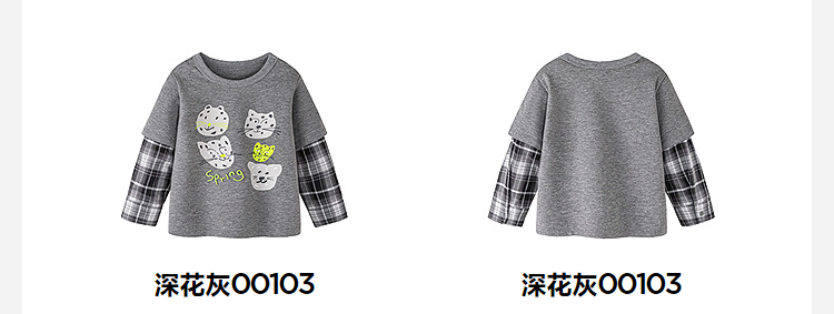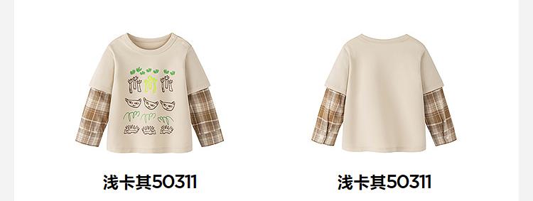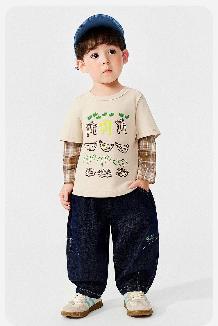 迷你巴拉男童宝宝假两件长袖T恤2026春新款软糯百搭舒适弹力上衣