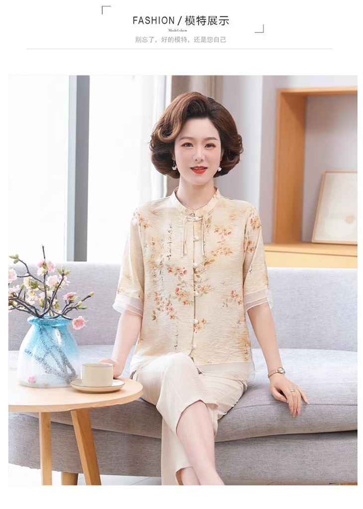 ❤️母亲节钜惠【伊泺杉新中式印花妈妈套装】泼墨印染国风图案🥰淡雅有韵味,专属妈妈的国风套装👏面料轻薄凉爽,款型时尚洋气☀️无论做工还是款式,通通满意👍