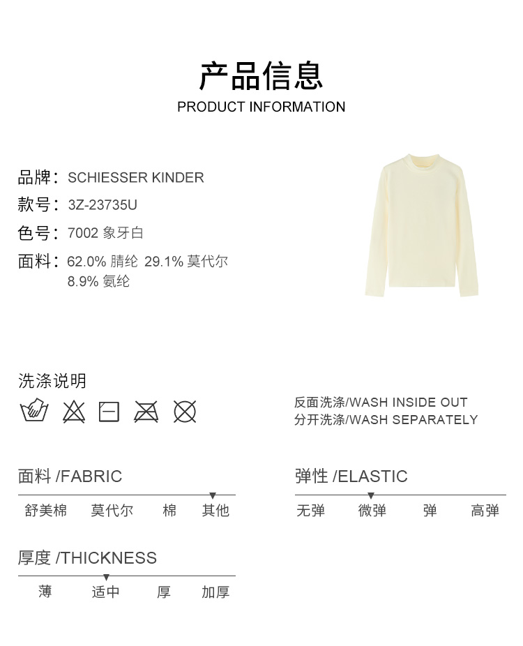 【暖柔儿童打底中性款】SCHIESSER德国舒雅秋冬新品儿童暖柔系列中厚型打底衫保暖(男女童同款)3Z/23735U